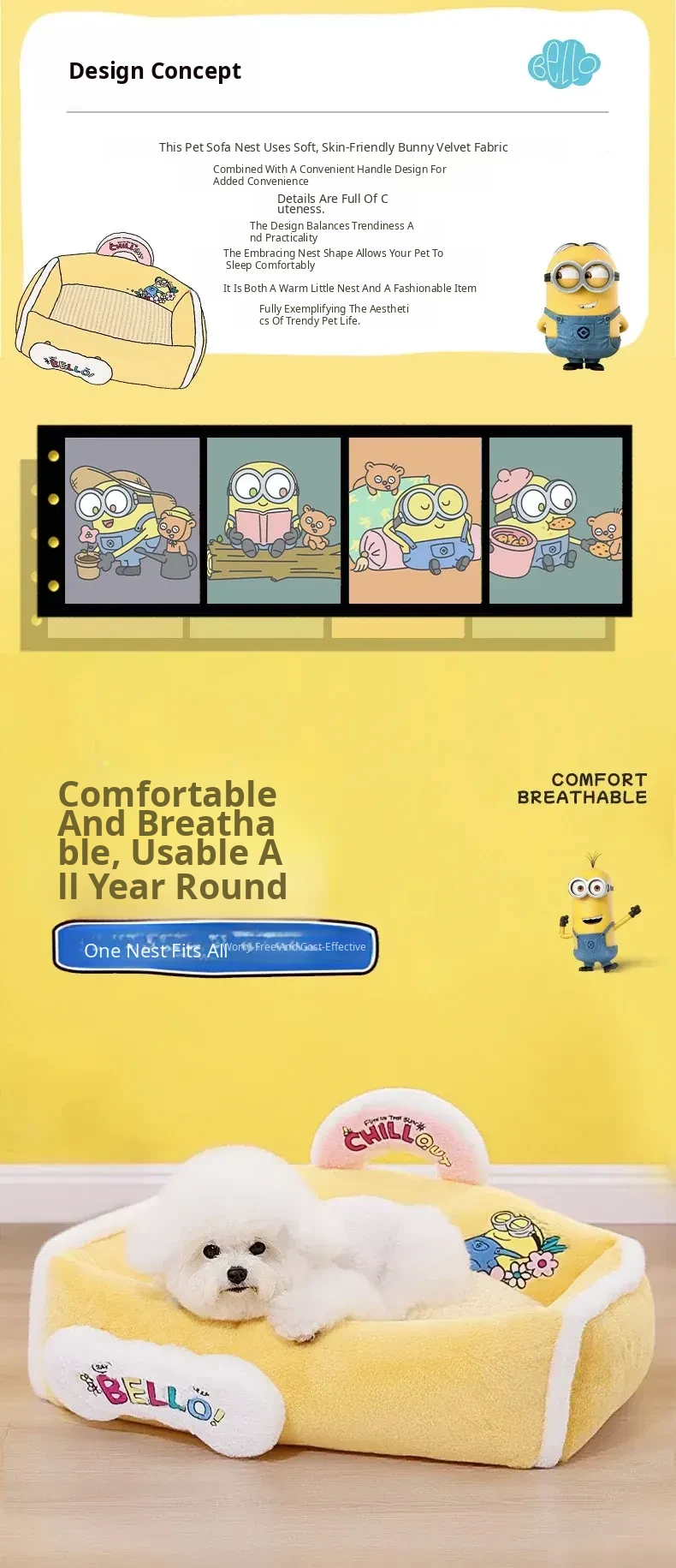 2025 New Thickened Winter Dog Bed for Small Dogs - Removable & Washable, All-Season Use, Perfect for Your Beloved Minions!