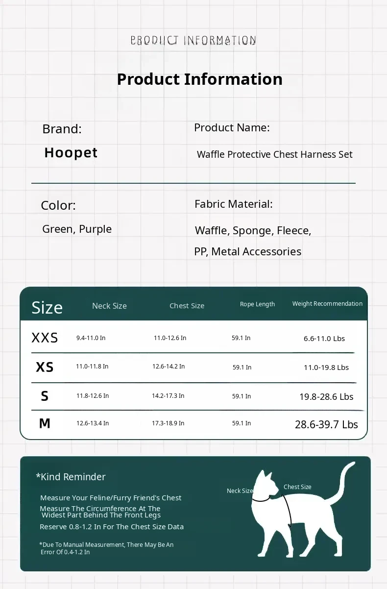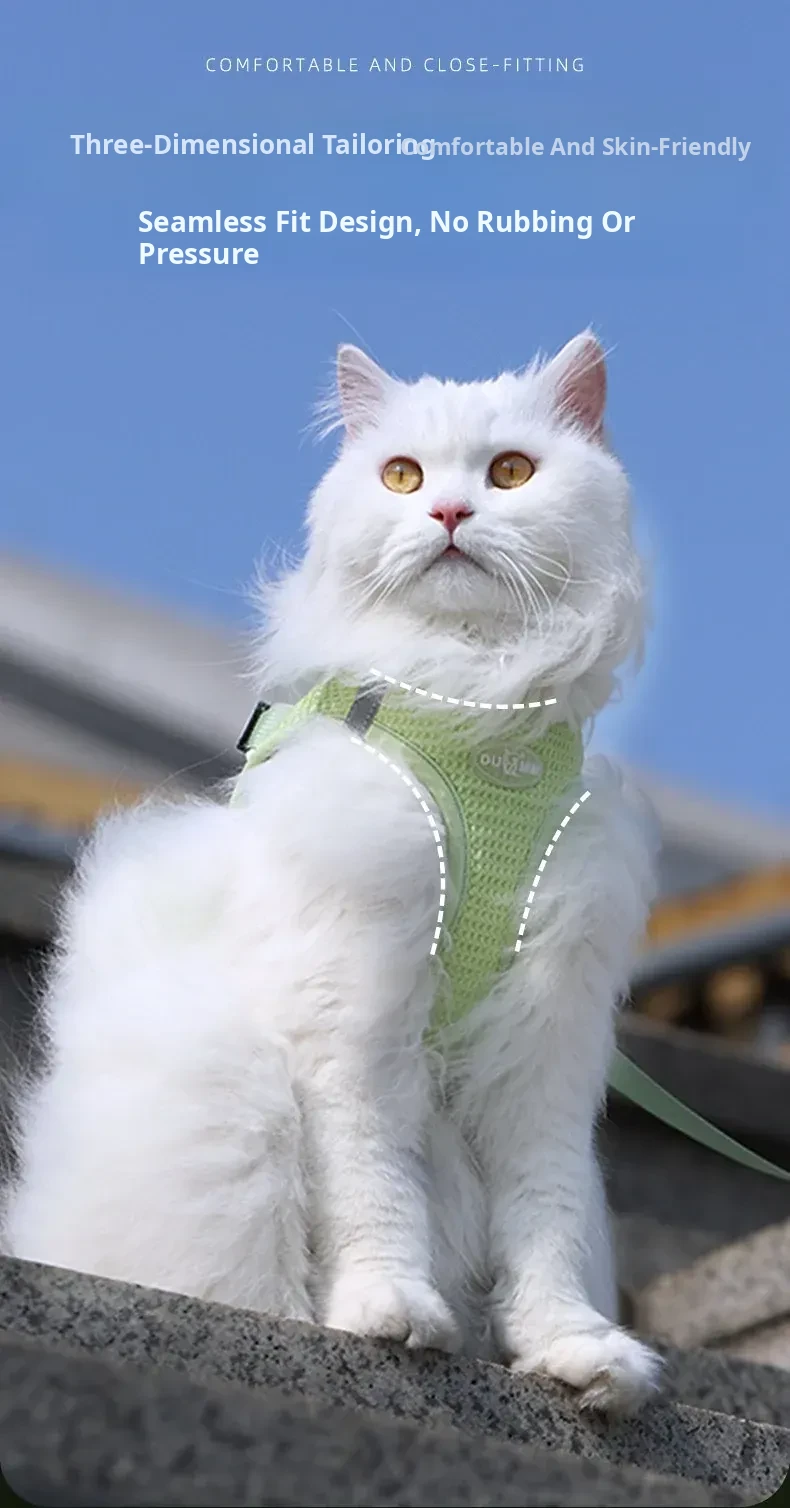 Adjustable Cat and Dog Leash Harness - Breathable, Escape-Proof Design for Comfortable Outdoor Walks with Your Furry Friends