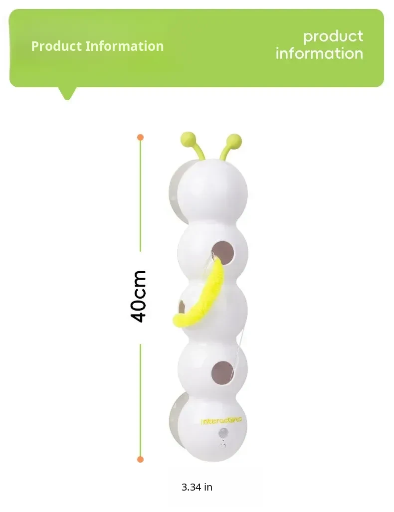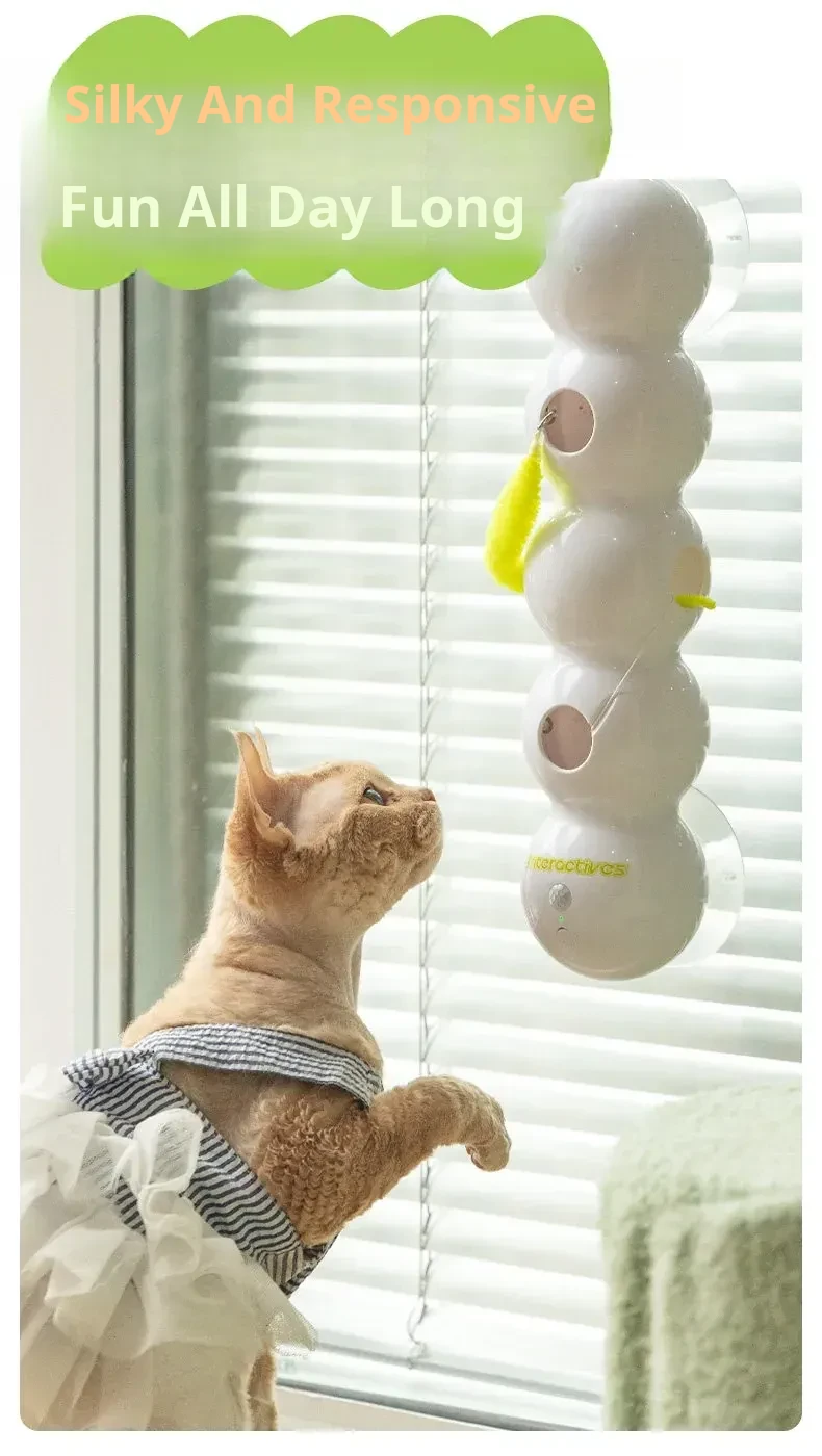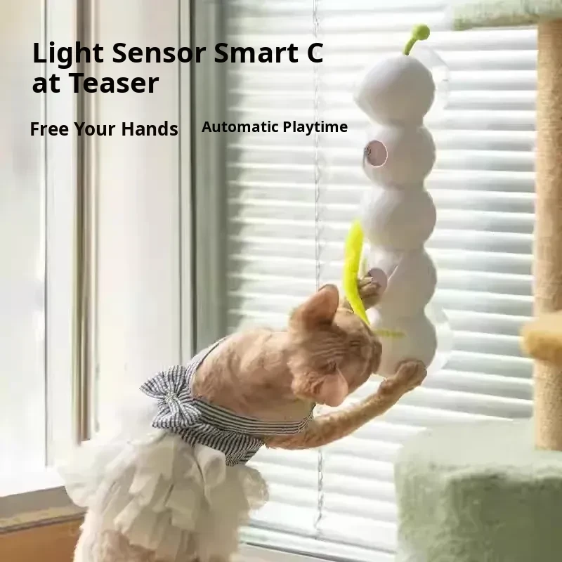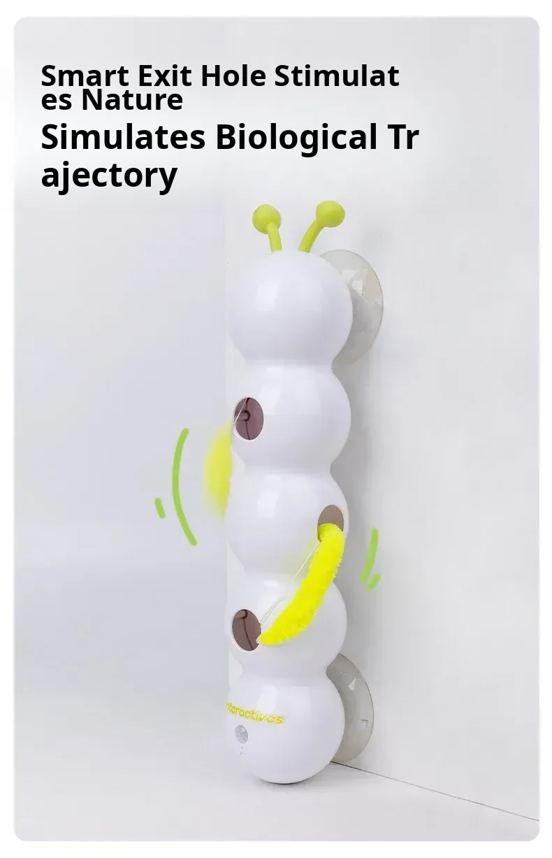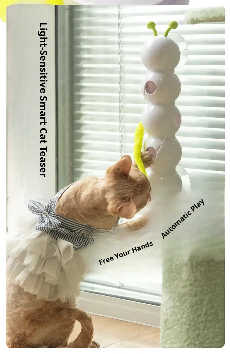 AFP Electric Cat Toy - Feathered Caterpillar with Suction Cup, Smart Sensor Automatic Cat Teaser Stick for Engaging Playtime with Kittens