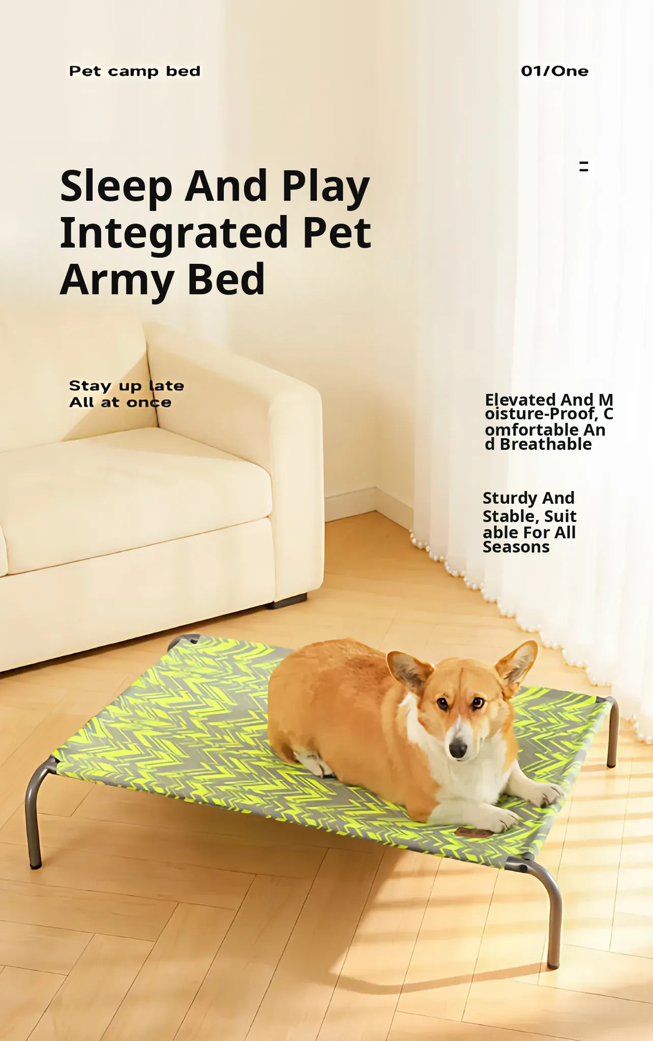 Dog Camp Bed [Off-Ground, Moisture-Proof, All-Season]
