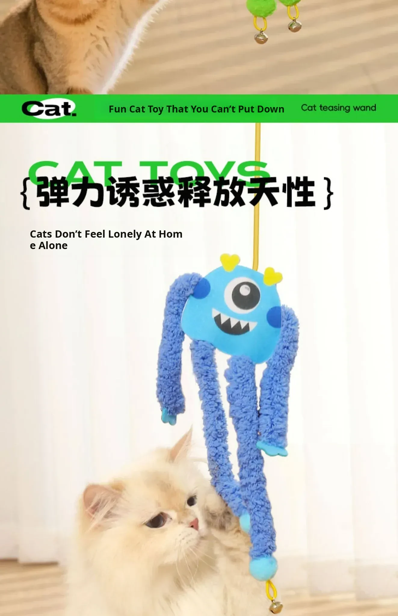 Bouncing Plush Cat Toy - Interactive Fun for Kittens, Durable Chew-Resistant Design, Perfect for Keeping Cats Entertained and Engaged!