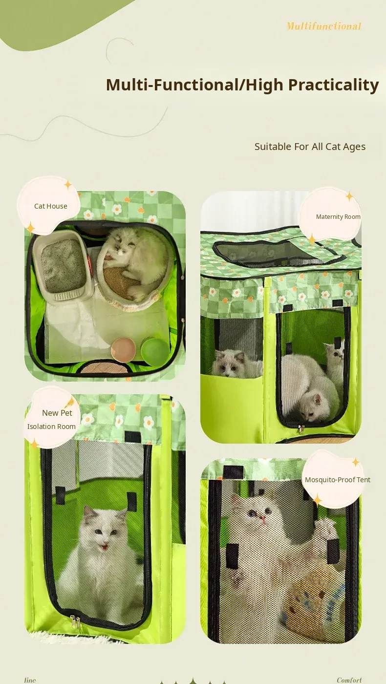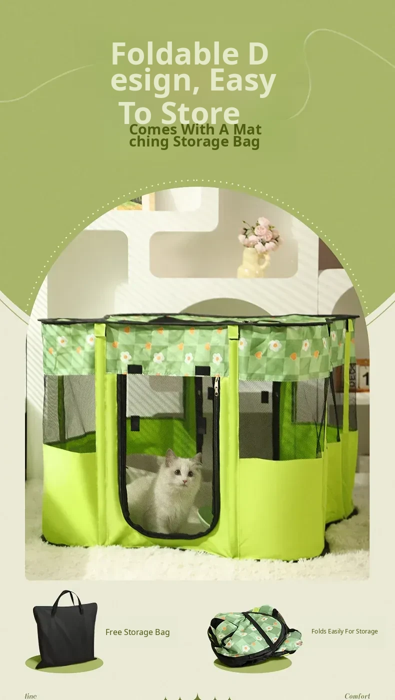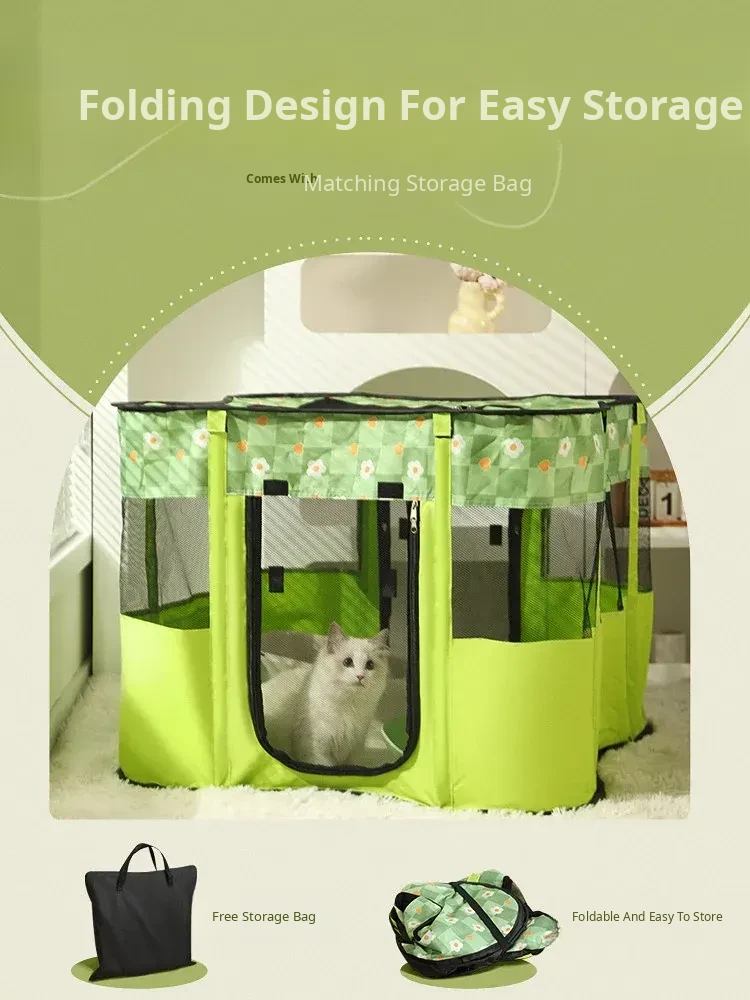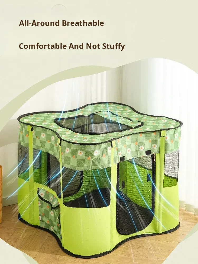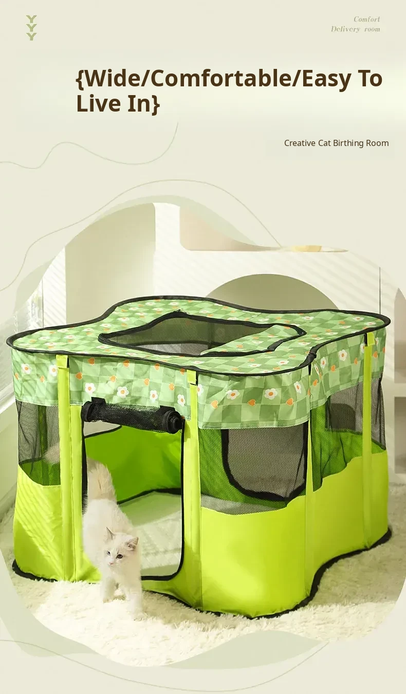 Flower Green Cat Delivery Room [Fence on Four Sides, Breathable on Five Sides + Side Pockets]