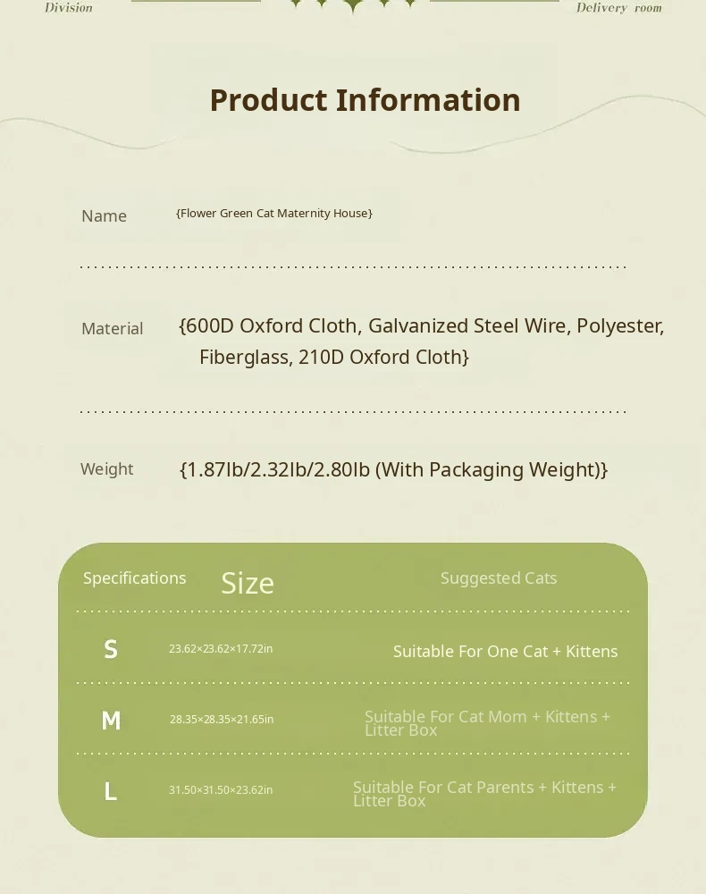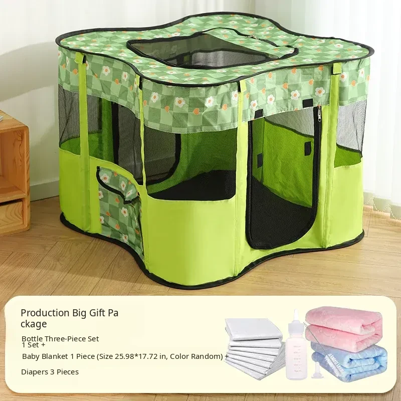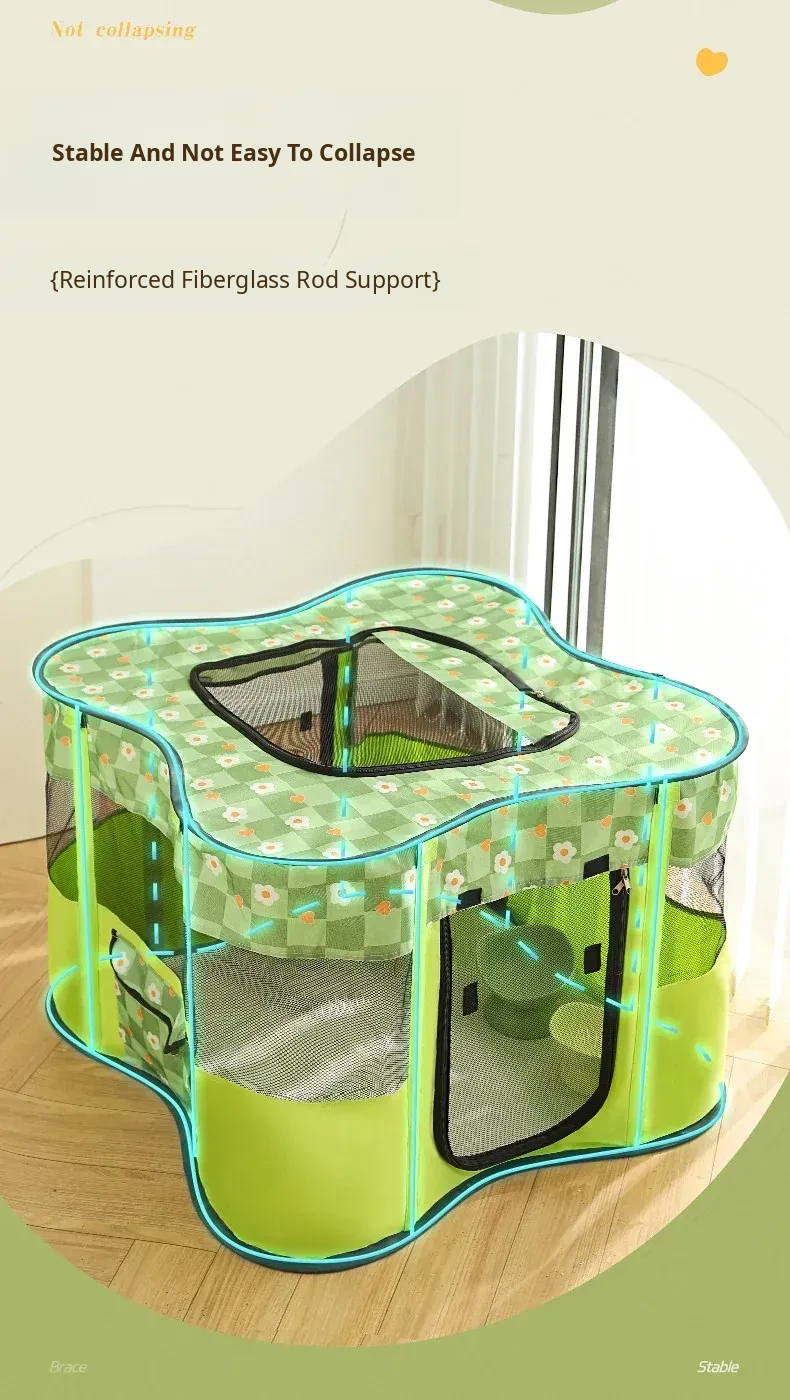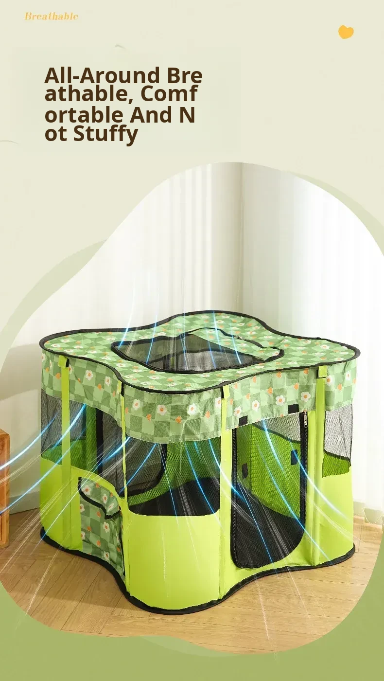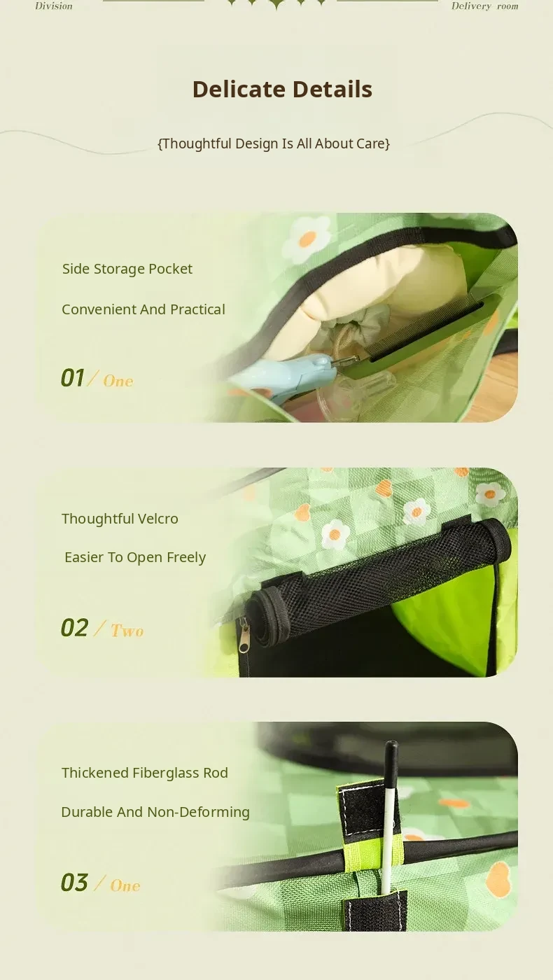 Flower Green Cat Delivery Room [Fence on Four Sides, Breathable on Five Sides + Side Pockets]