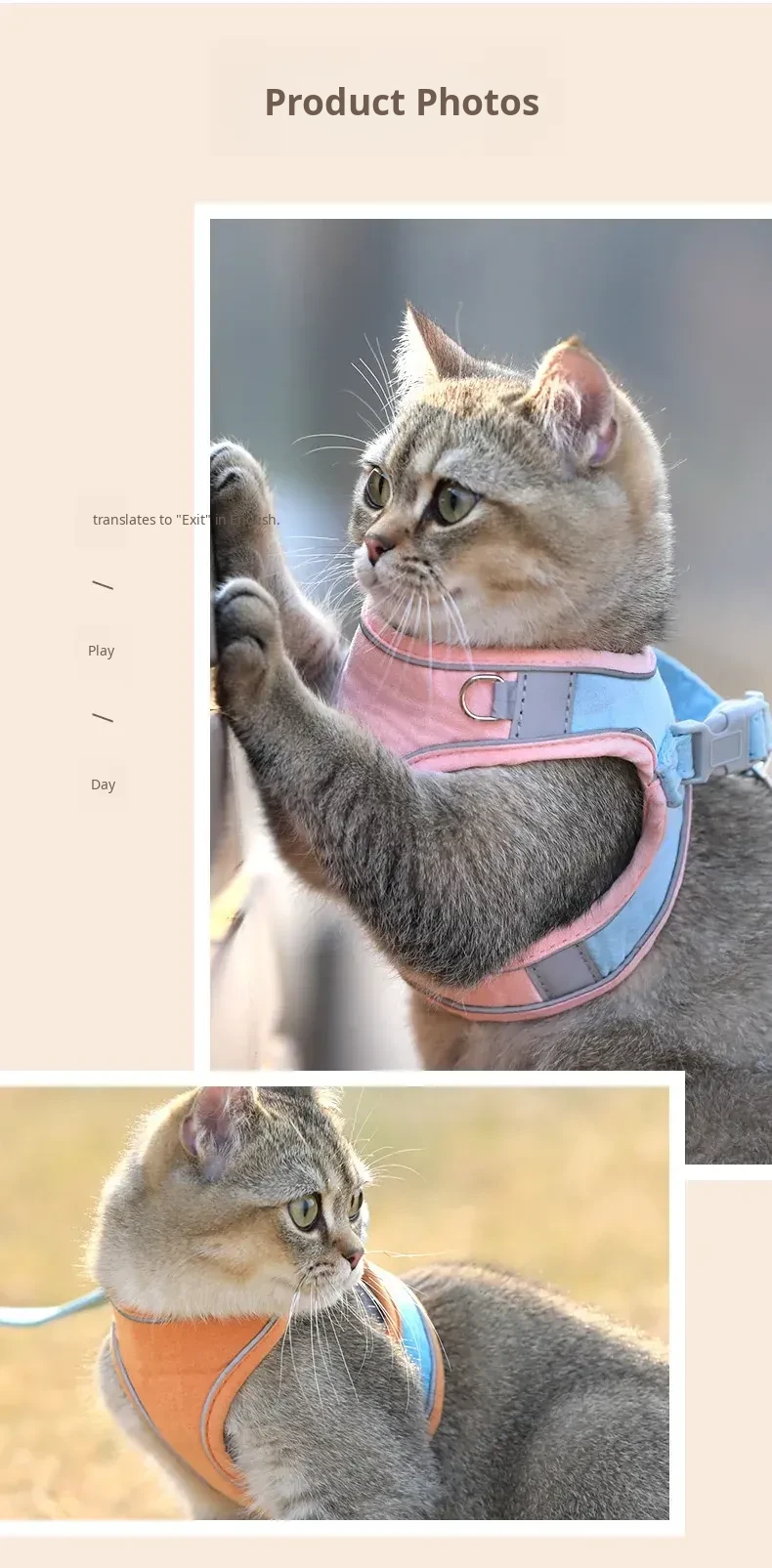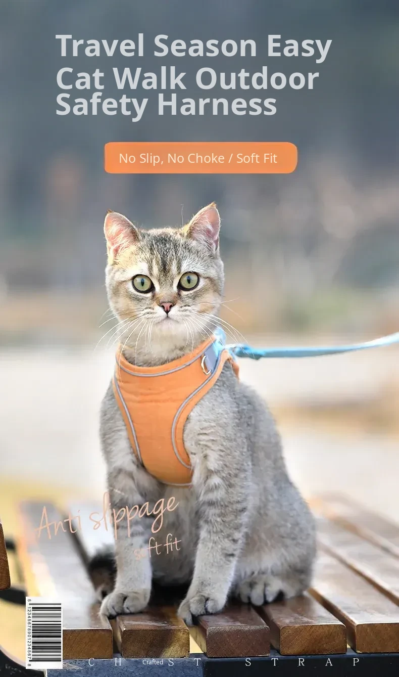 Cat Harness and Leash Set - Escape-Proof Vest for Outdoor Adventures, Perfect for Walking Your Feline Friend Safely and Comfortably! Ideal Pet Accessory for Cat Owners.