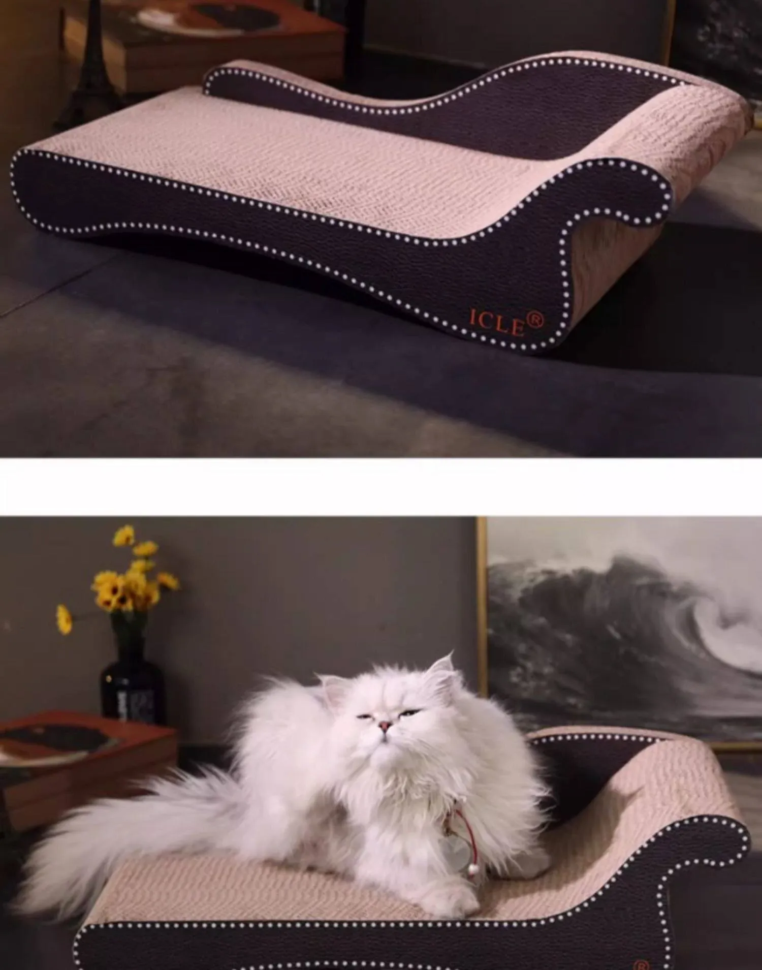 Cat Scratching Post & Lounge Bed Combo - Corrugated Cardboard Sofa for Cats - Fun Scratcher and Cozy Hideaway for Kittens - Perfect Cat Toy and Claw Care Solution