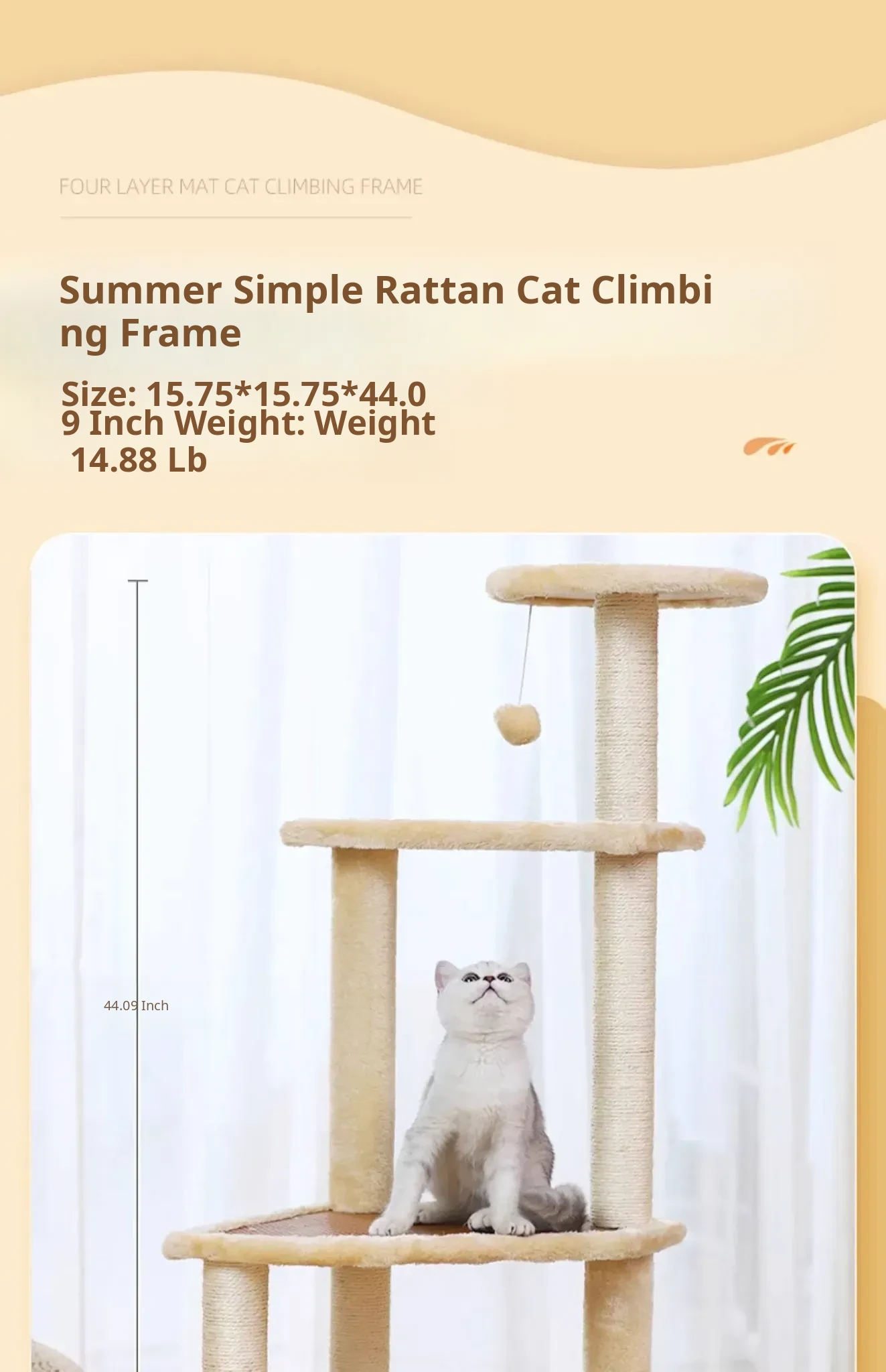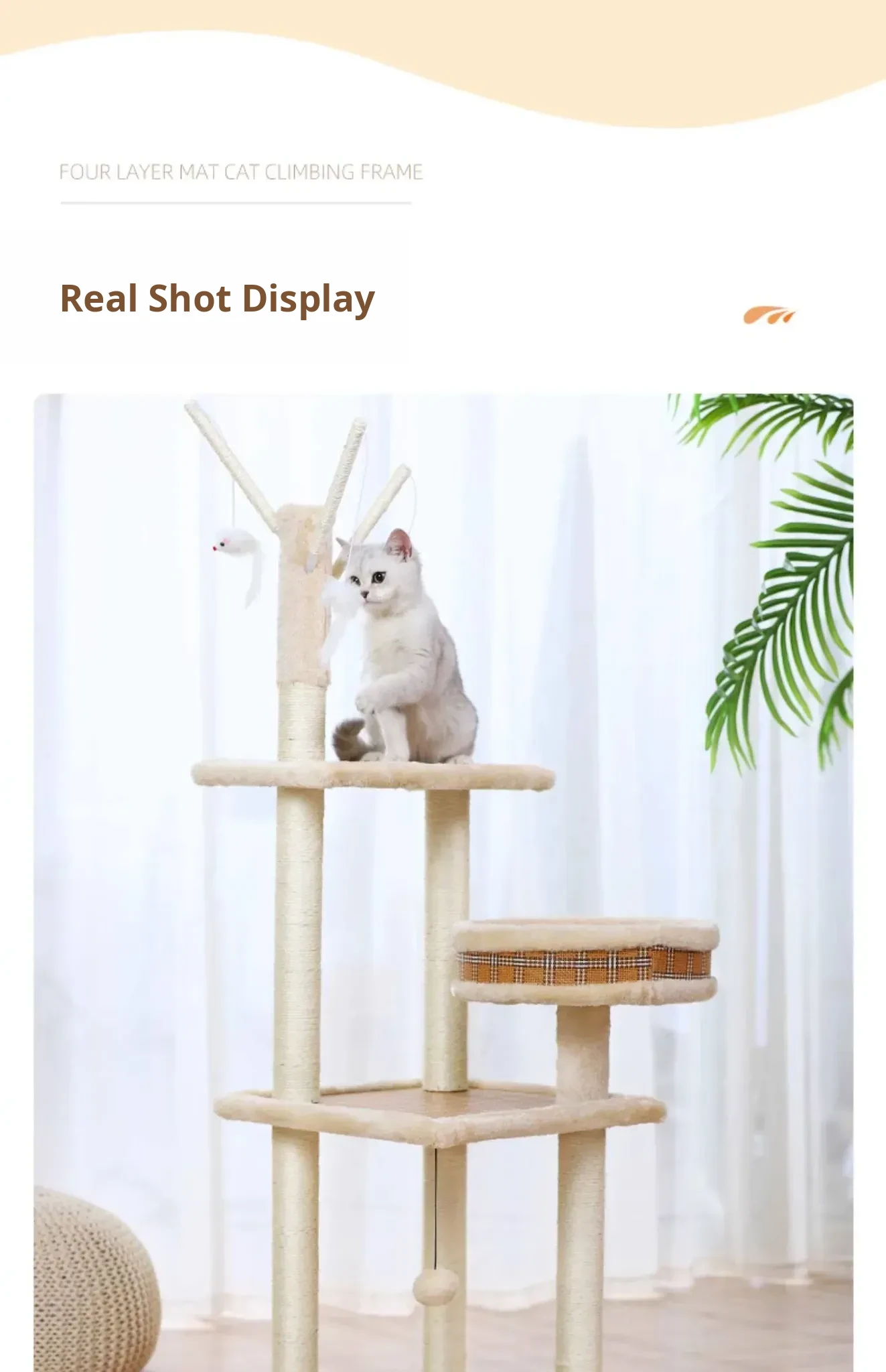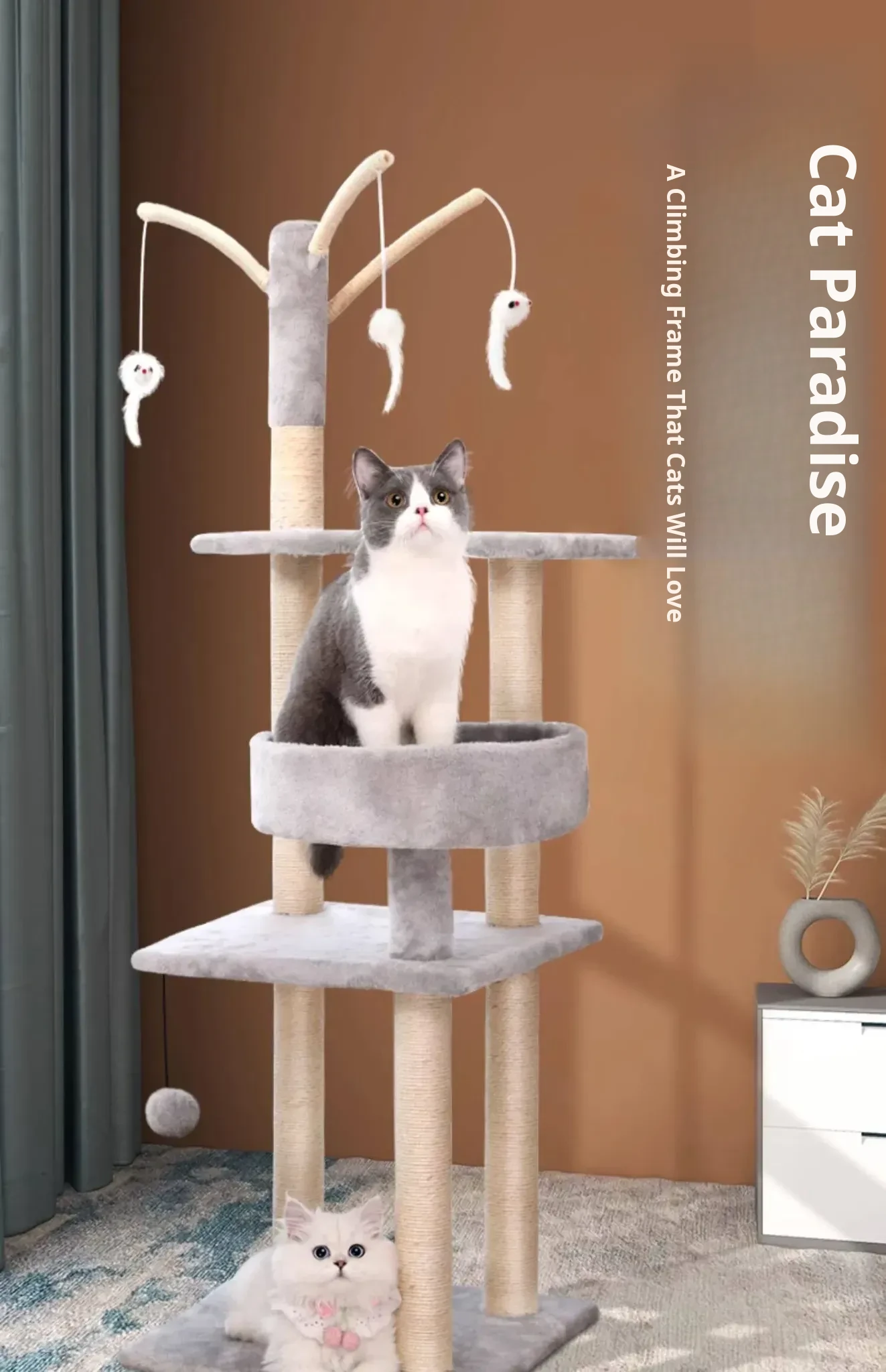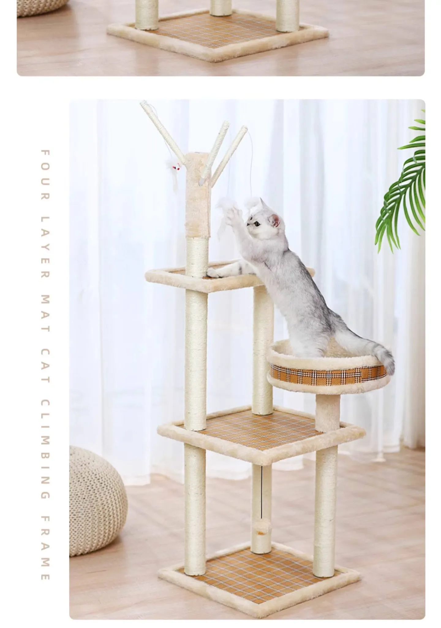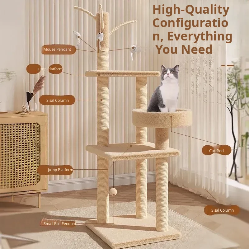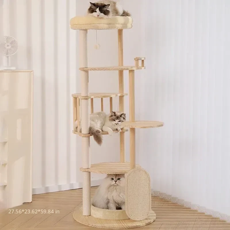 Meiju Series Natural Rubberwood Cat Tree
