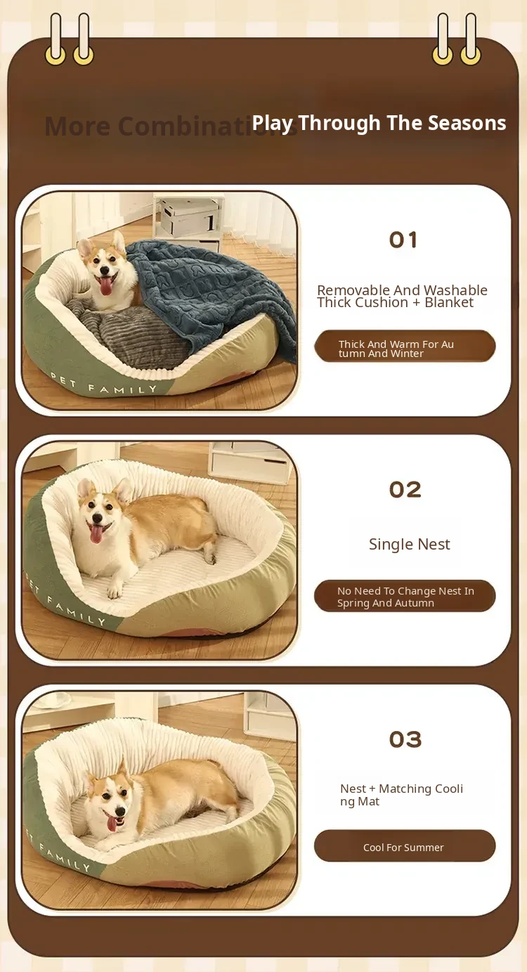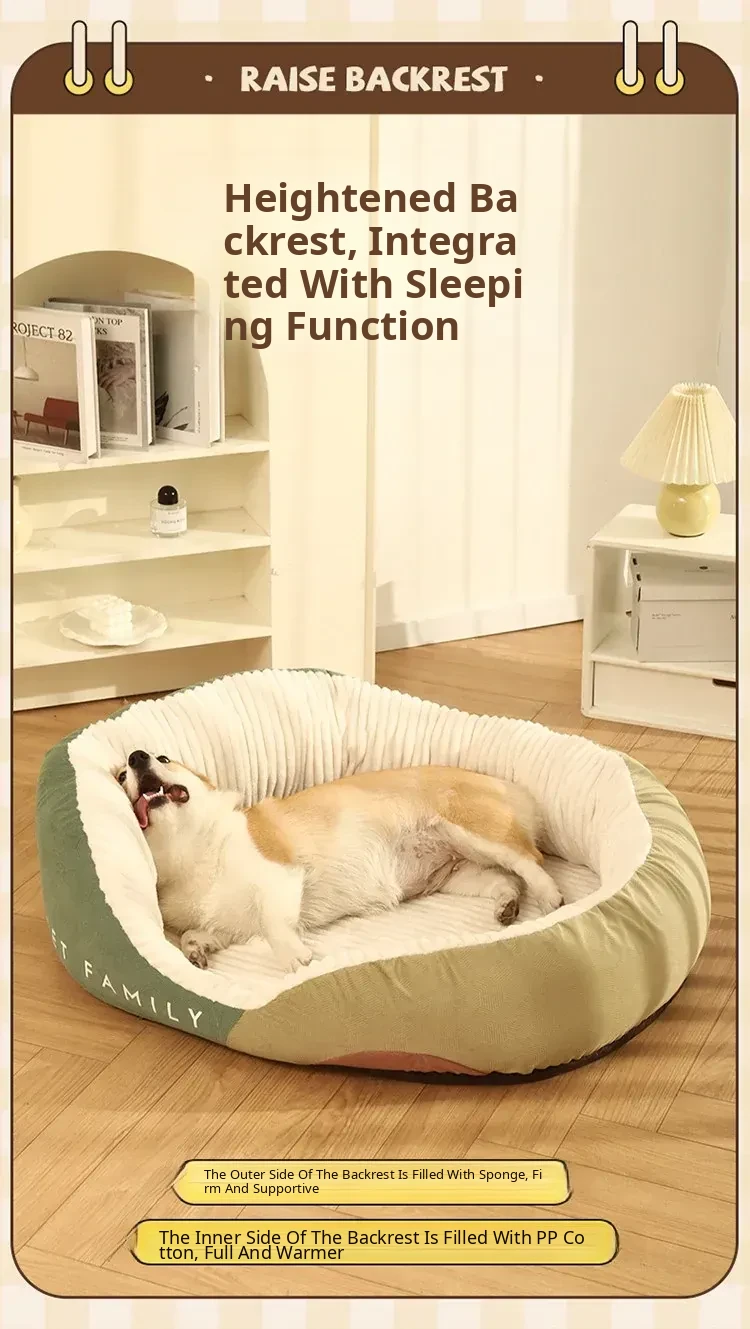 Cozy All-Around Dog Sofa for Corgis - Thick, Deep Sleep Dog Bed for Large Breeds - Winter Warmth Pet Nest for Ultimate Comfort