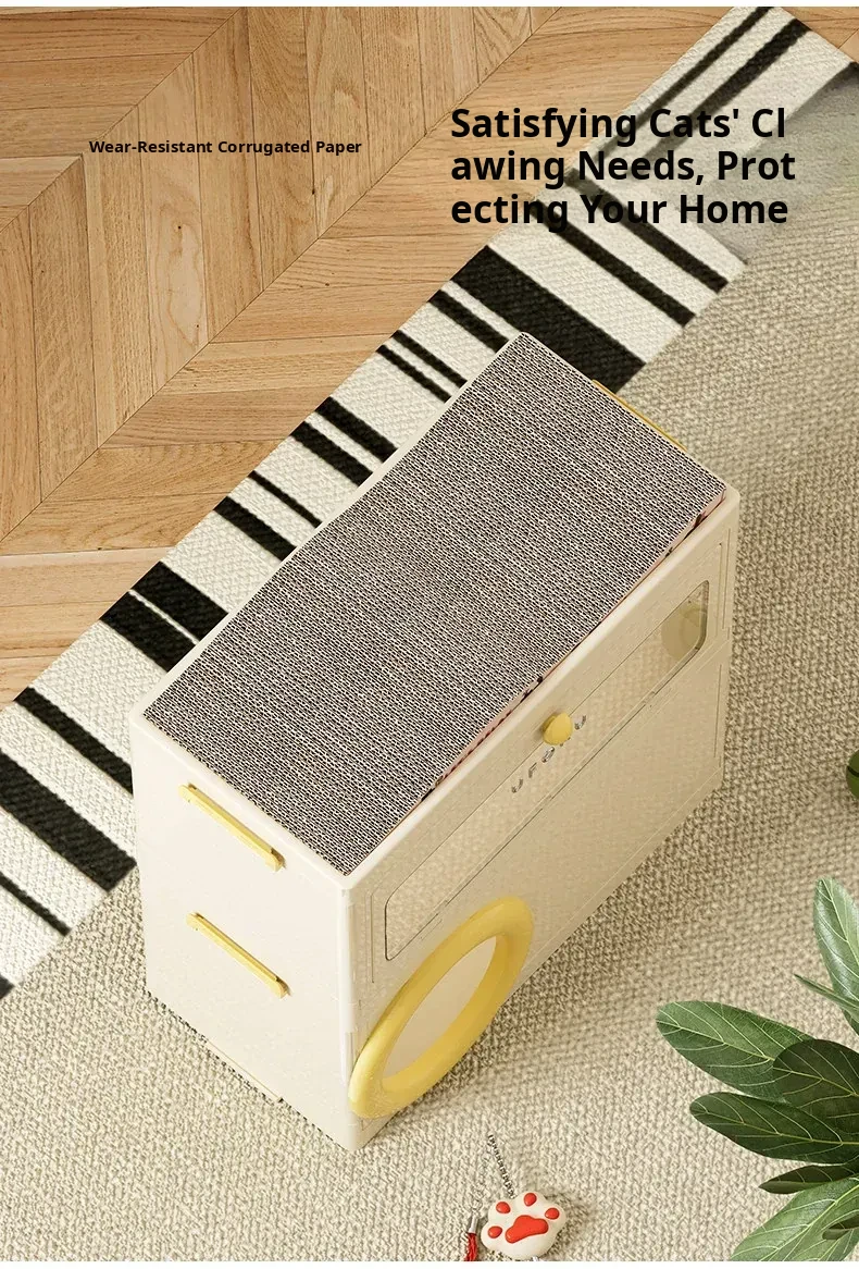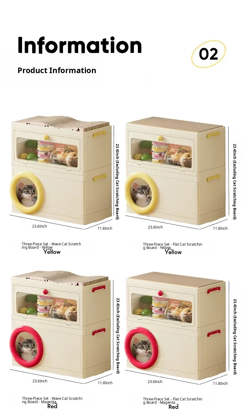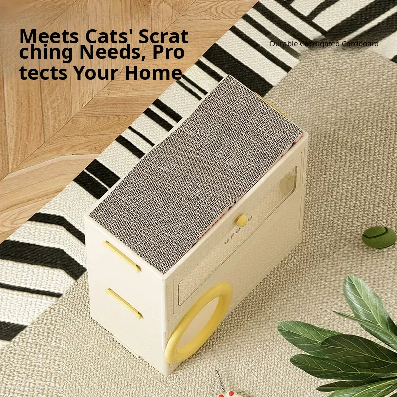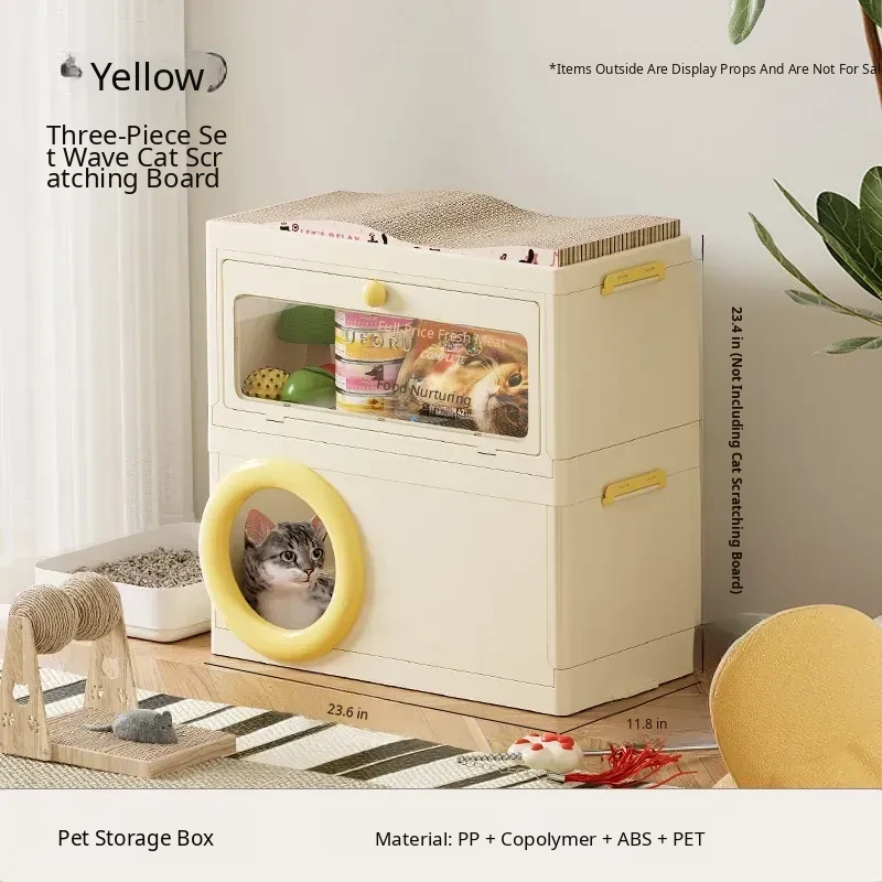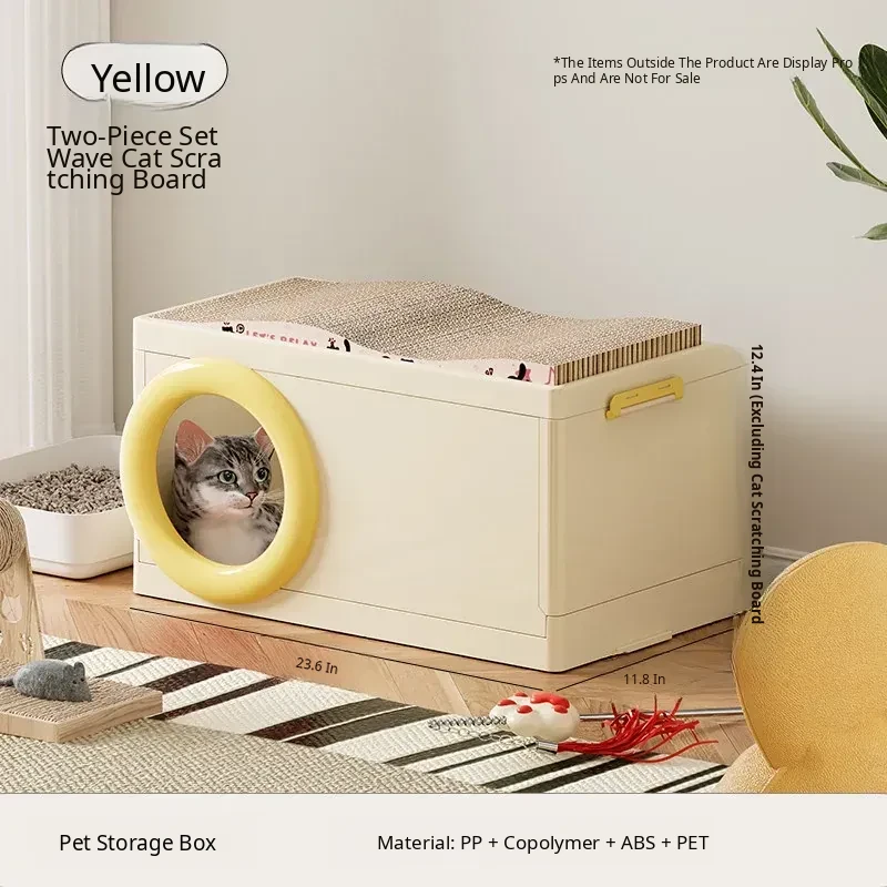 Cat Bed with Scratching Board and Storage Combo (Yellow)