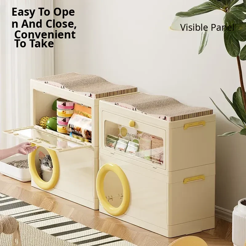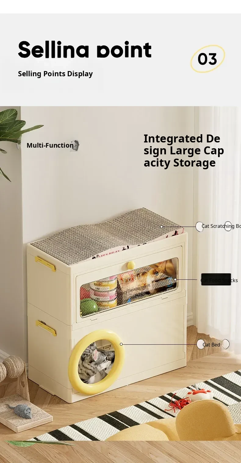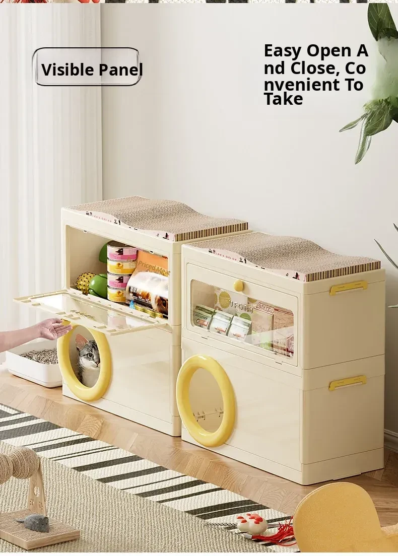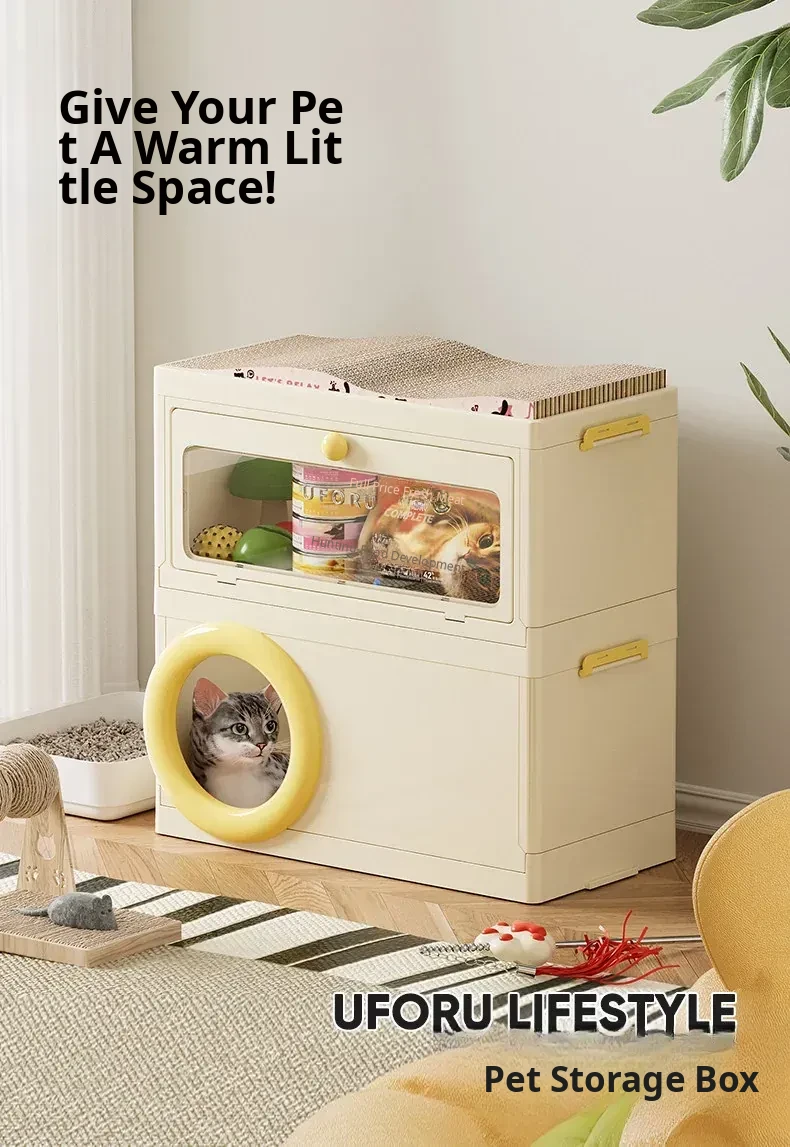 Cat Bed with Scratching Board and Storage Combo (Yellow)