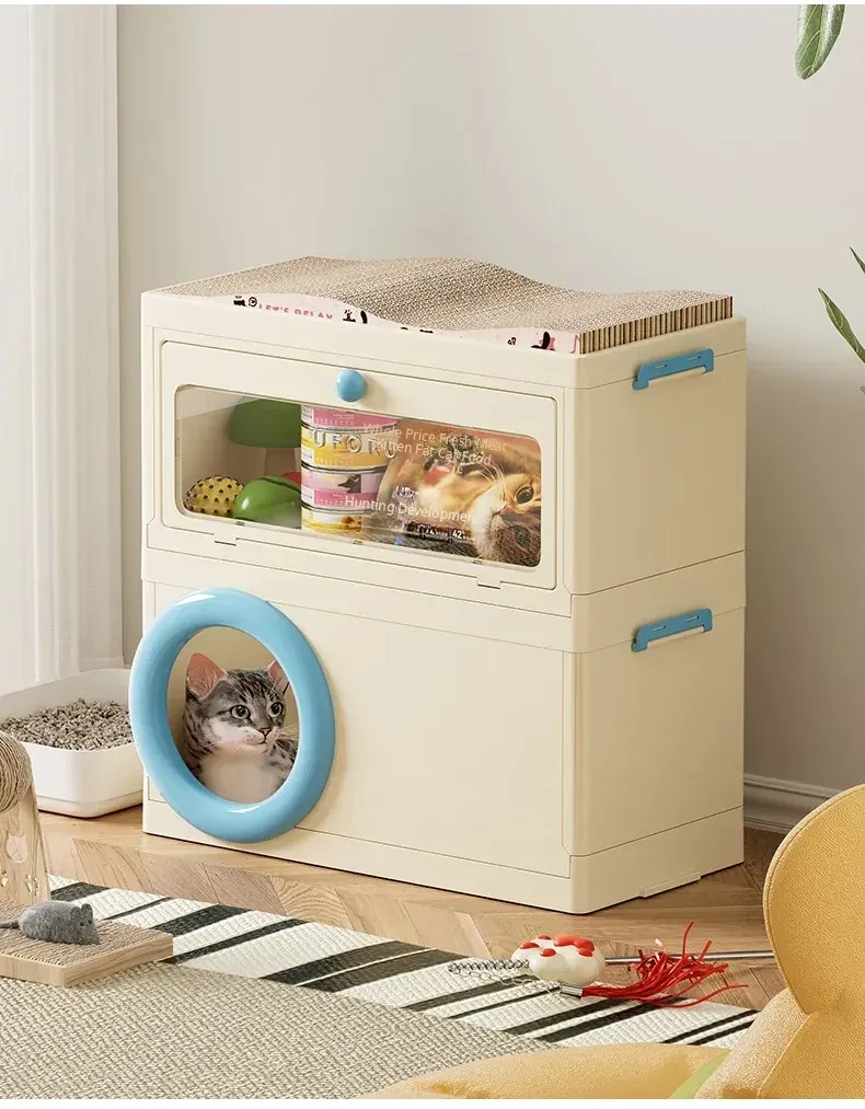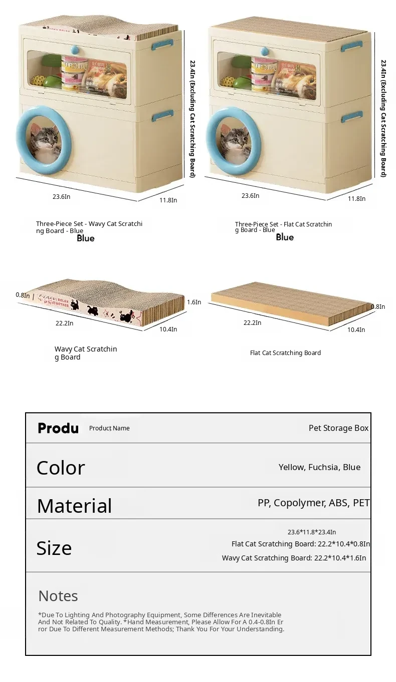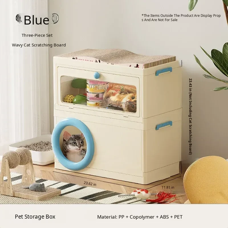 Cat Bed with Scratching Board and Storage Combo (Blue)