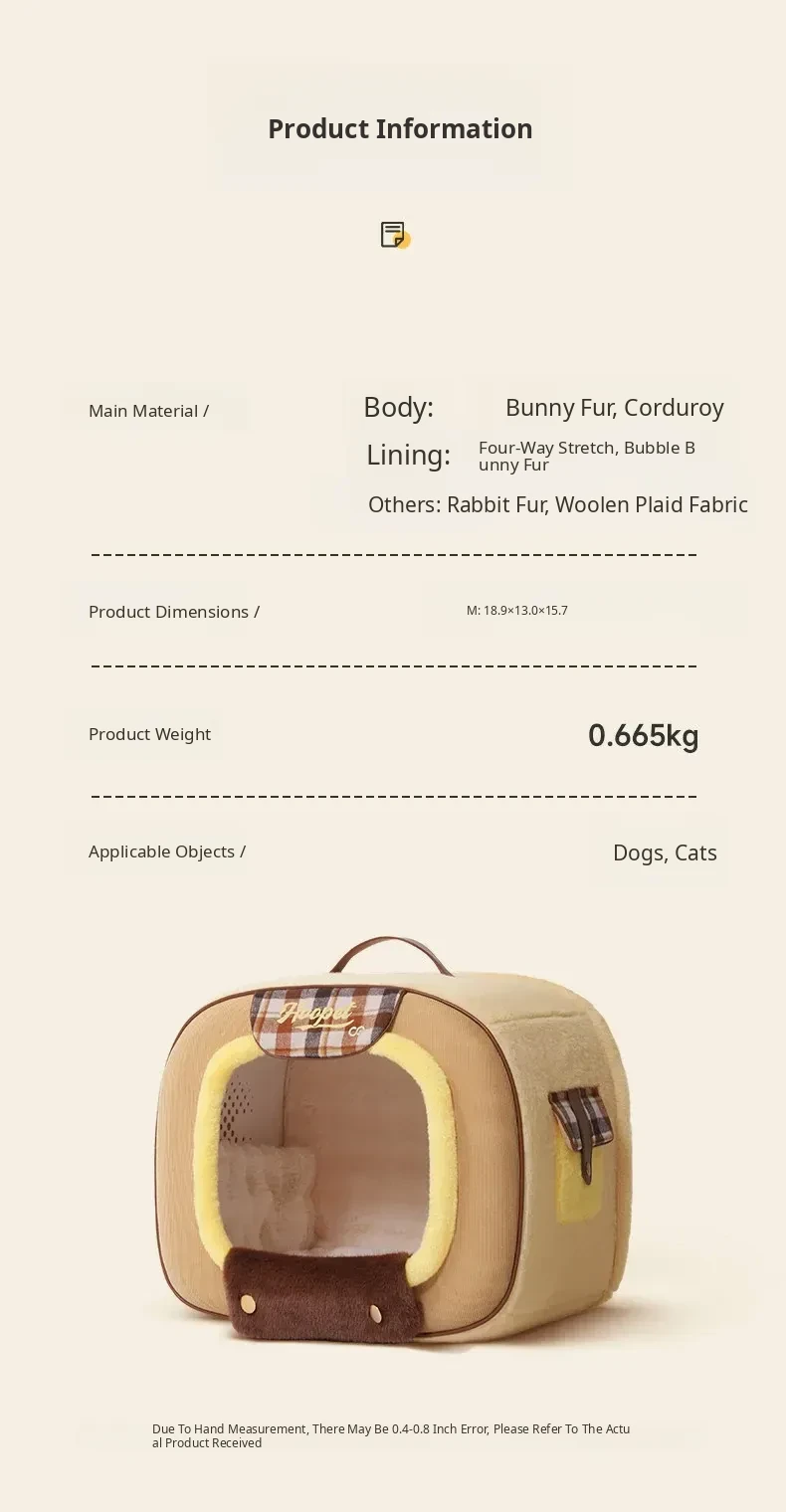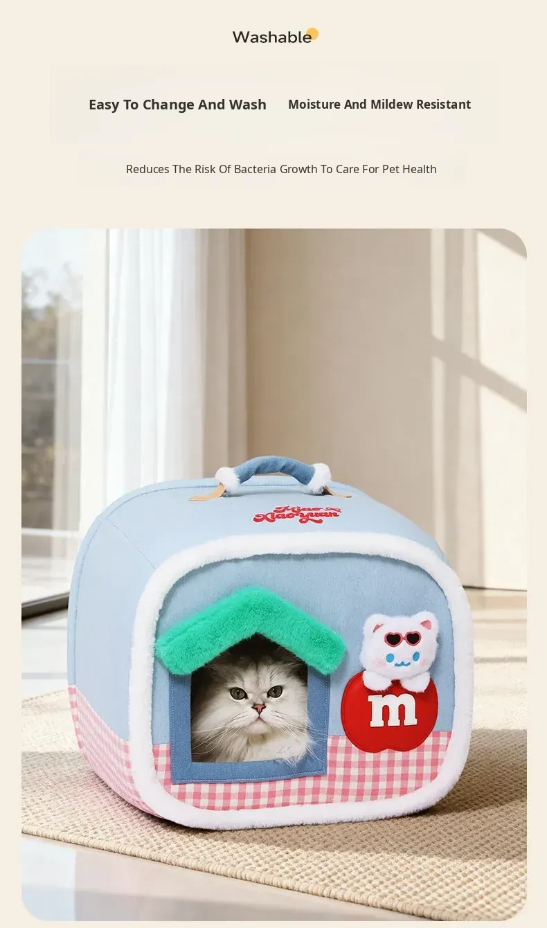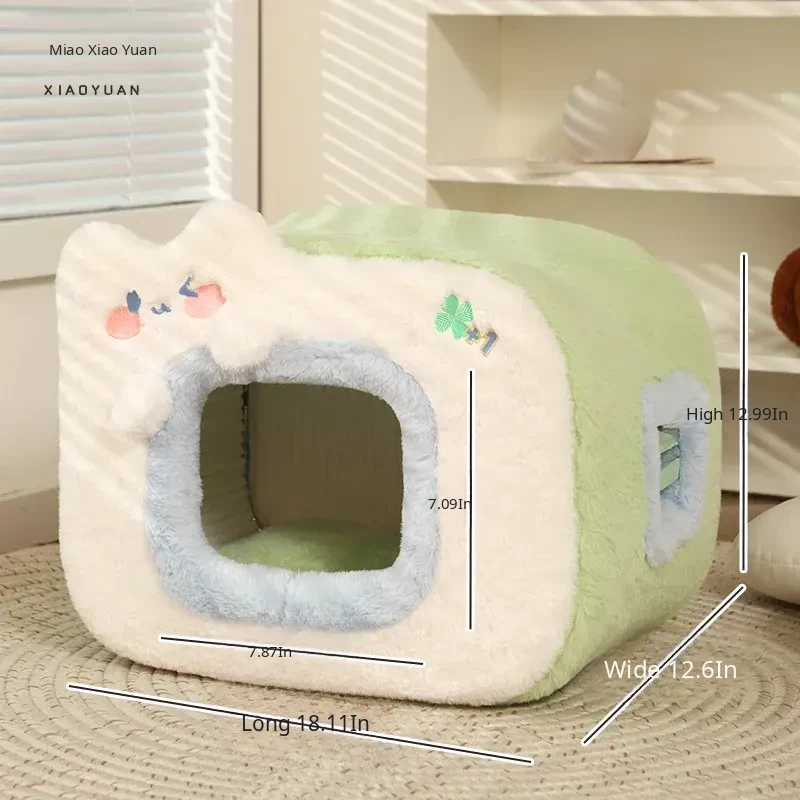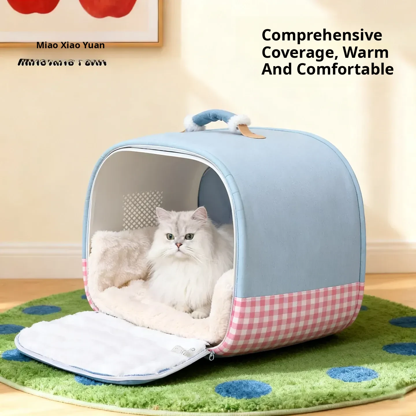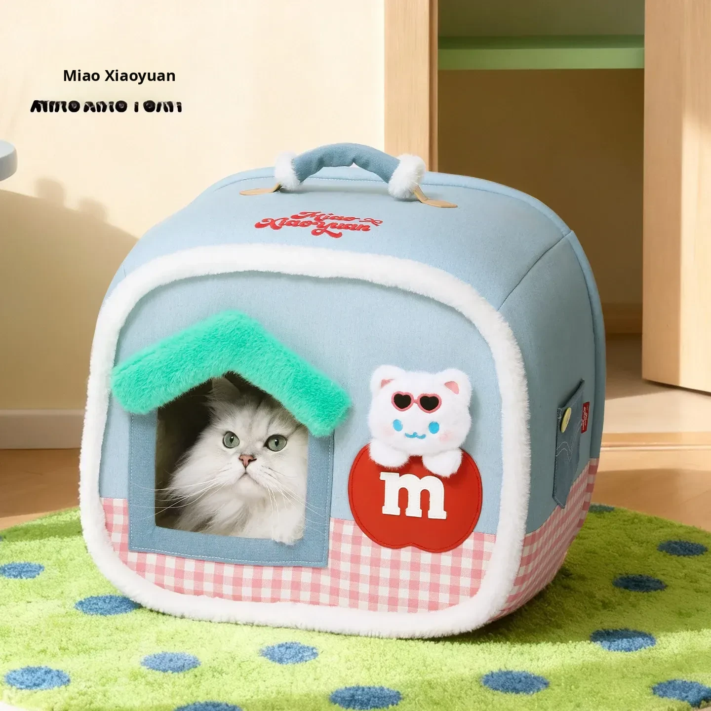 Cozy Cat House by Miao Xiao Yuan - Enclosed Design for Ultimate Safety and Comfort, Removable and Washable, Perfect for Winter Warmth for Your Feline Friend!