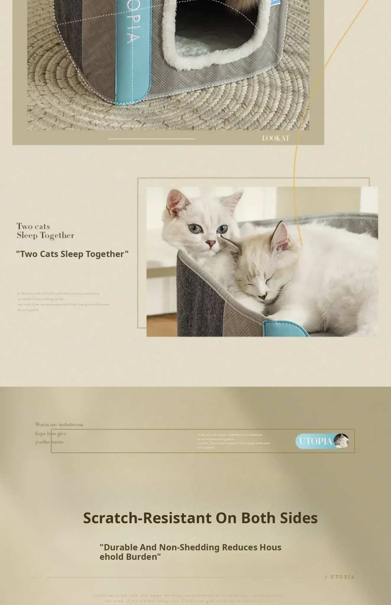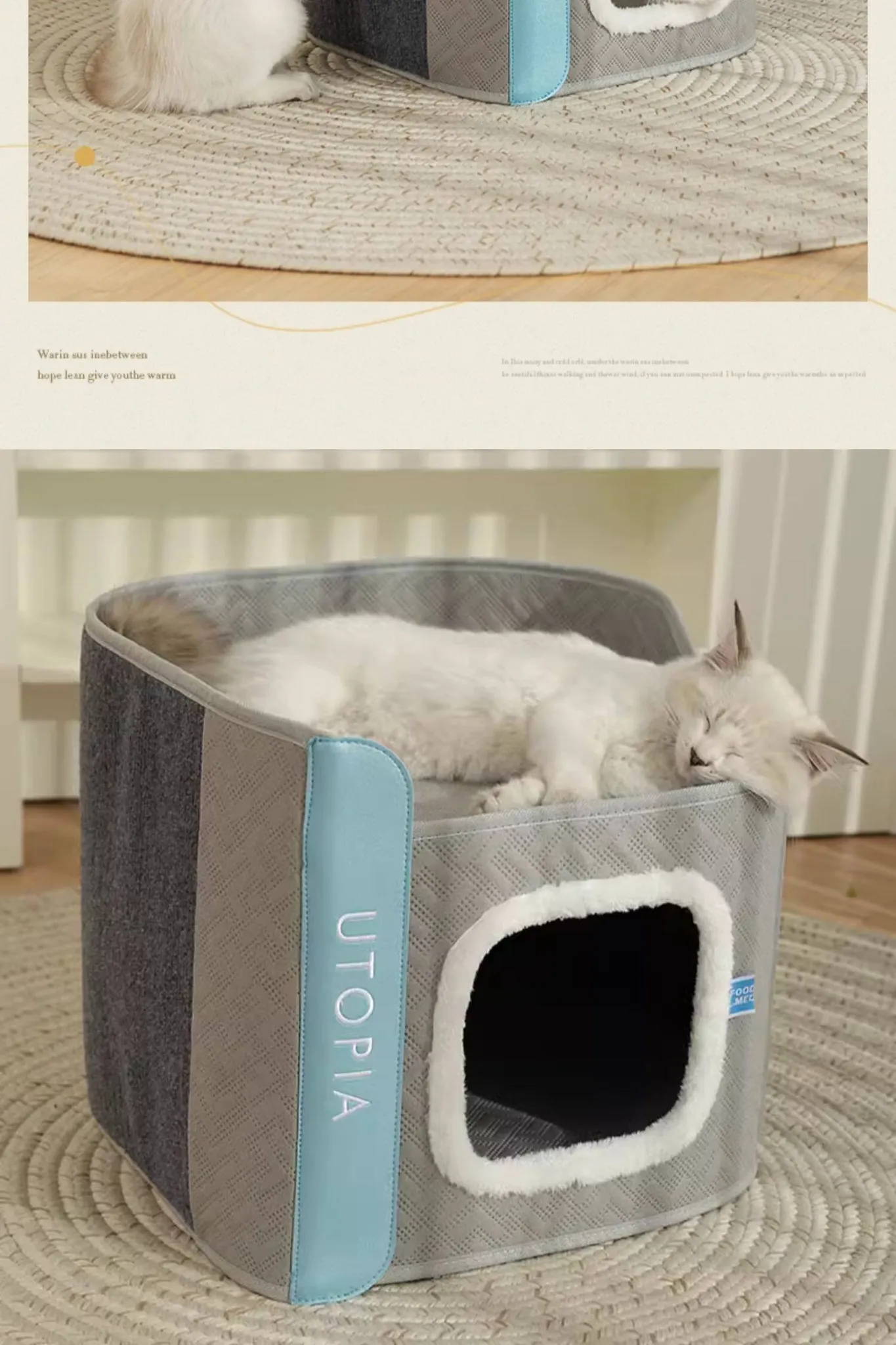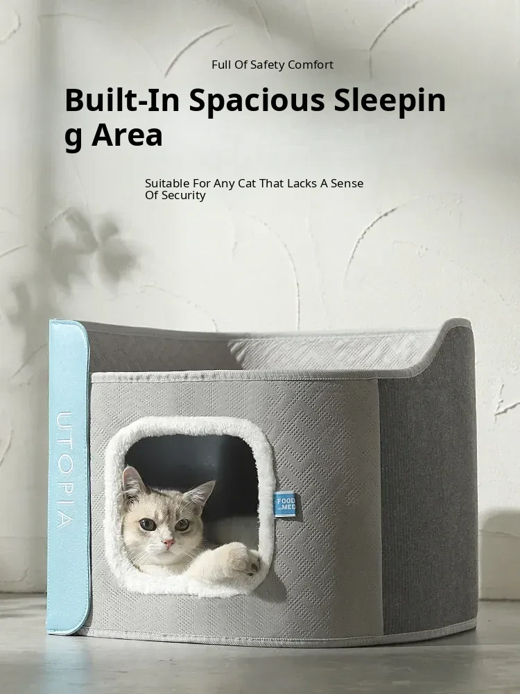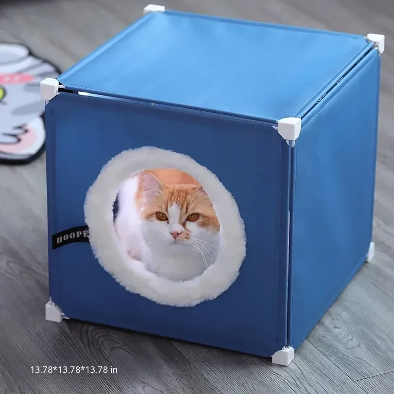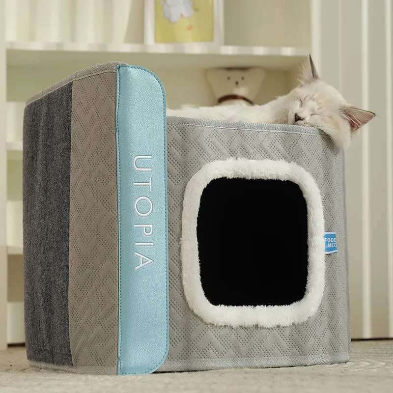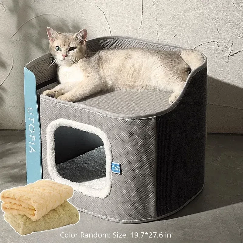 Double-Layer Moisture-Proof Closed Cat Nest + Comfortable Cotton Plush Blanket*1(Warm for All Seasons)