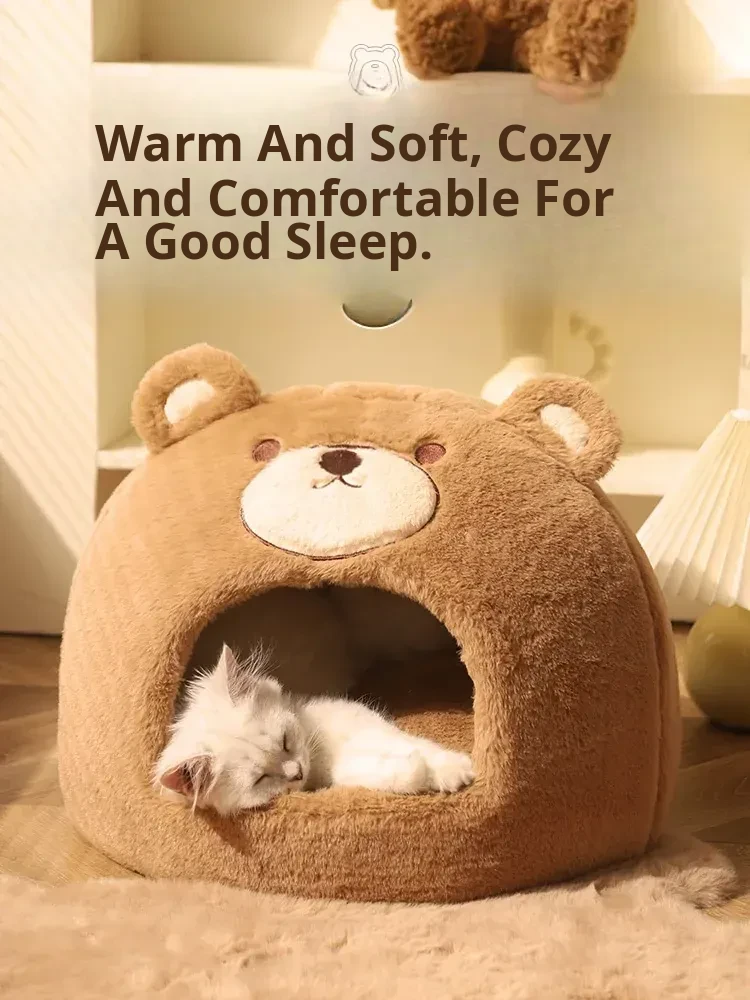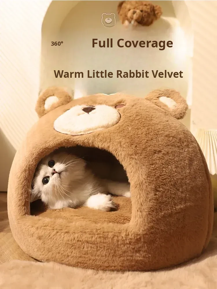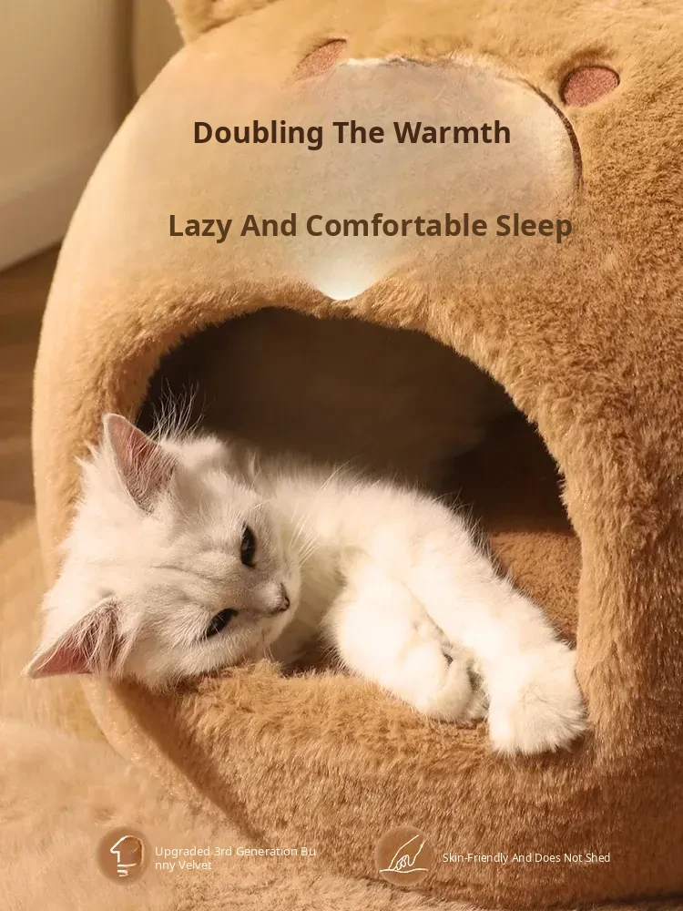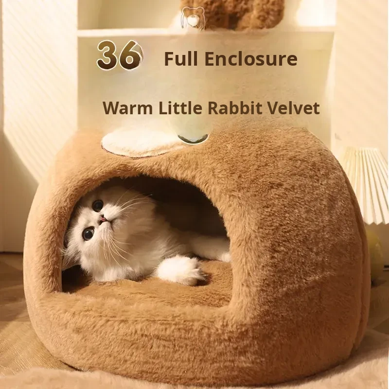 Cozy Enclosed Cat Bed with Thickened Warm Mat - All-Season Pet Tent for Cats, Perfect Winter Retreat for Your Feline Friend!