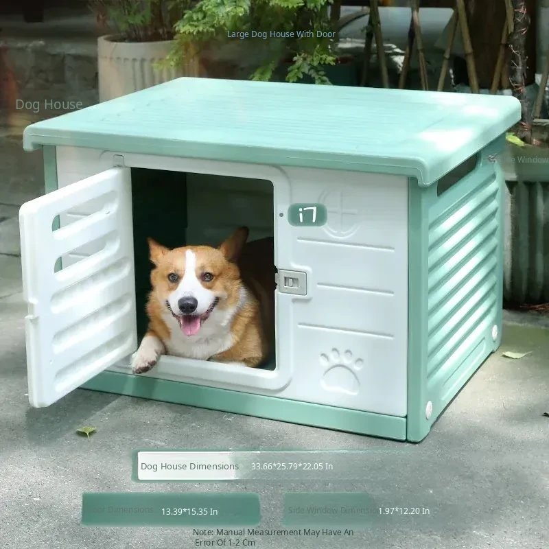Large Indoor and Outdoor Pet Kennel with Door - Green (for Small and Medium-Sized Dogs 20kg and under)