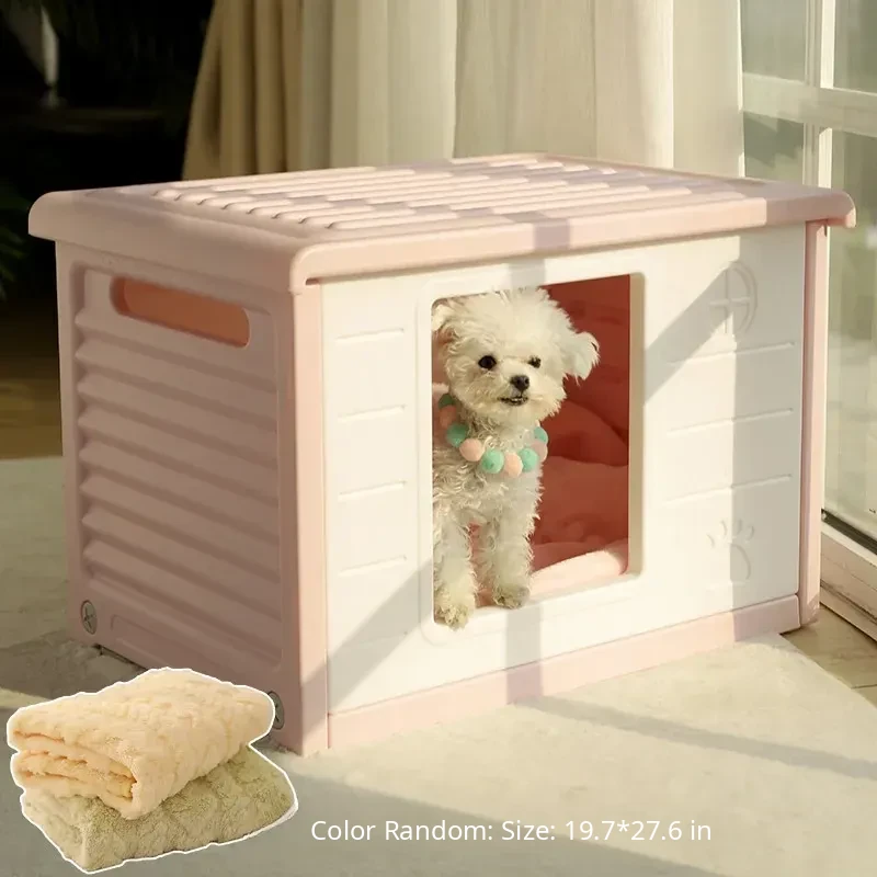 Outdoor Sunproof and Rainproof Pet Nest-Pink + Blanket