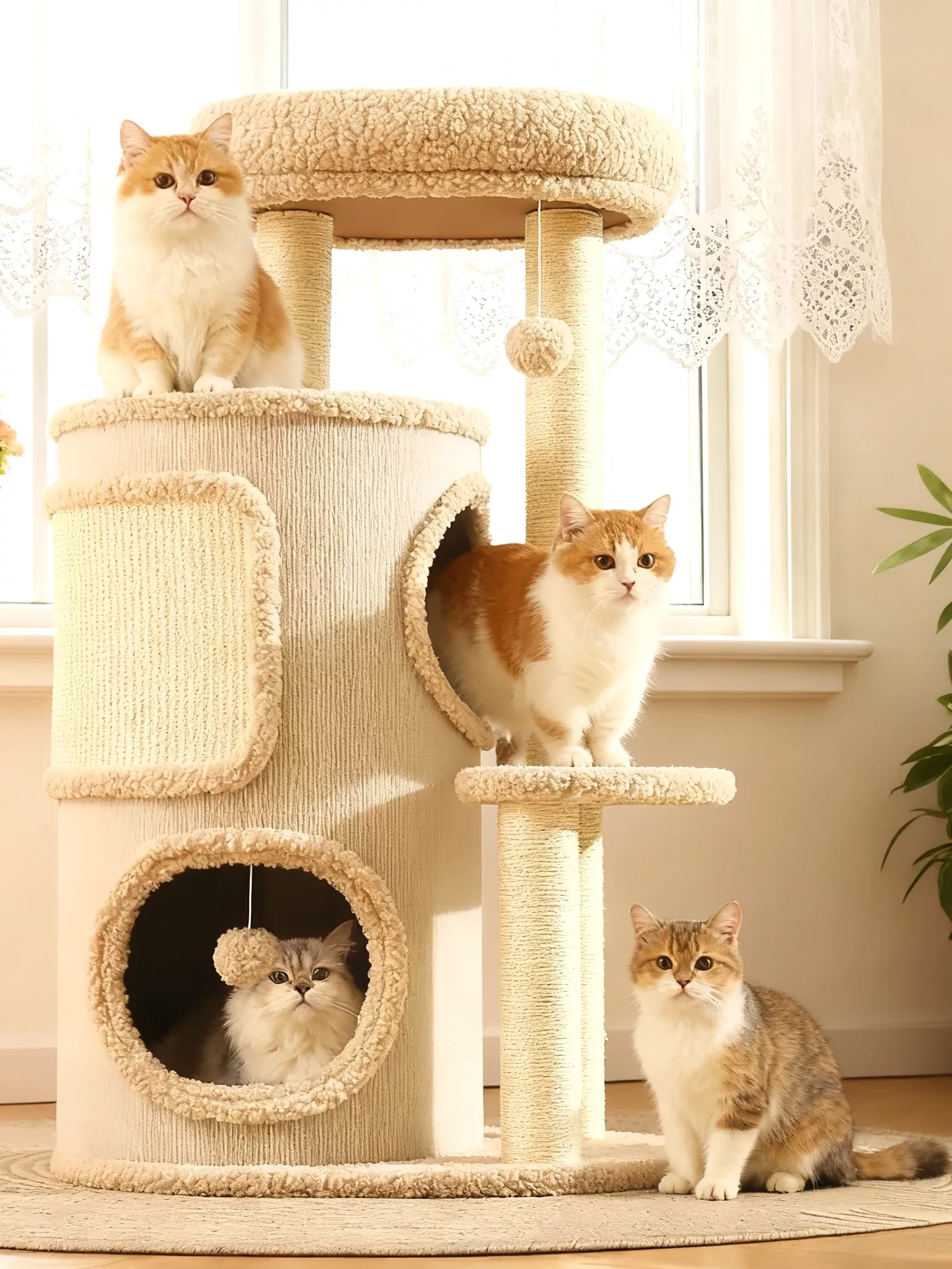 Cozy Multi-Layer Cat Condo & Climbing Frame - Space-Saving Indoor Cat Tree with Dual Levels for Play and Sleep, Perfect for Small Homes!