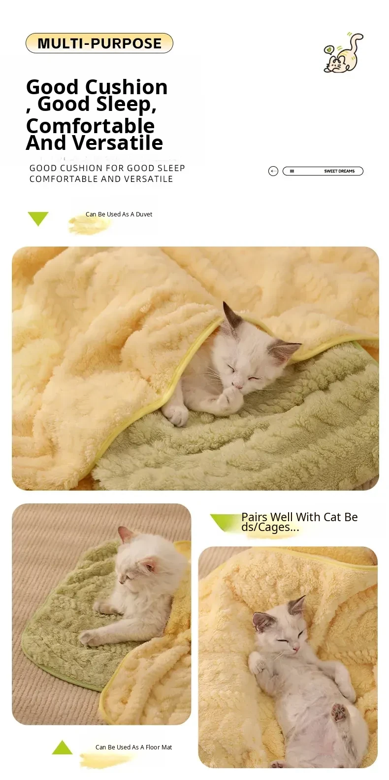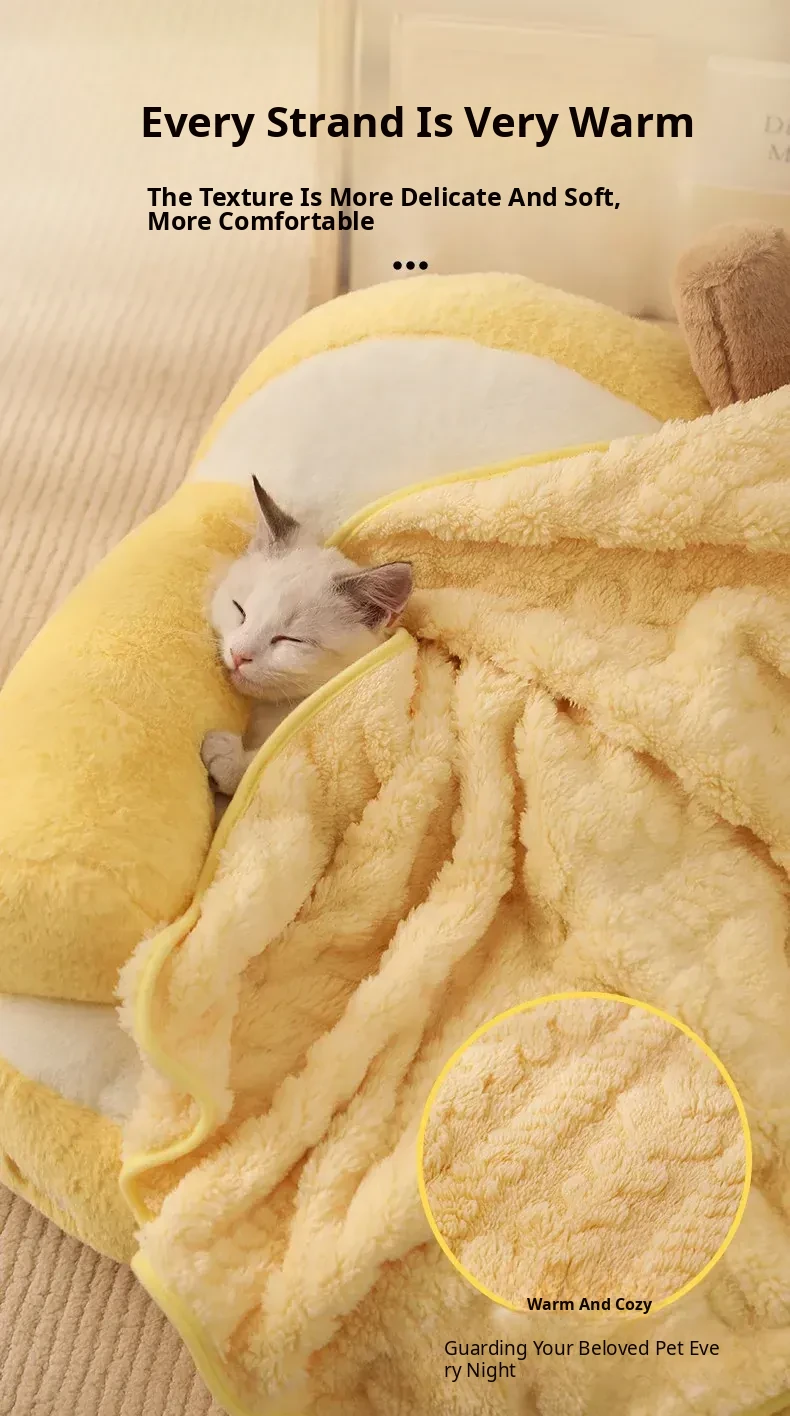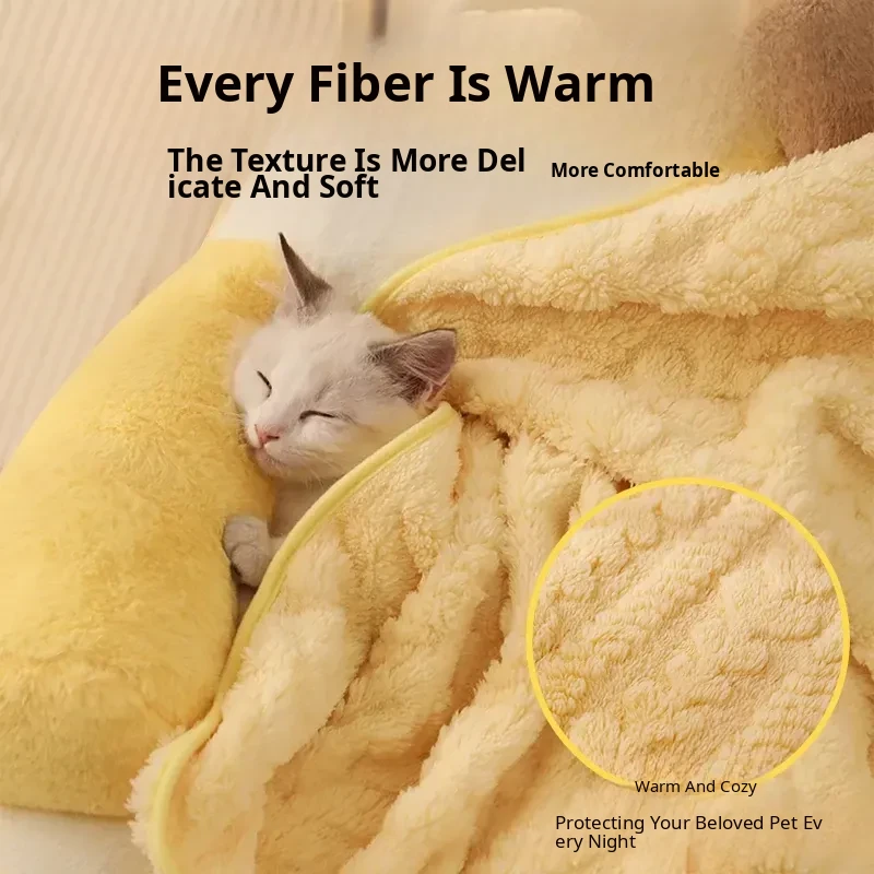 Cozy Pet Blanket and Cat Bed - Warm Winter Blanket for Cats, All-Season Thick Sleeping Mat, Perfect for Dogs and Cats to Snuggle and Sleep Comfortably