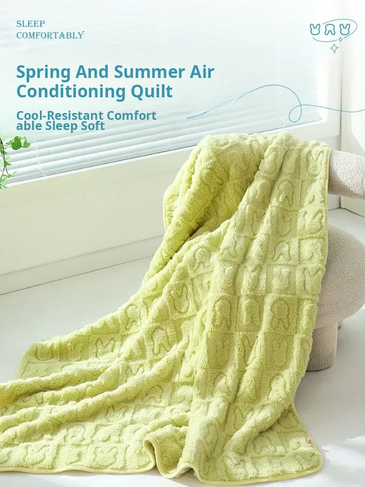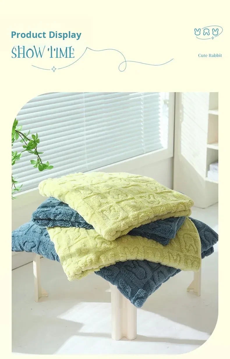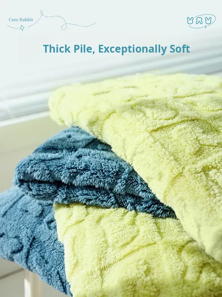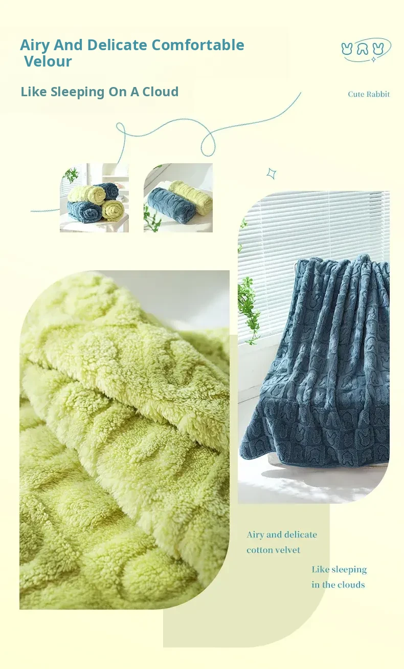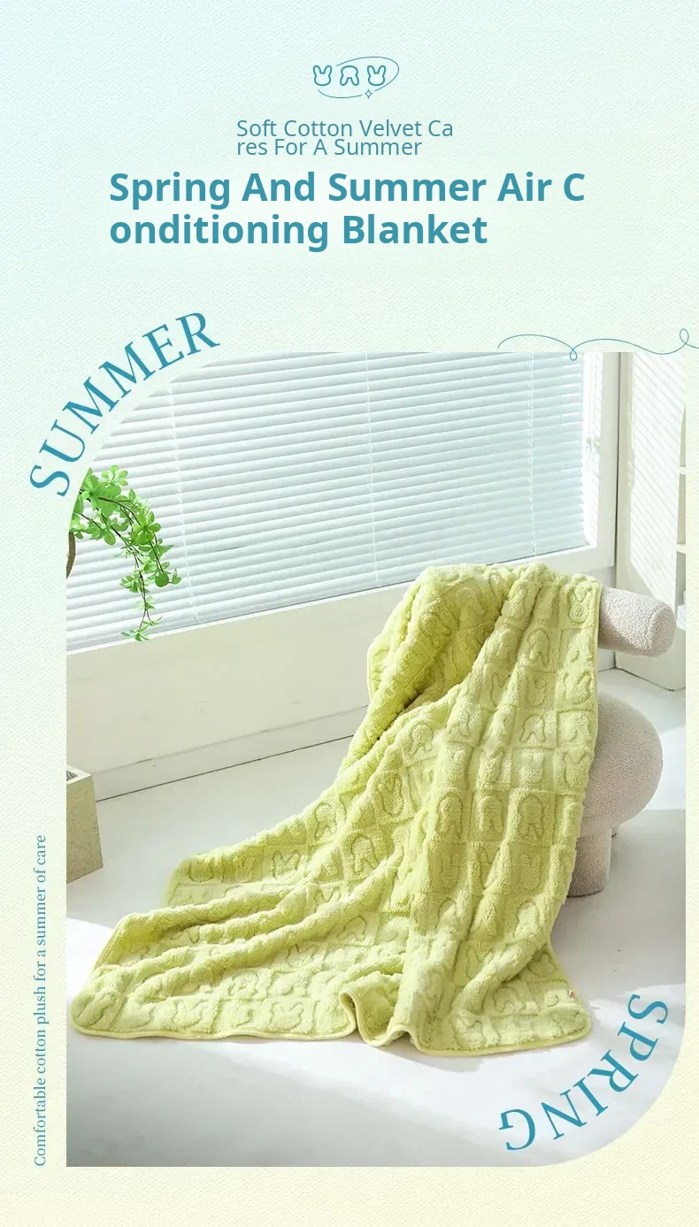 Shu Cotton Velvet Jacquard Rabbit Blanket - Grass Green
