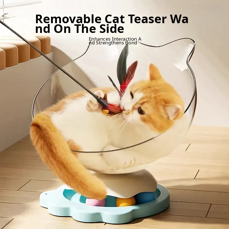 Cozy Space Capsule Cat Bed for All Seasons - Removable & Washable Sleeping Nest for Kittens, Includes Interactive Cat Wand and Self-Playing Spinning Ball Toy