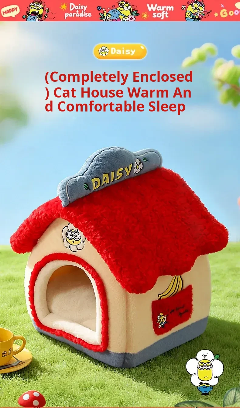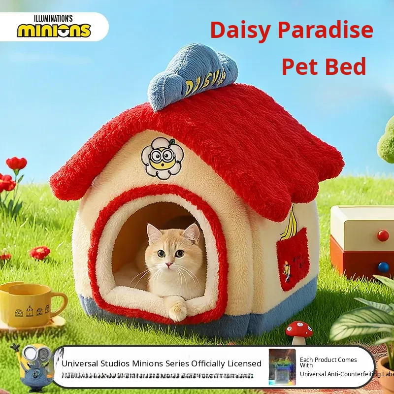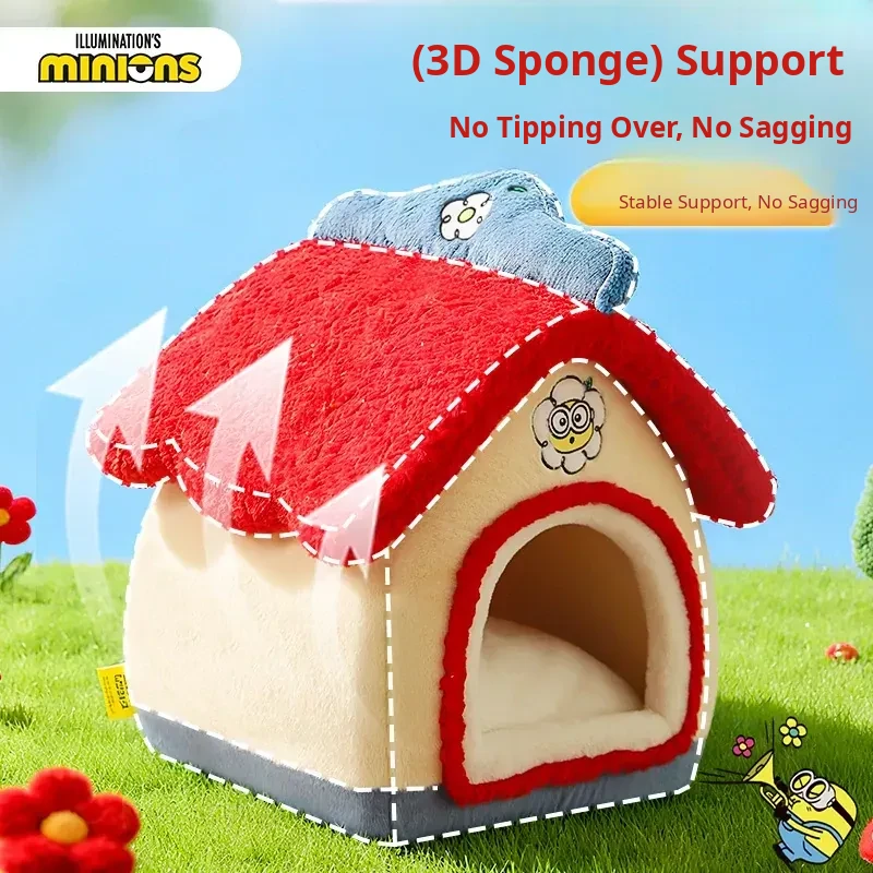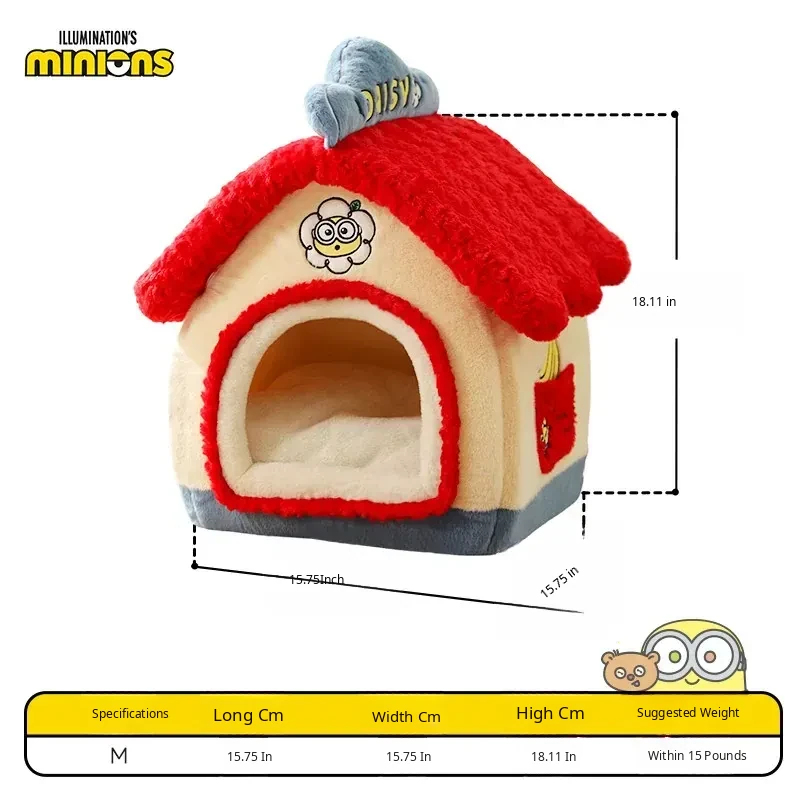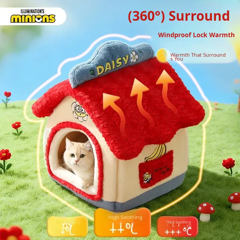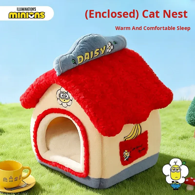 Cozy Thickened Winter Cat Bed - Enclosed Minion Style, Warm and Comfortable Cat House for Cats and Small Dogs, Perfect for Winter Snuggles
