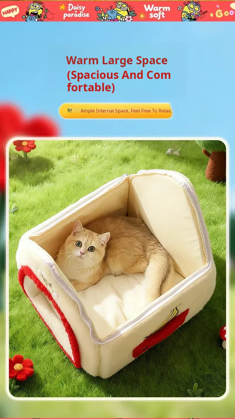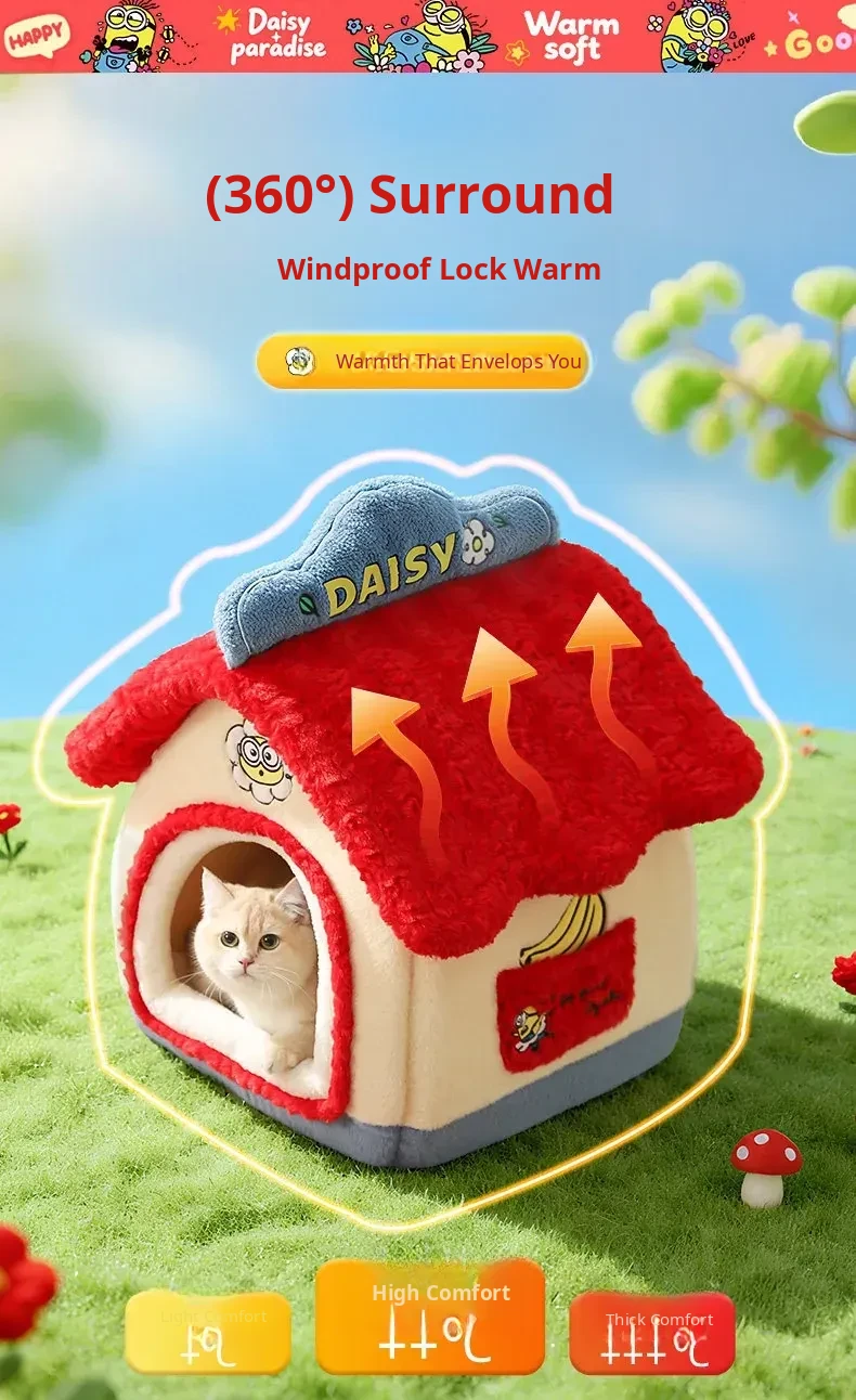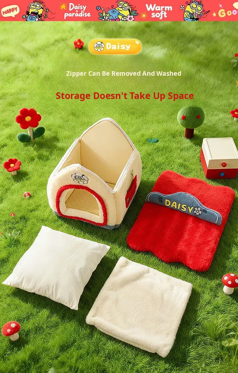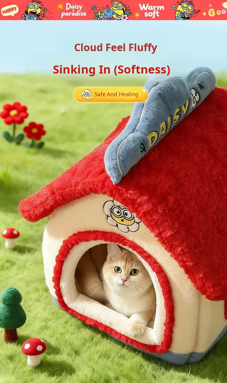 Cozy Thickened Winter Cat Bed - Enclosed Minion Style, Warm and Comfortable Cat House for Cats and Small Dogs, Perfect for Winter Snuggles