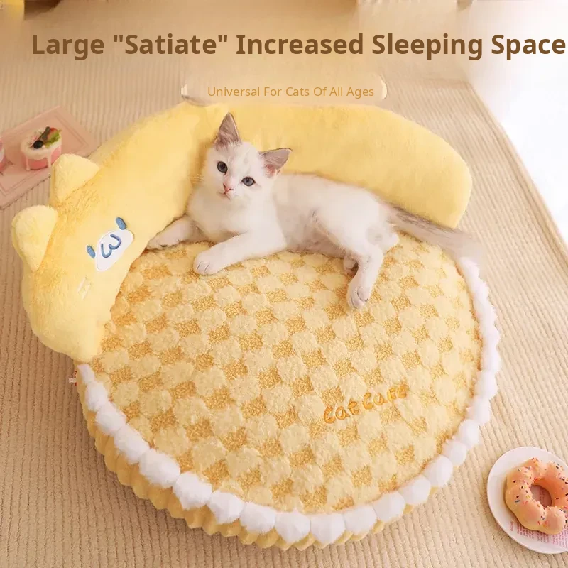 Cozy Winter Cat Bed - Thick Round Donut Design for Ultimate Comfort, All-Season Sleeping Nest, Provides Warmth and Security for Your Feline Friend on Cold Days
