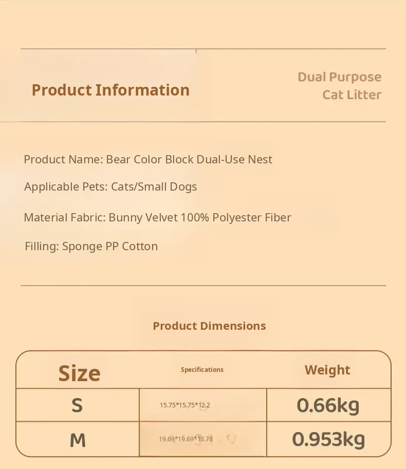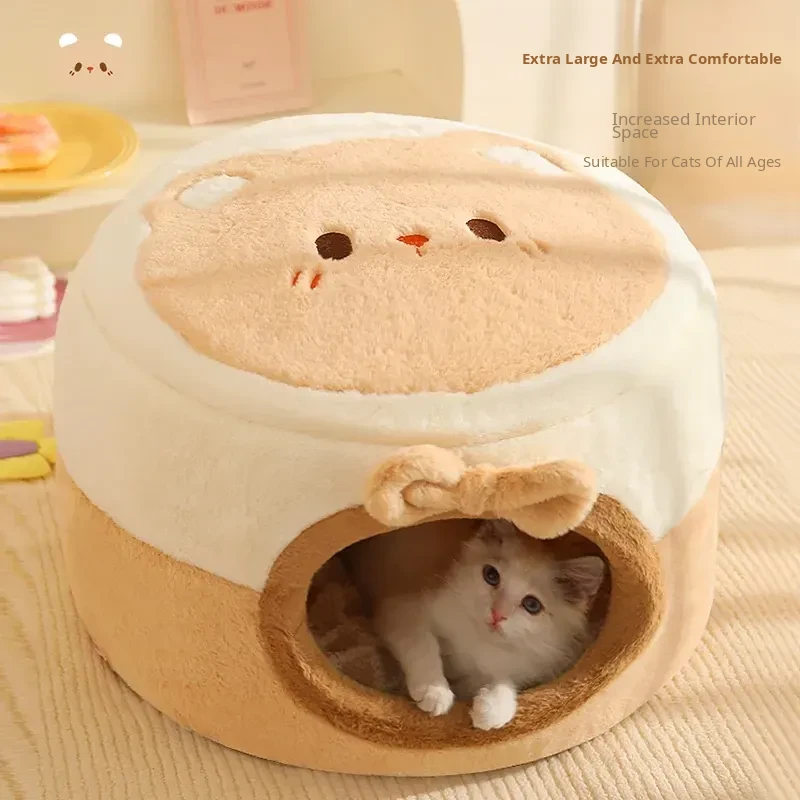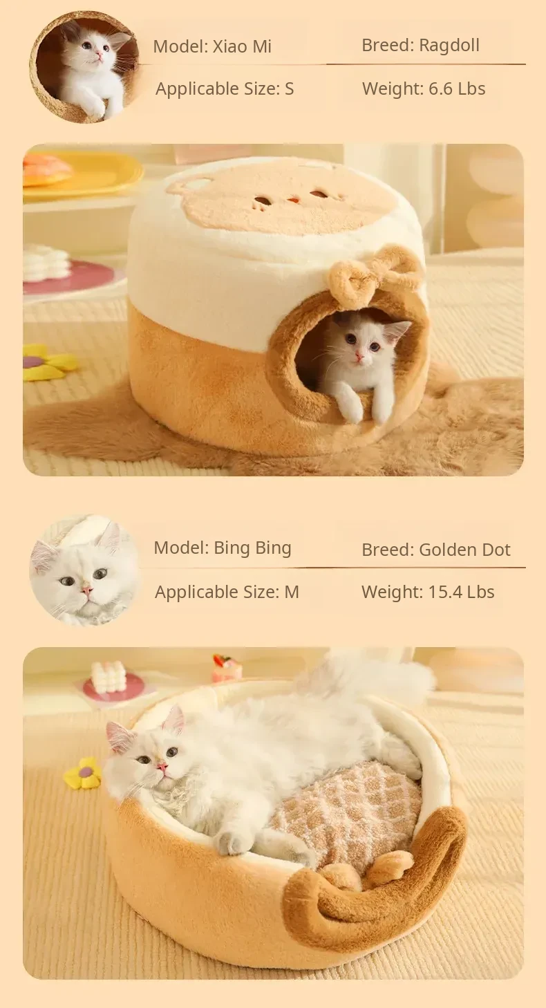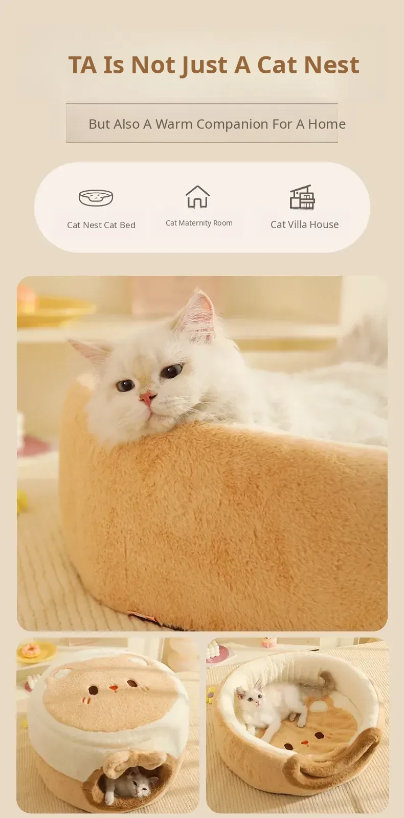 Warm Bear Enclosed Cat Nest + Comfortable Cotton Velvet Blanket*1
