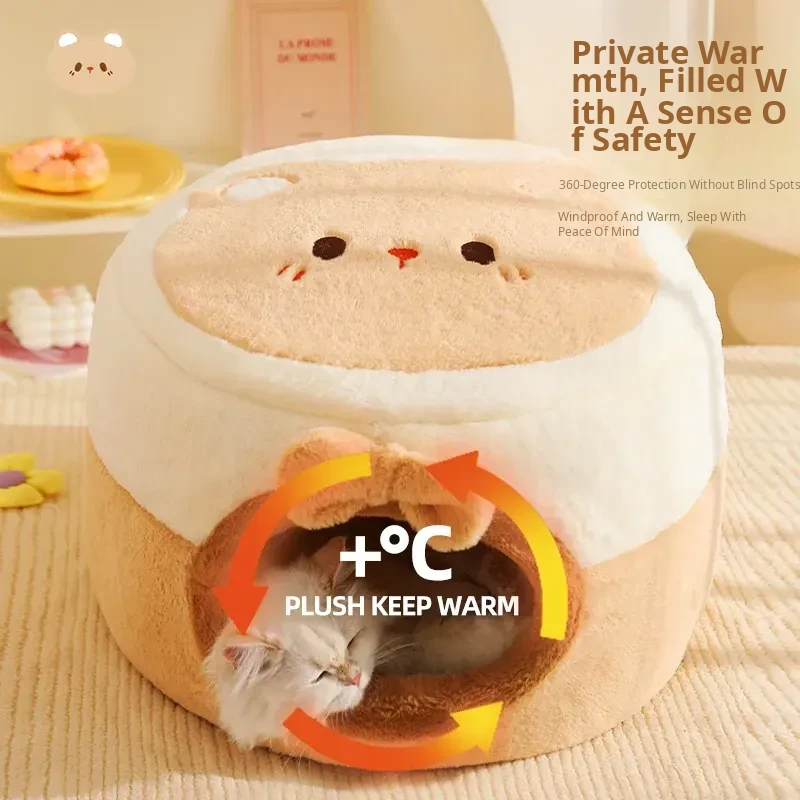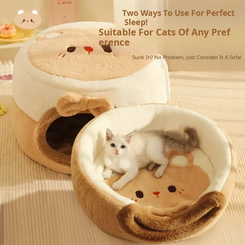 Cozy Winter Cat Bed - Thickened Enclosed Design for Ultimate Warmth and Security, All-Season Cat House and Sofa Bed for Your Feline Friend