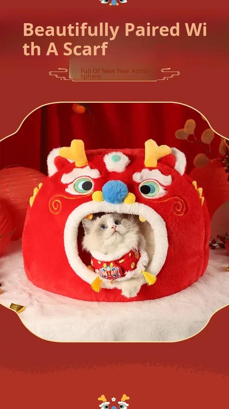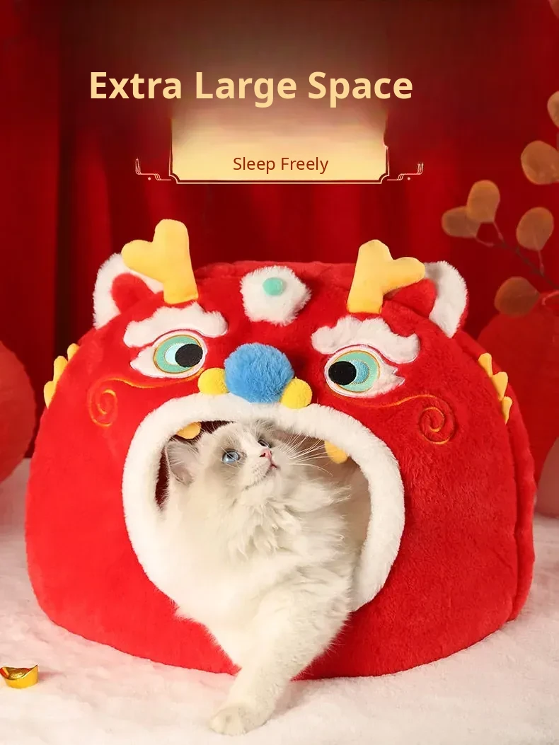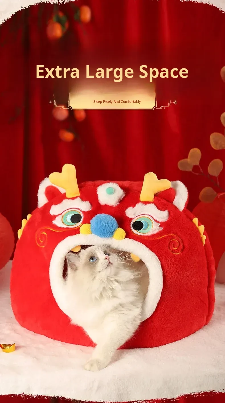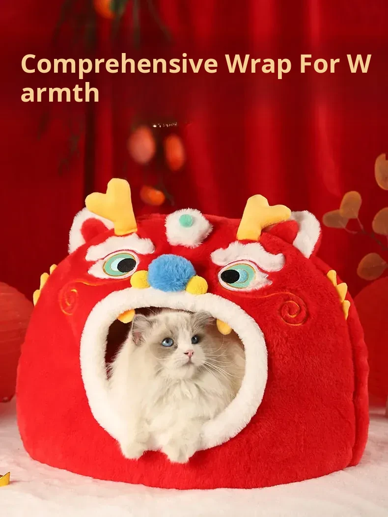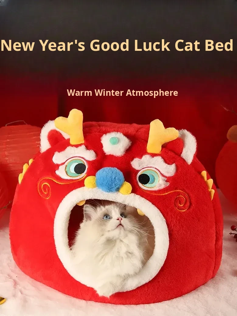 Cozy Winter Cat House - All-Season Enclosed Pet Bed for Cats, Windproof Design for a Warm and Comfortable Sleeping Experience. Perfect for New Year Celebrations!