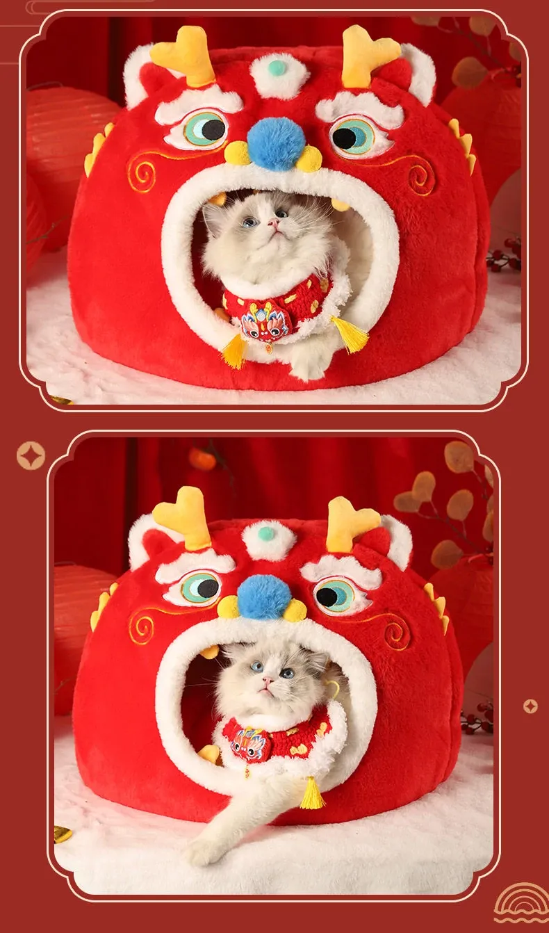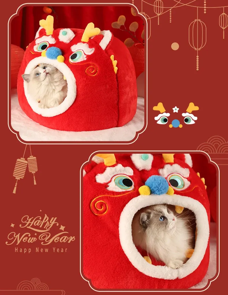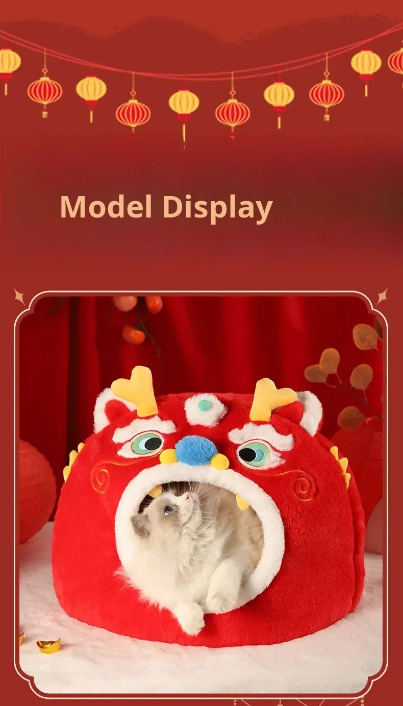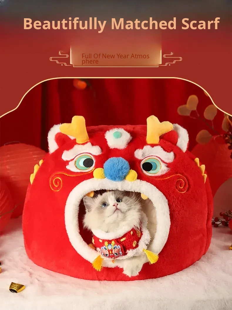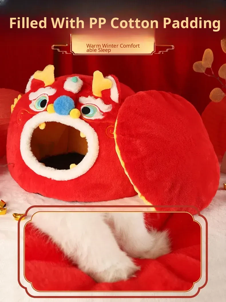 Cozy Winter Cat House - All-Season Enclosed Pet Bed for Cats, Windproof Design for a Warm and Comfortable Sleeping Experience. Perfect for New Year Celebrations!
