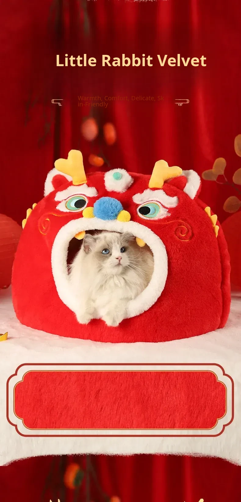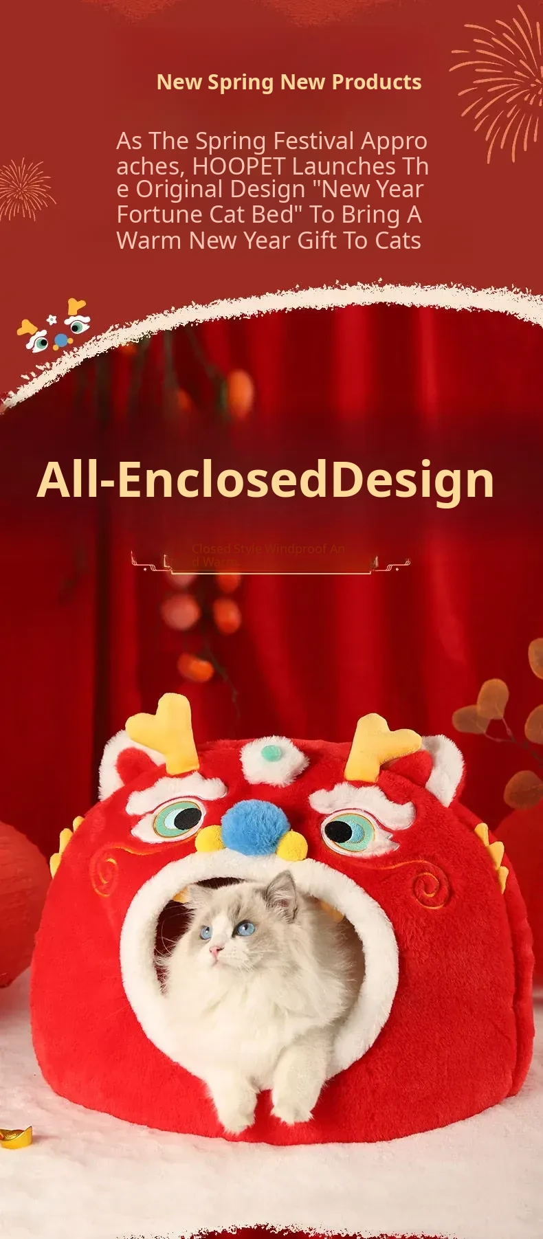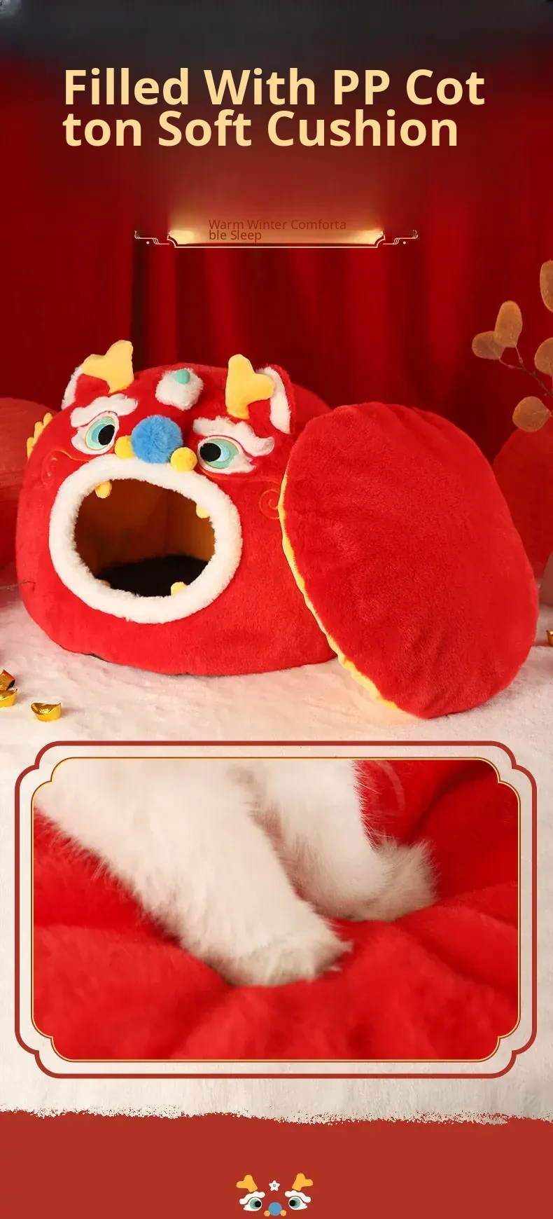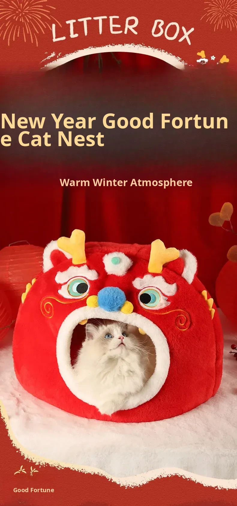 Cozy Winter Cat House - All-Season Enclosed Pet Bed for Cats, Windproof Design for a Warm and Comfortable Sleeping Experience. Perfect for New Year Celebrations!
