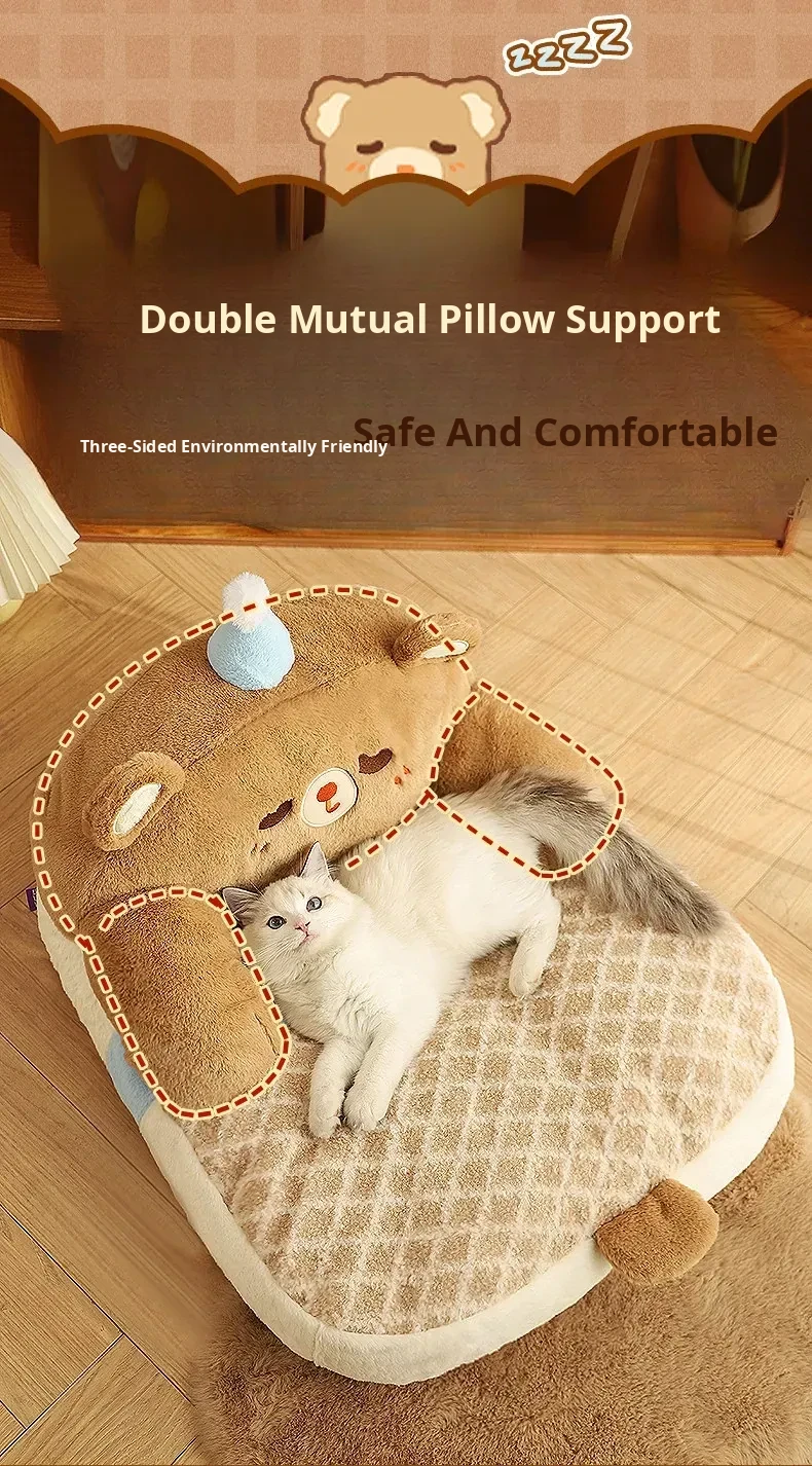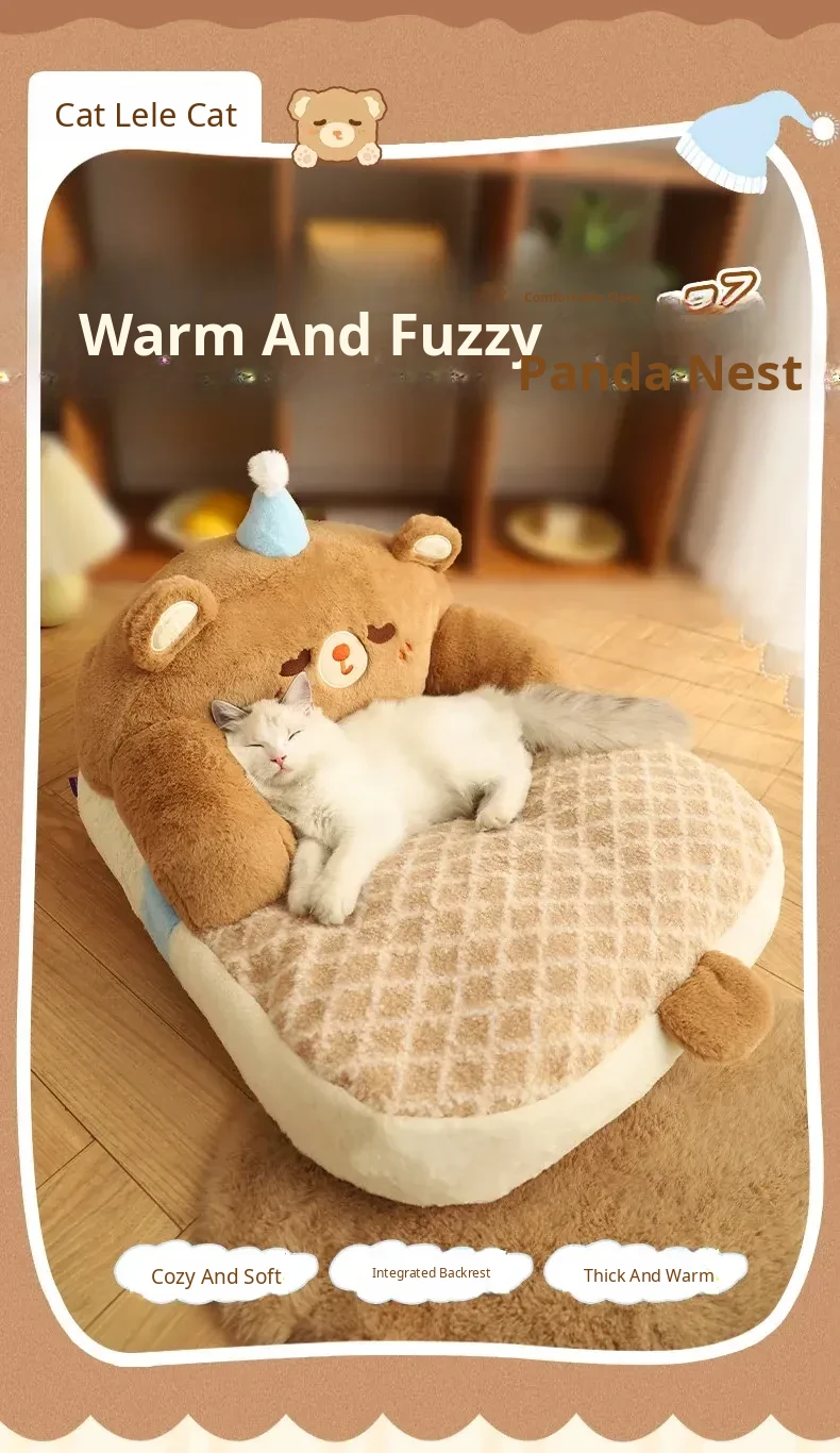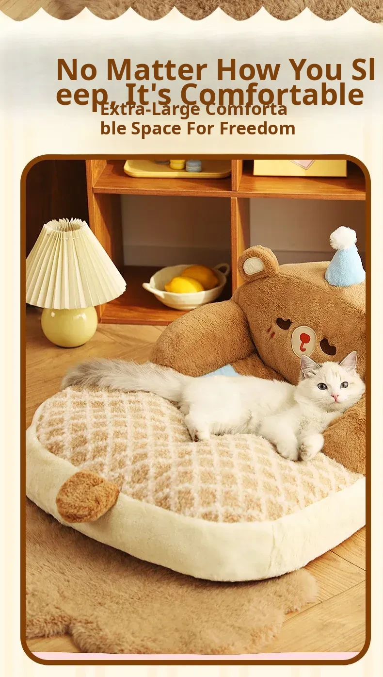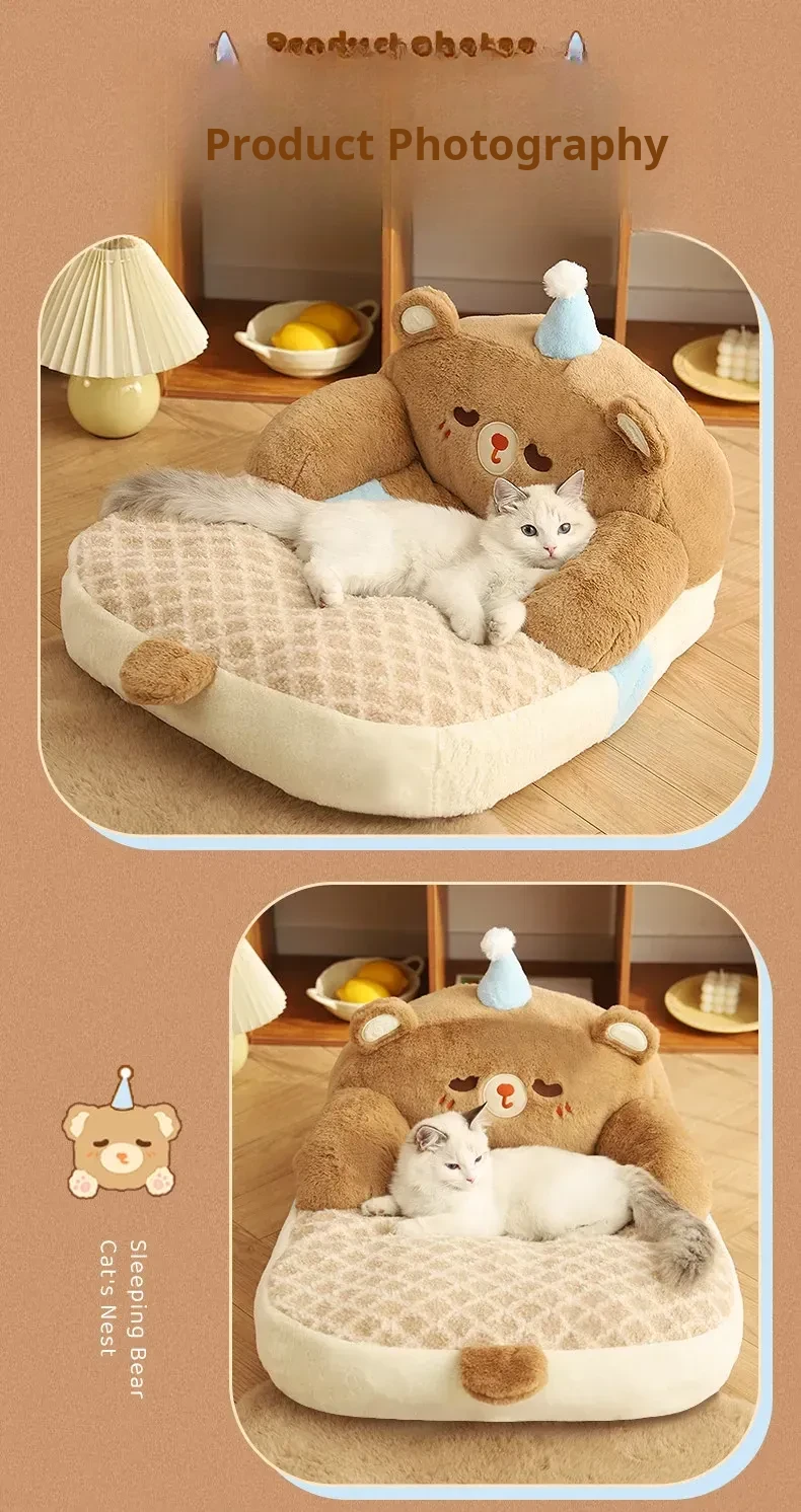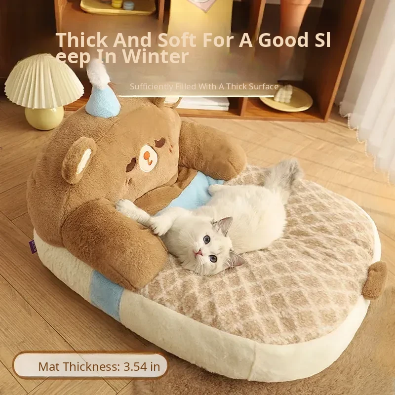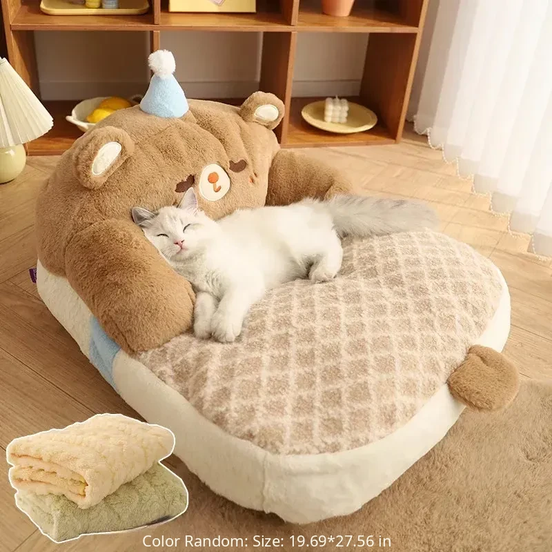 Sleeping Bear Sofa Bed Cat Nest + Blanket*1