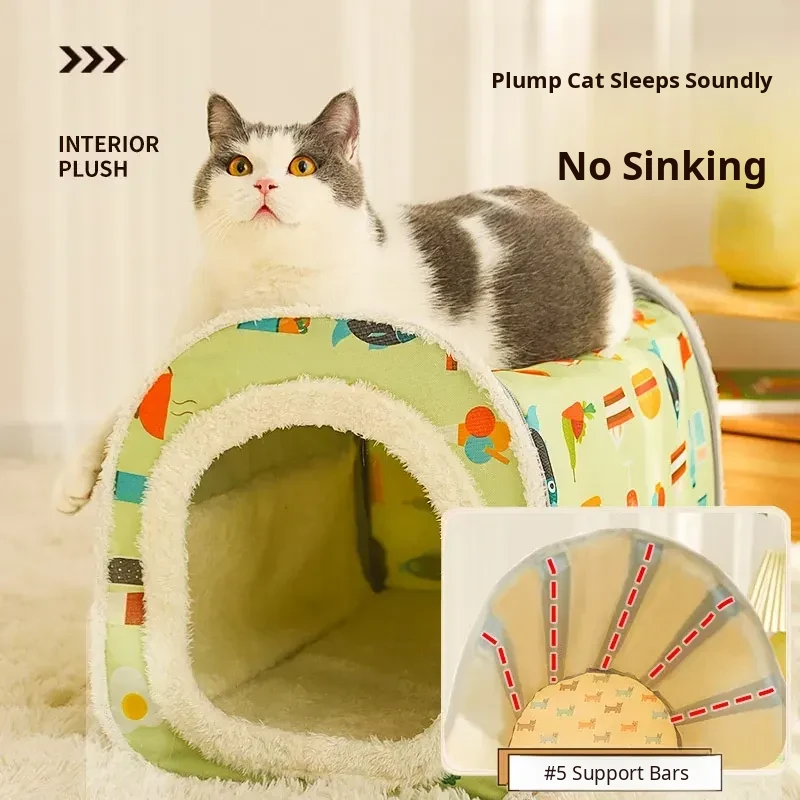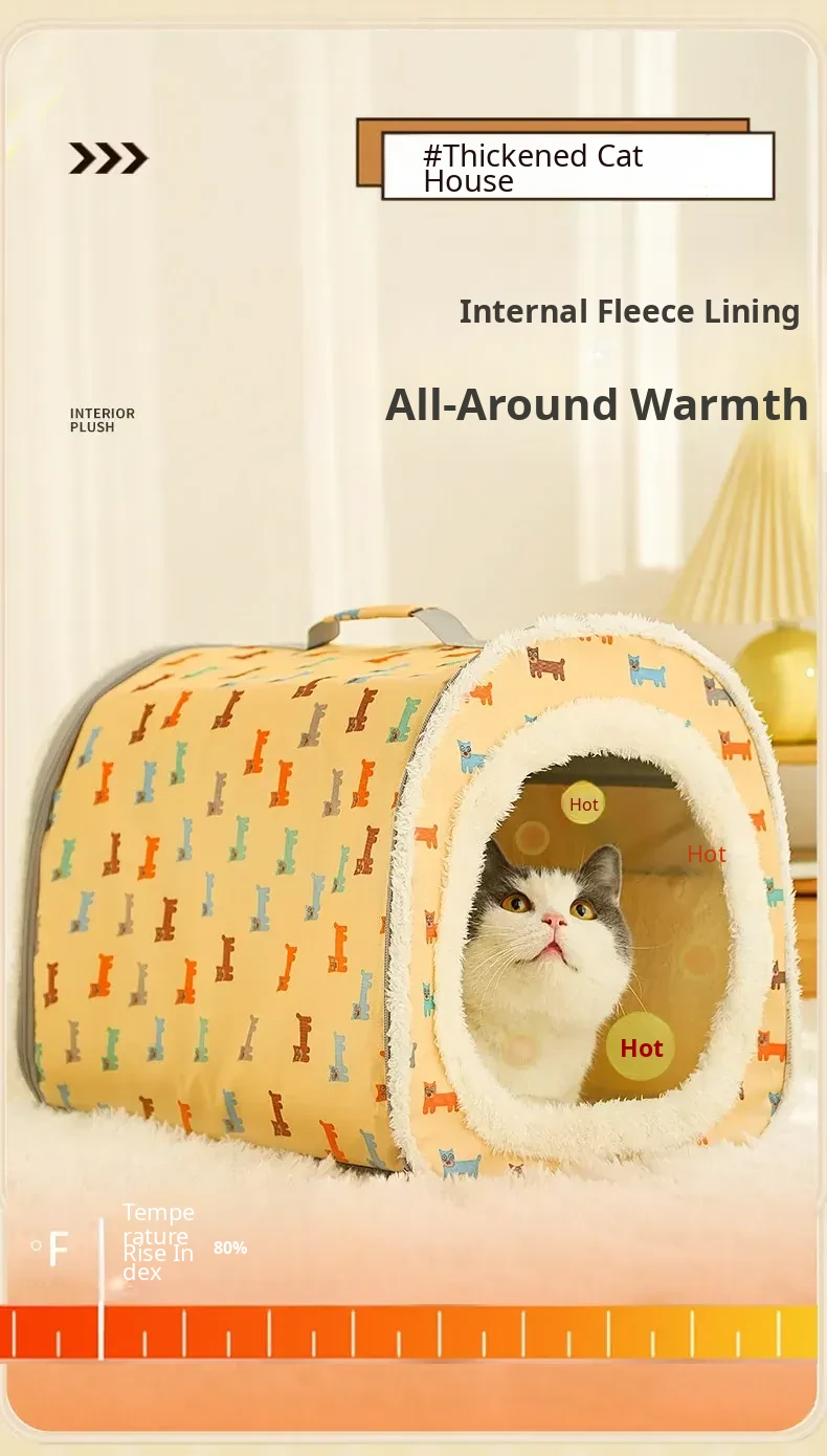 Cozy Winter Cat House - Insulated Enclosed Tent for Cats and Dogs, Perfect for Stray Cats with Soft Warm Bedding for Cold Weather