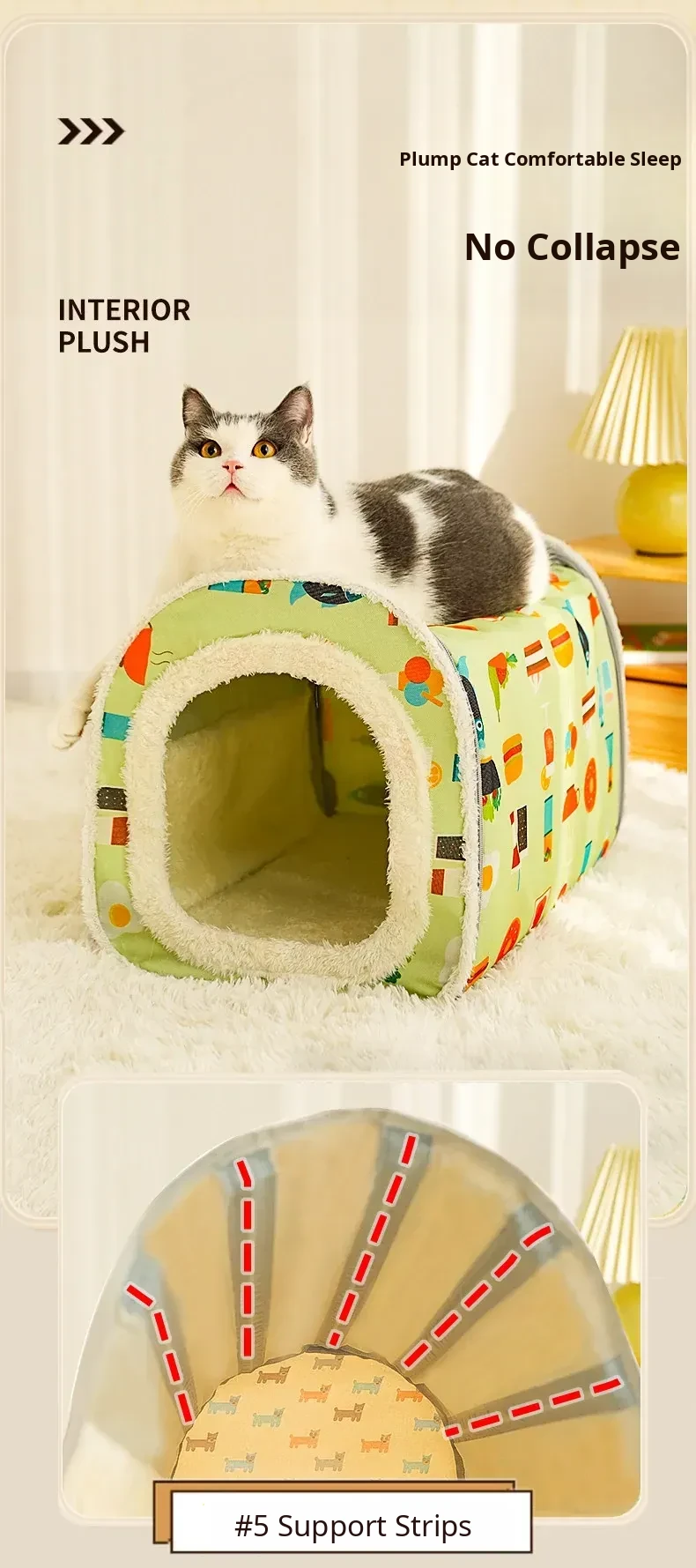 Plush Tent Cat House (Cream Yellow)