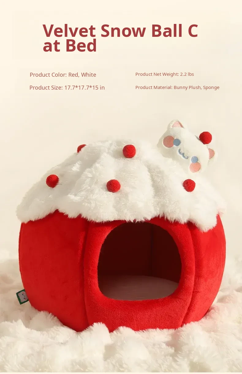 Snowflake Ball Enclosed Cat Bed - Cloud Soft Edition + Plush Cotton Blanket *1