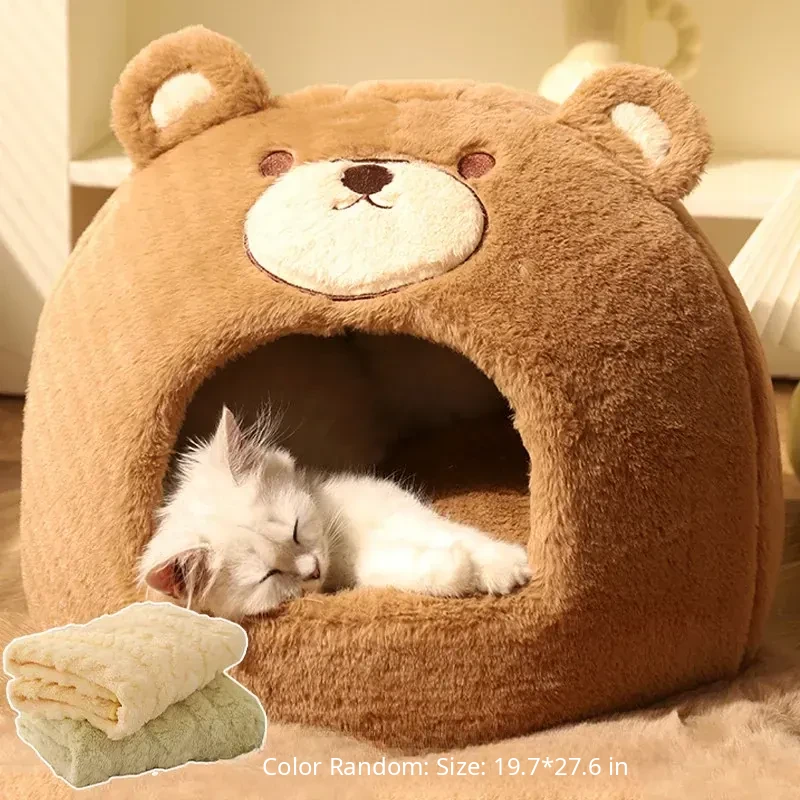 【Cozy & Versatile】Closed-Cup Cat Bed + Plush Fleece Blanket * 1