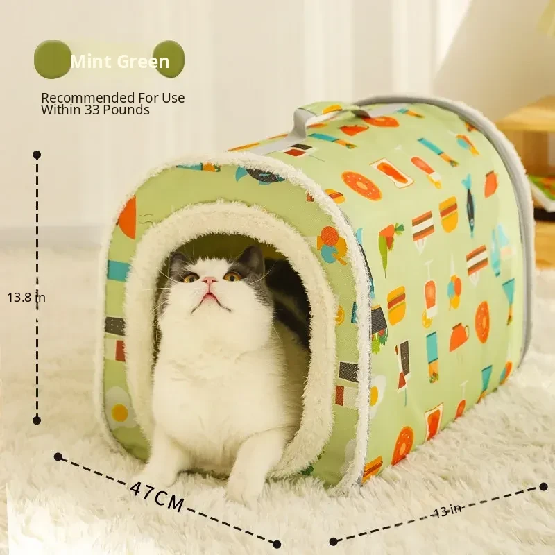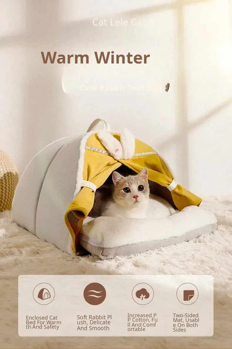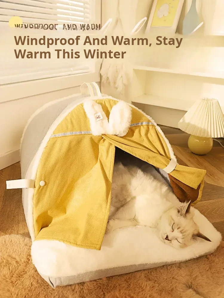 Cozy Winter Cat Tent - Insulated Sleeping Bag & Mat for Cats and Dogs, Perfect for Cold Weather, Enclosed Cat House, Essential Pet Supplies for Your Feline Friends