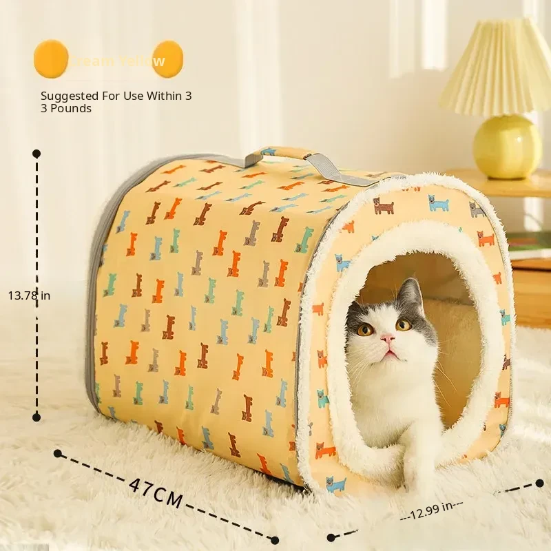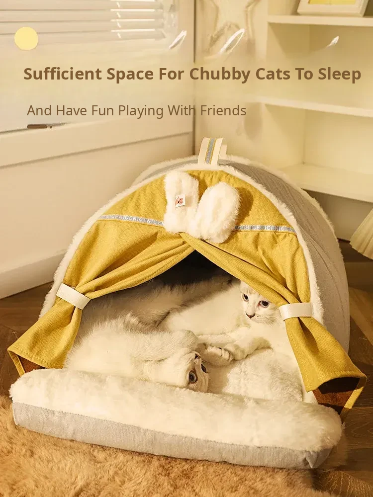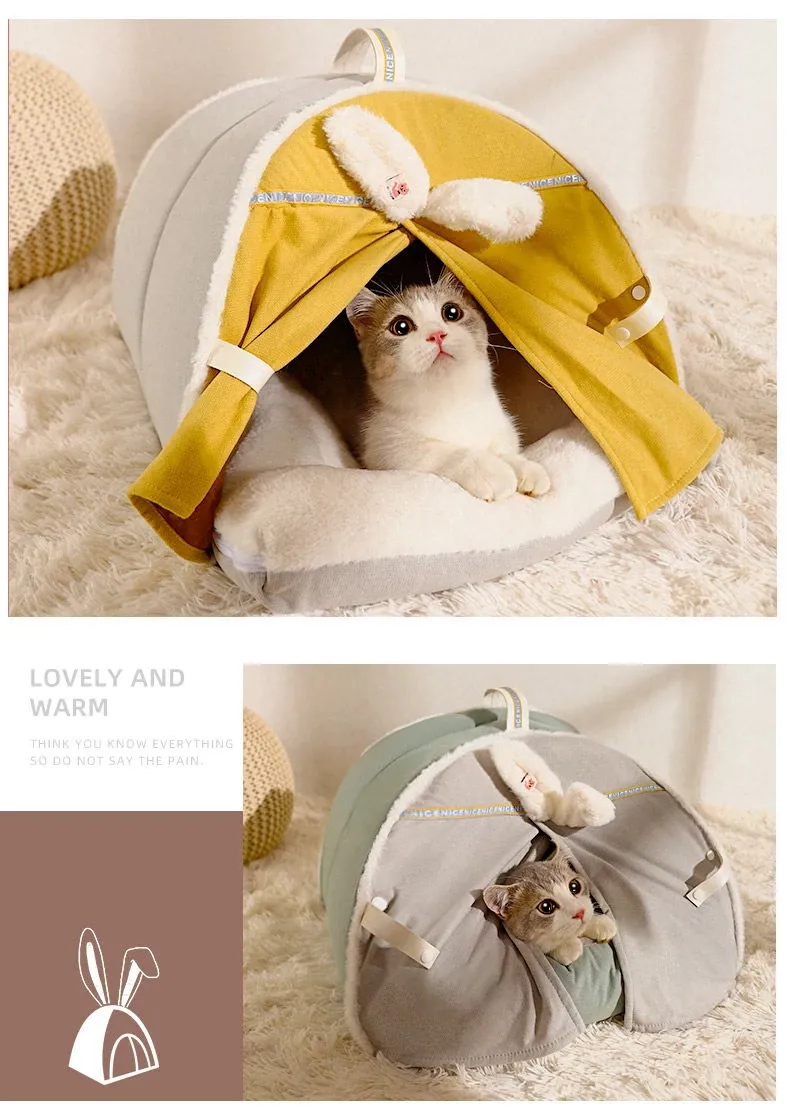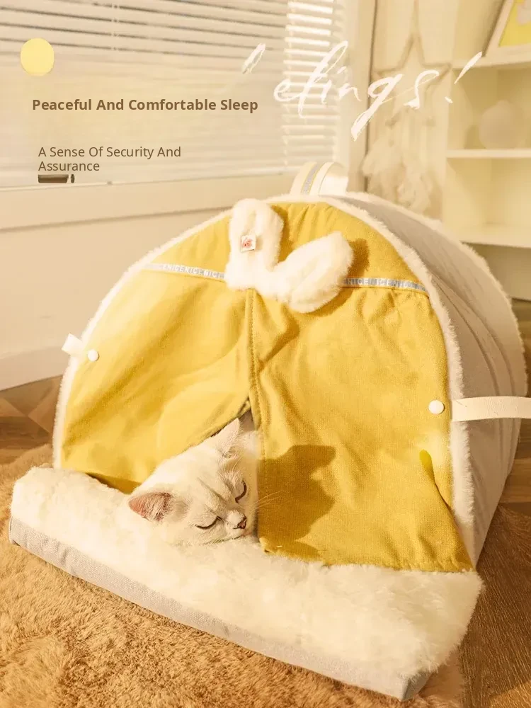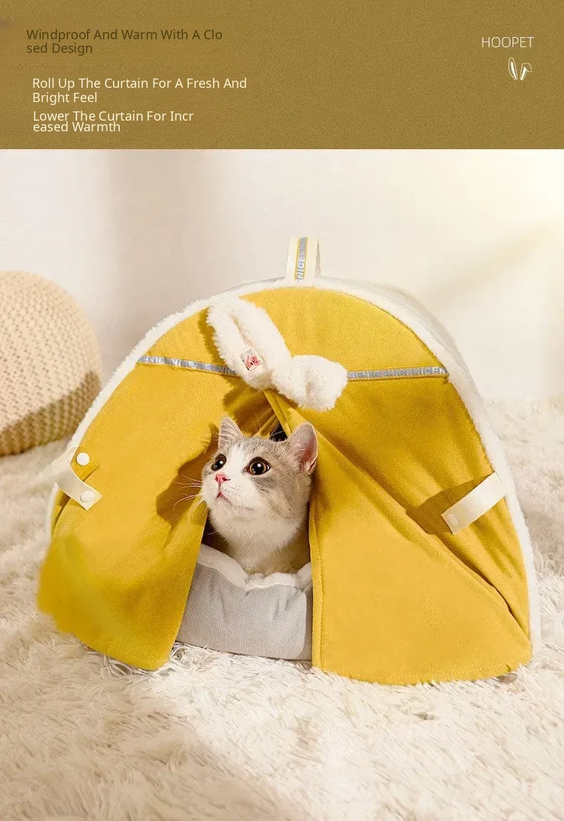 Pet Fleece-Lined Tent Cat House (Cream Yellow)