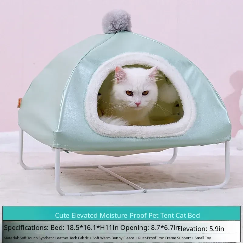 Pet Fleece-Lined Tent Cat House (Mint Green)