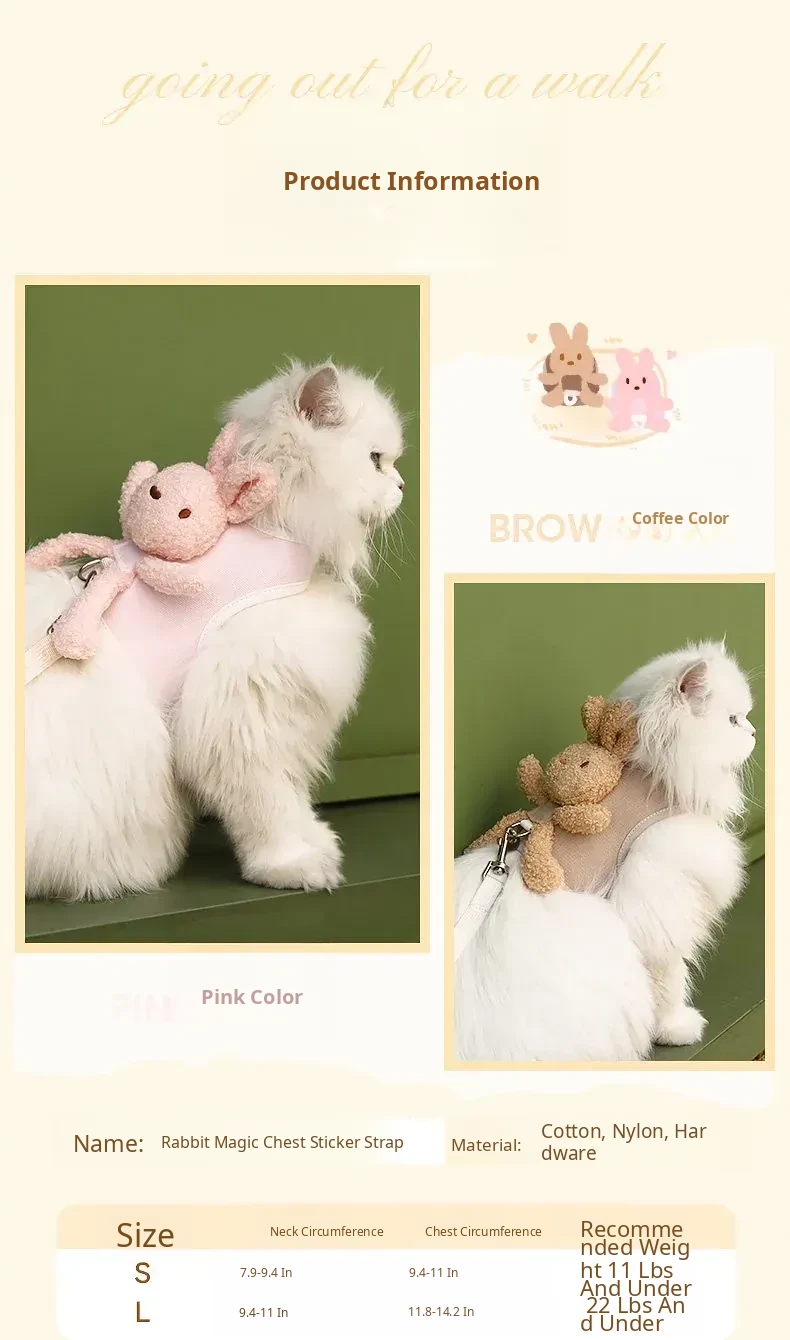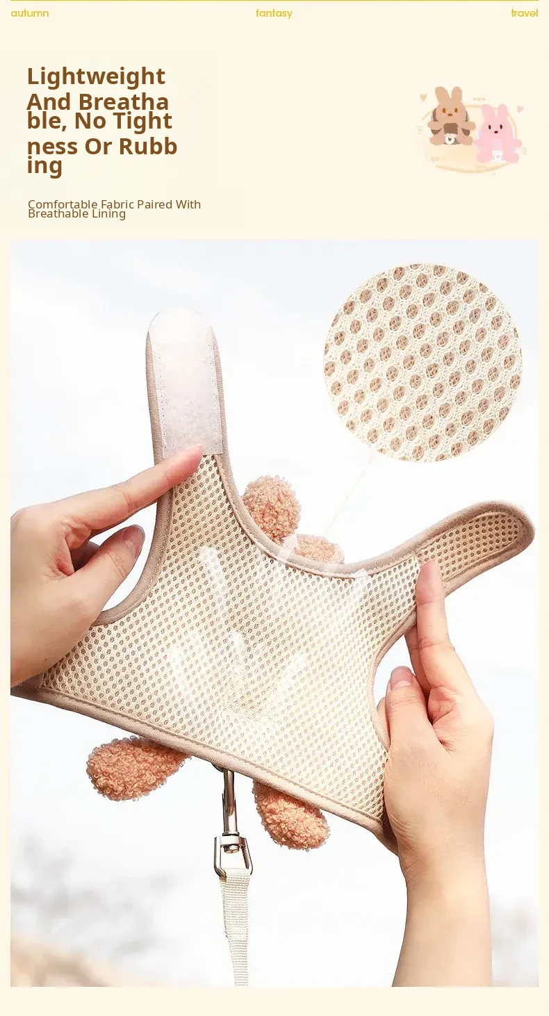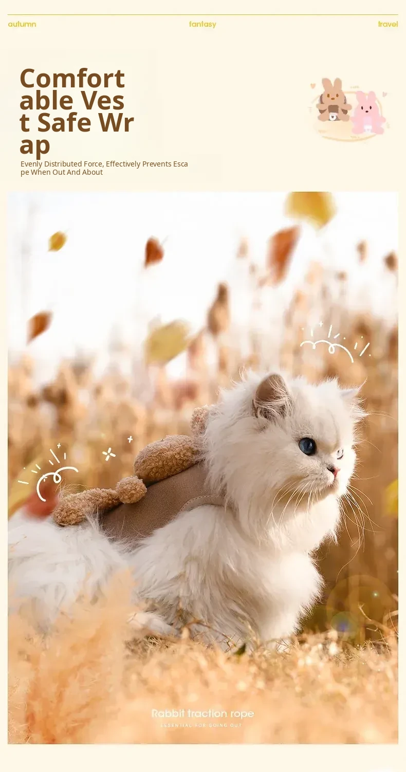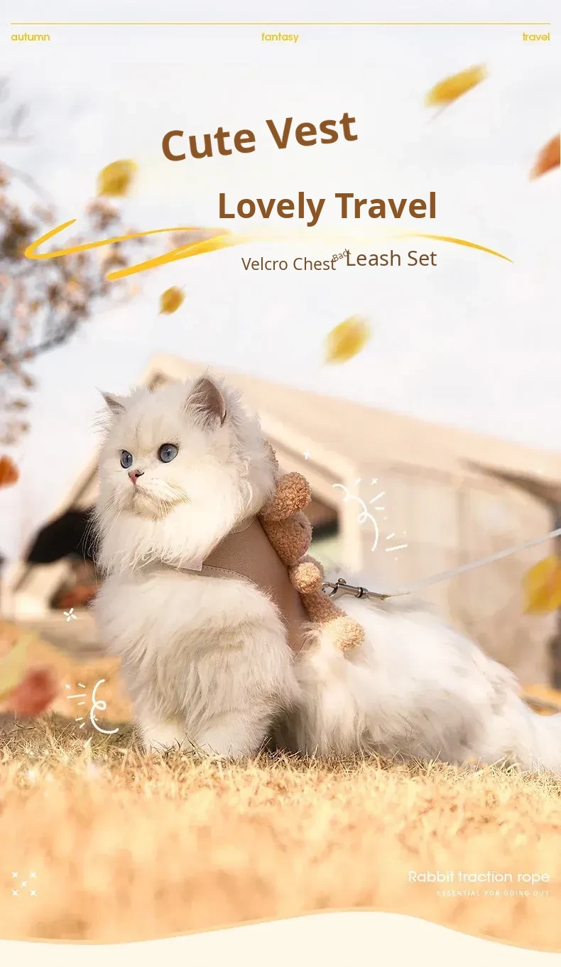 Cute Cat Harness with Escape-Proof Leash - Perfect for Small Dogs and Outdoor Adventures! Ideal Pet Walking Solution for Your Feline Friend.
