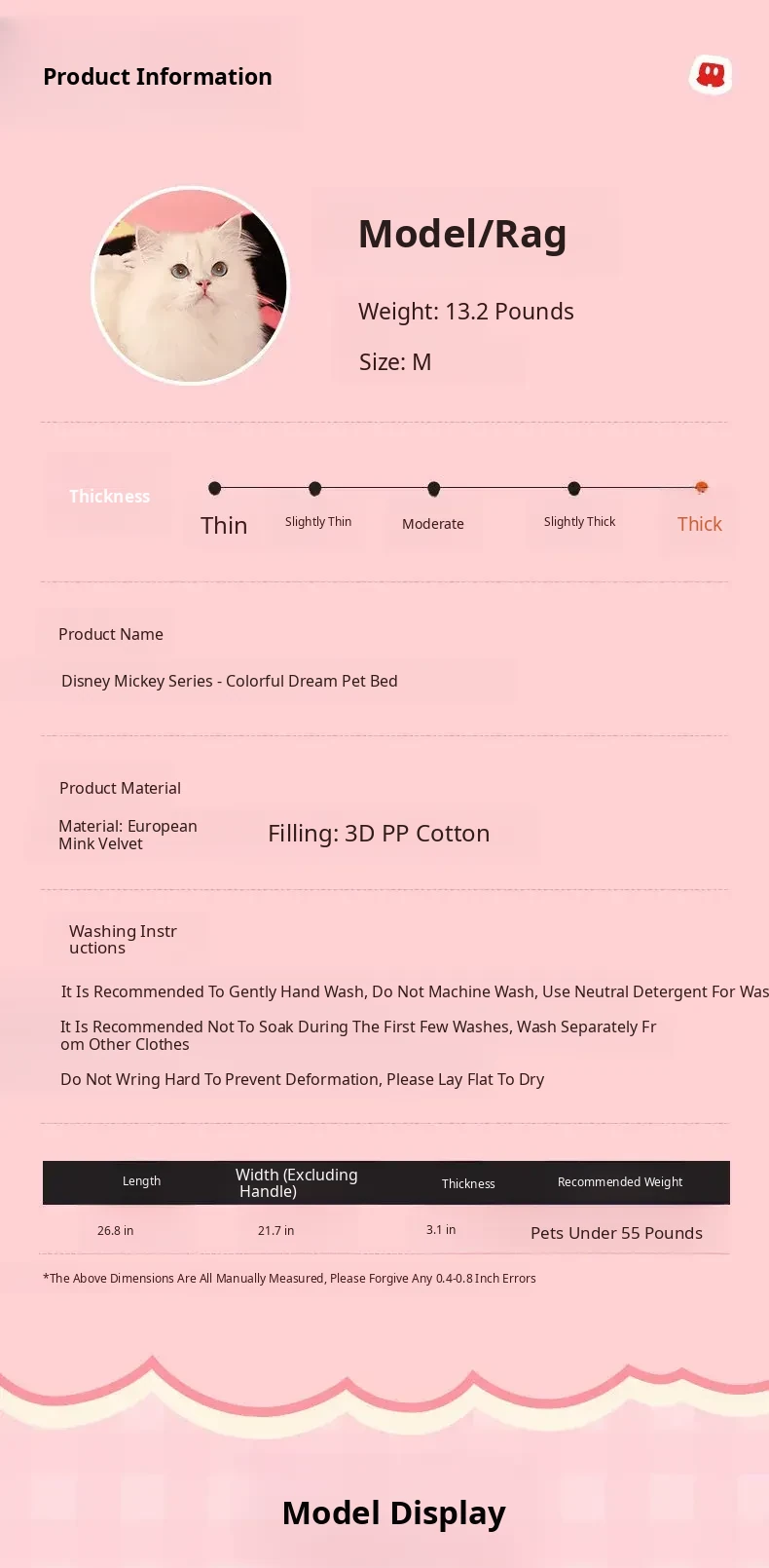 Disney Mickey Mouse Series Colorful Dream Pet Bed - Cozy Sleeping Mat for Dogs and Cats, Winter Warmth & Comfort