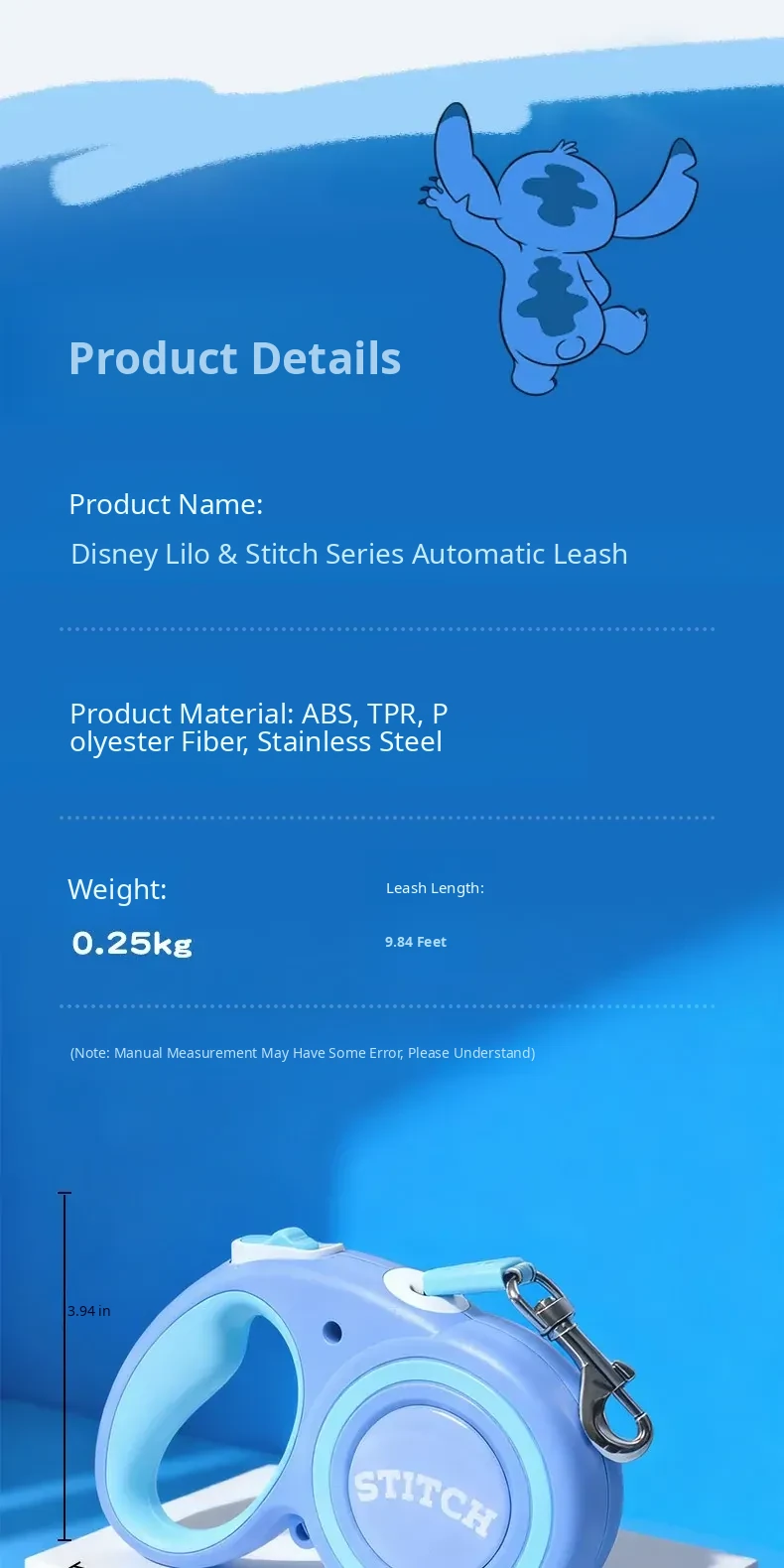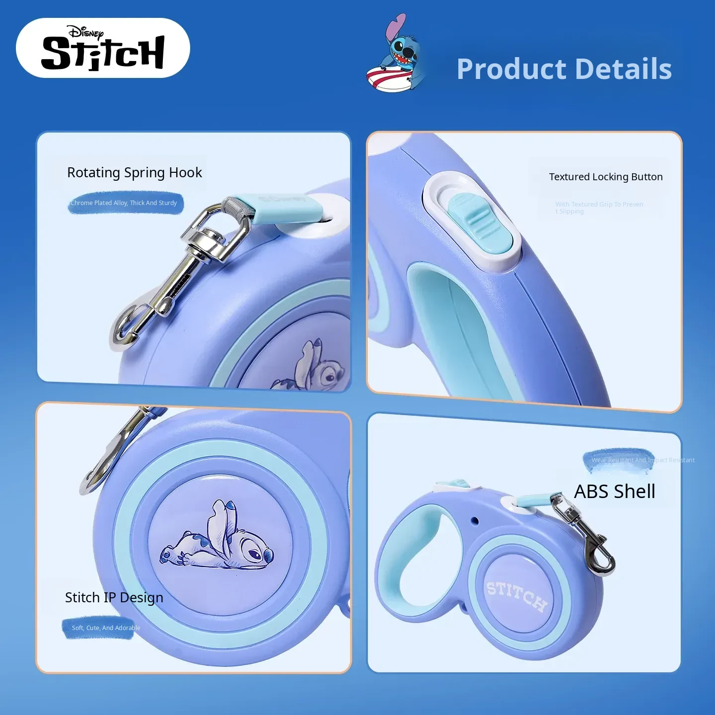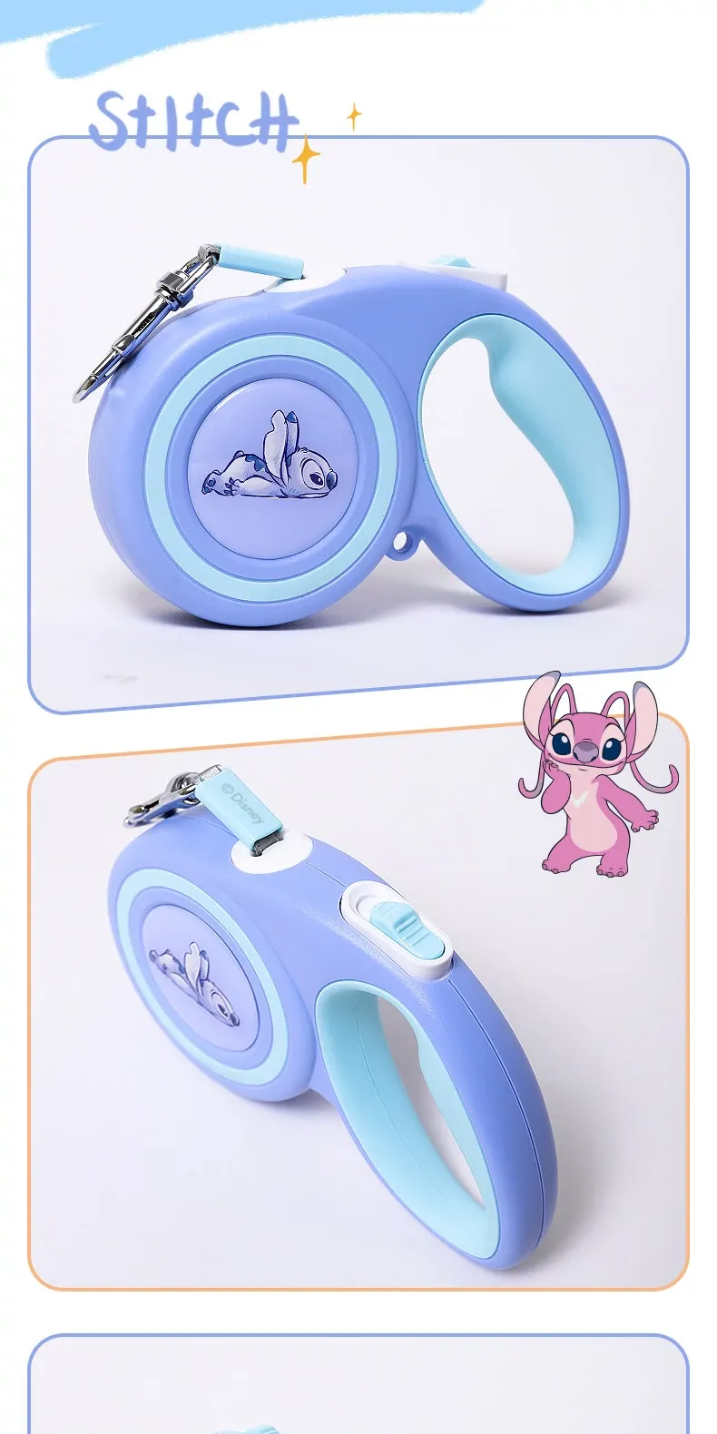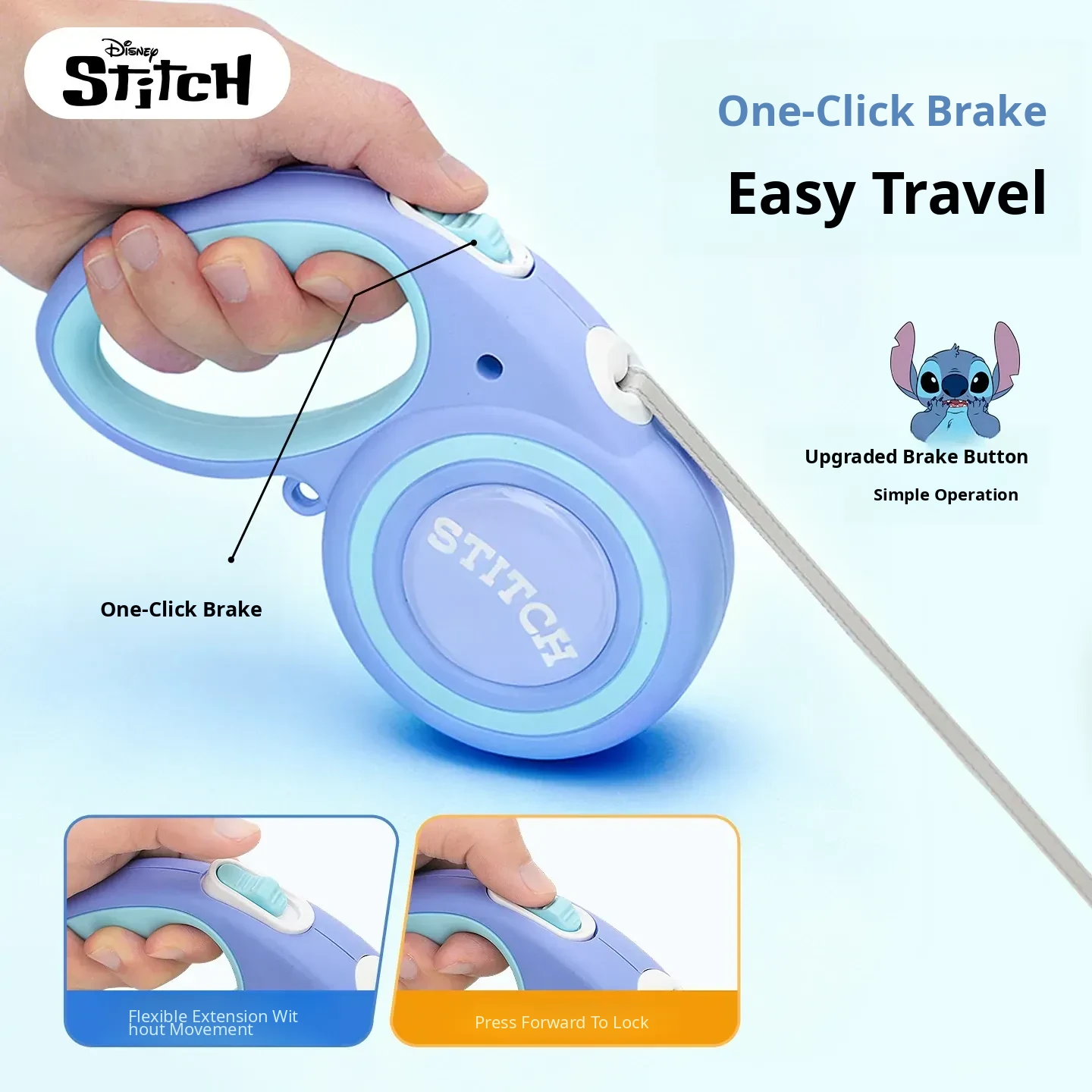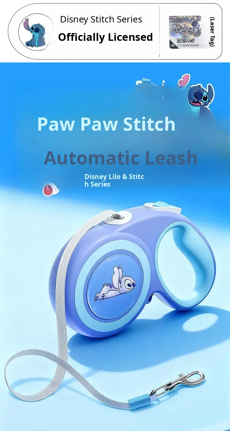 Disney Stitch Series Automatic Retractable Dog Leash for Small to Medium Pets – Durable Anti-Break Design for Safe and Comfortable Walks