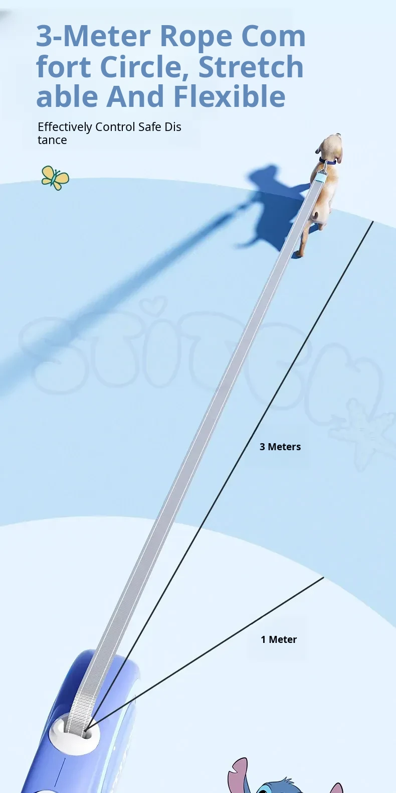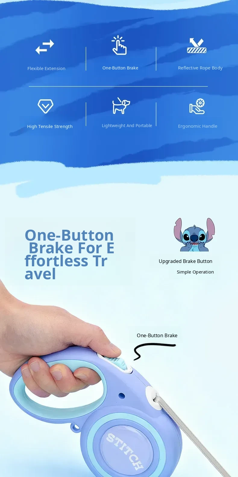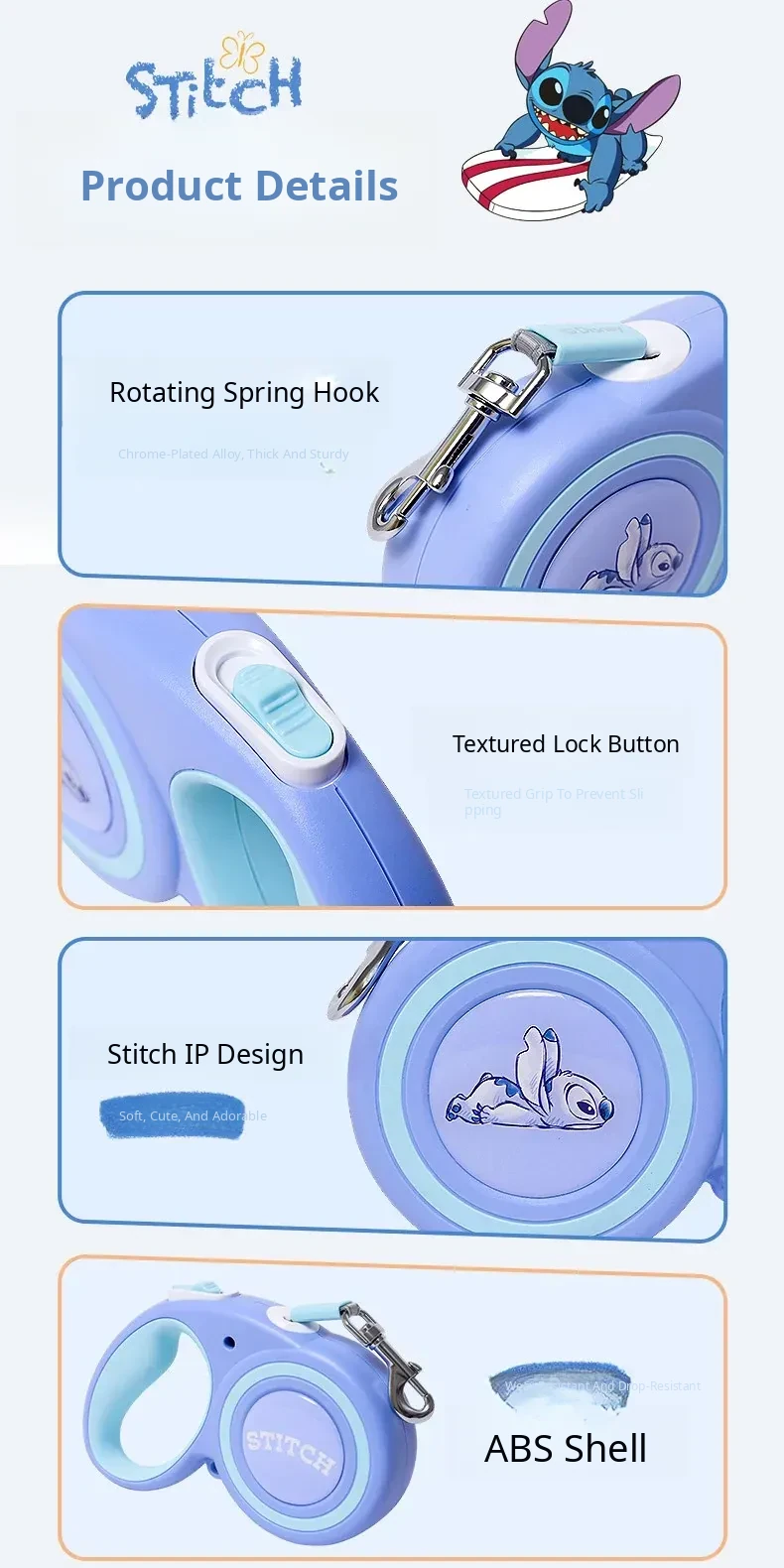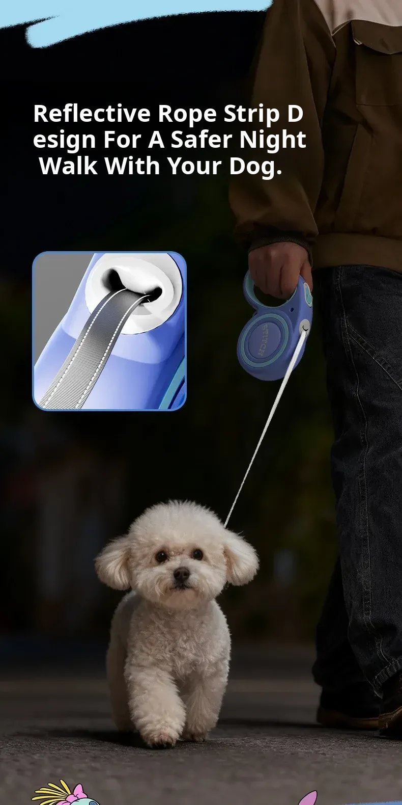 Disney Stitch Series Automatic Retractable Dog Leash for Small to Medium Pets – Durable Anti-Break Design for Safe and Comfortable Walks
