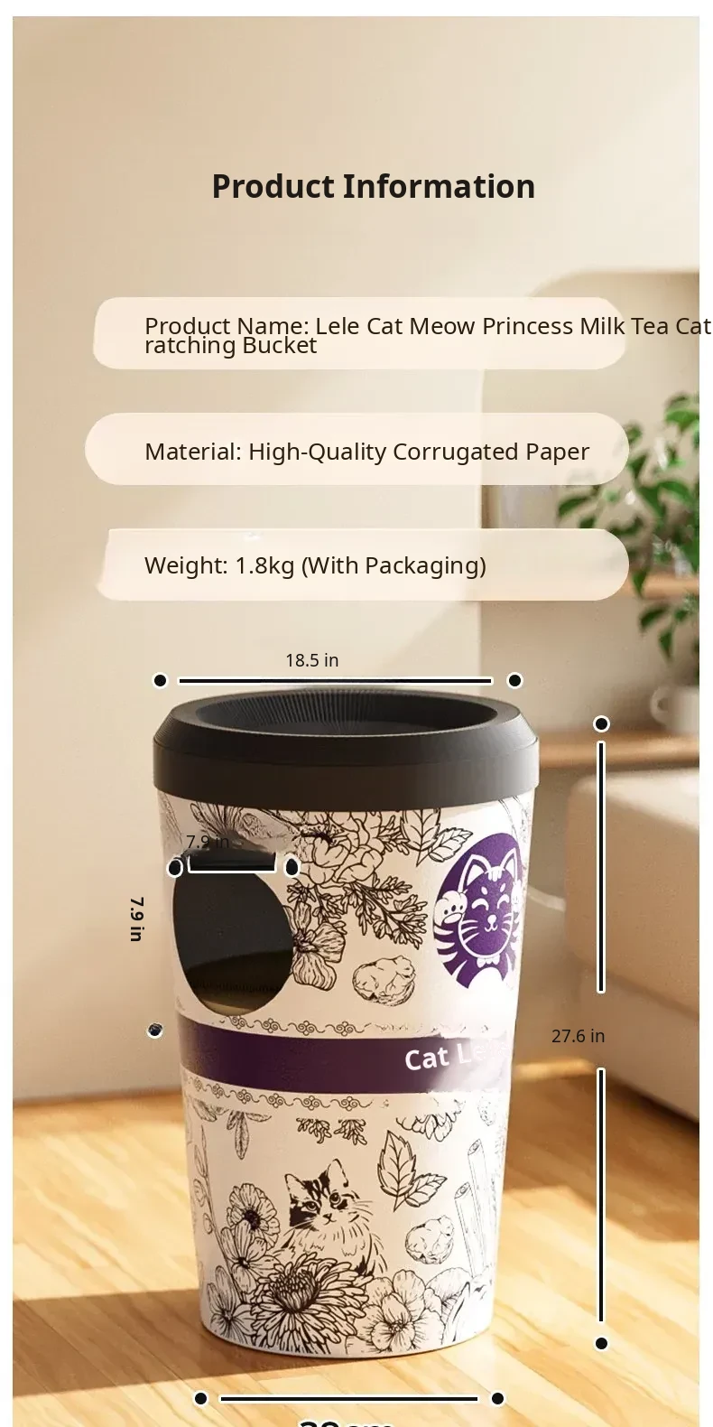 Double-Layer Cat House with Scratching Board - Multi-Cat Milk Tea Bucket Cat Bed, Corrugated Cardboard Scratching Post, Cozy Cat Climbing Frame and Playhouse for Happy Kitties!