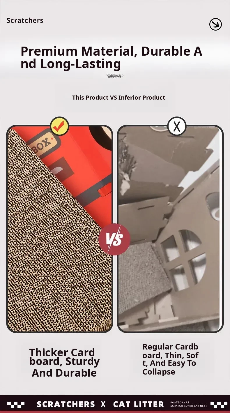 Durable Cat House with Integrated Scratching Board - Vertical Wall-Mounted Design, Made from Sturdy Corrugated Paper, Ideal for Scratching and Relaxing, No Shedding, Perfect for Your Feline Friend!