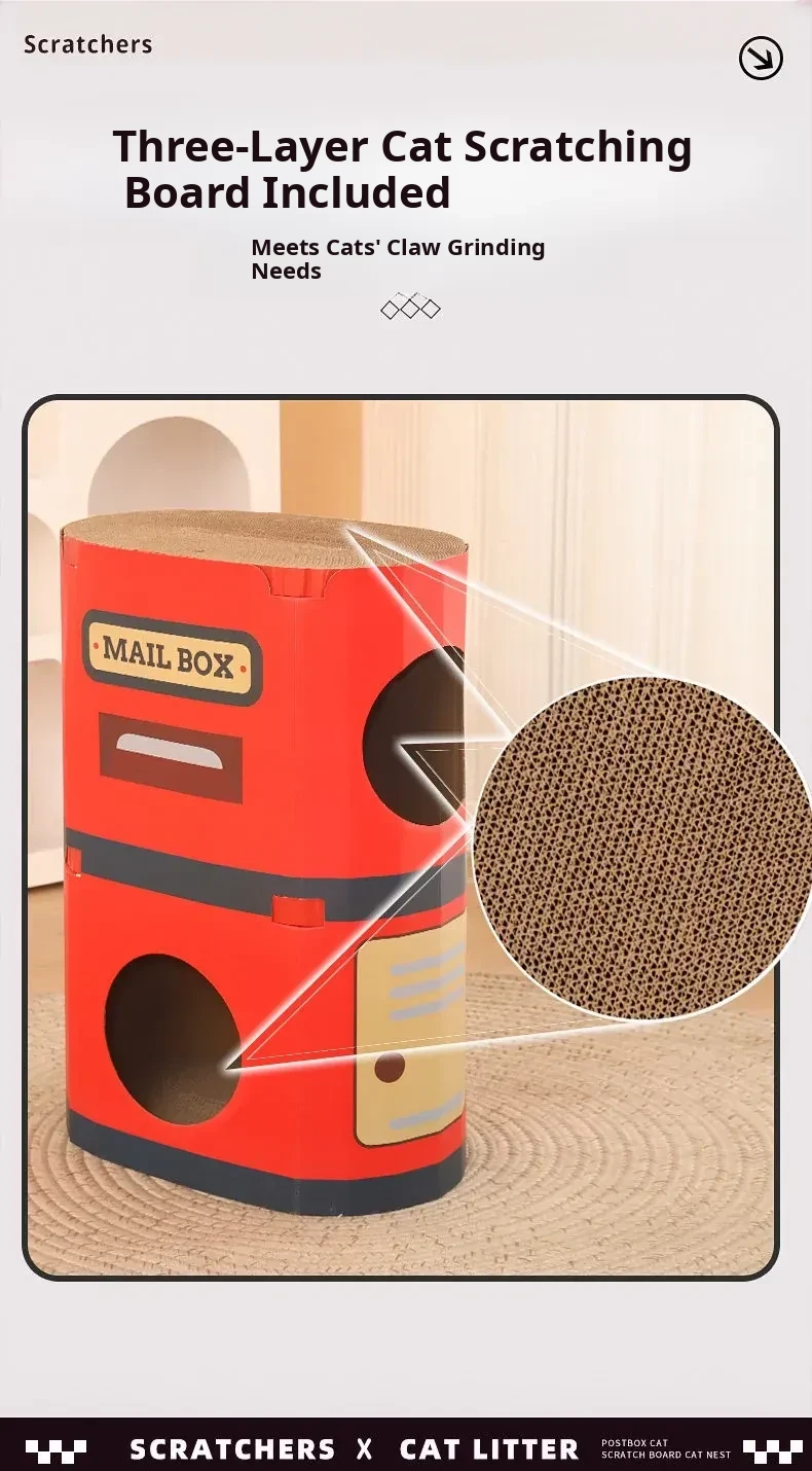 Mailbox Scratching Board Cat Nest-Double-Layer Oval Column