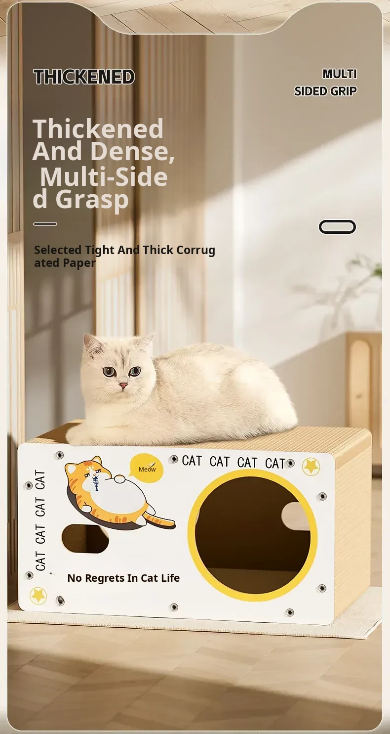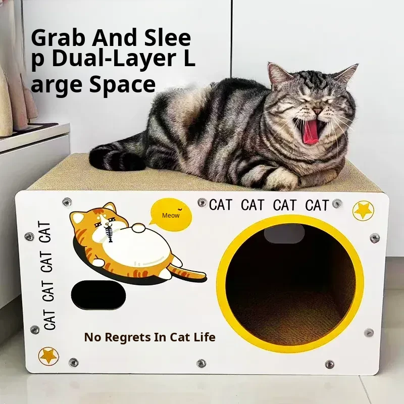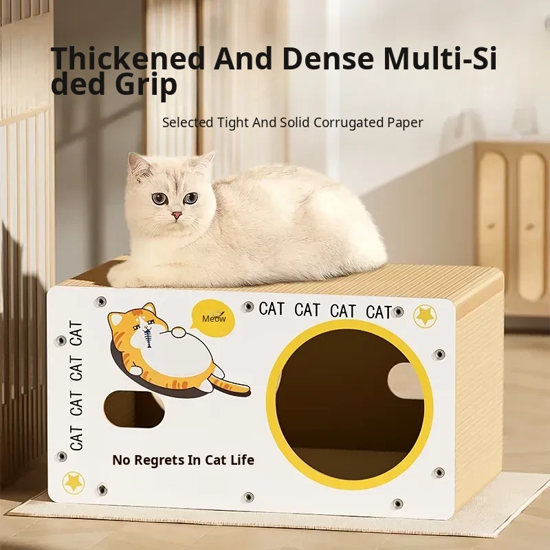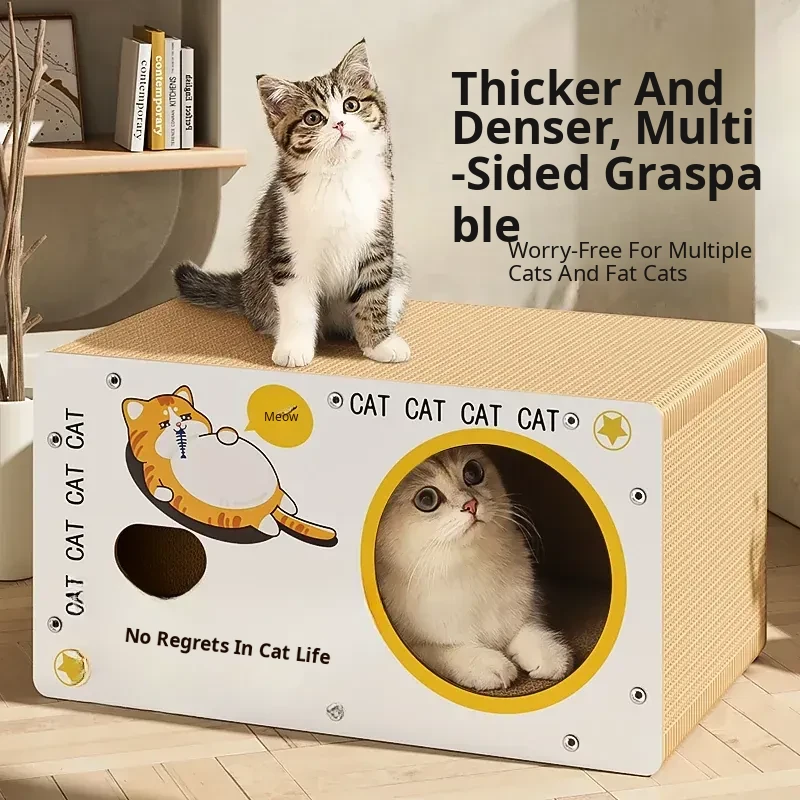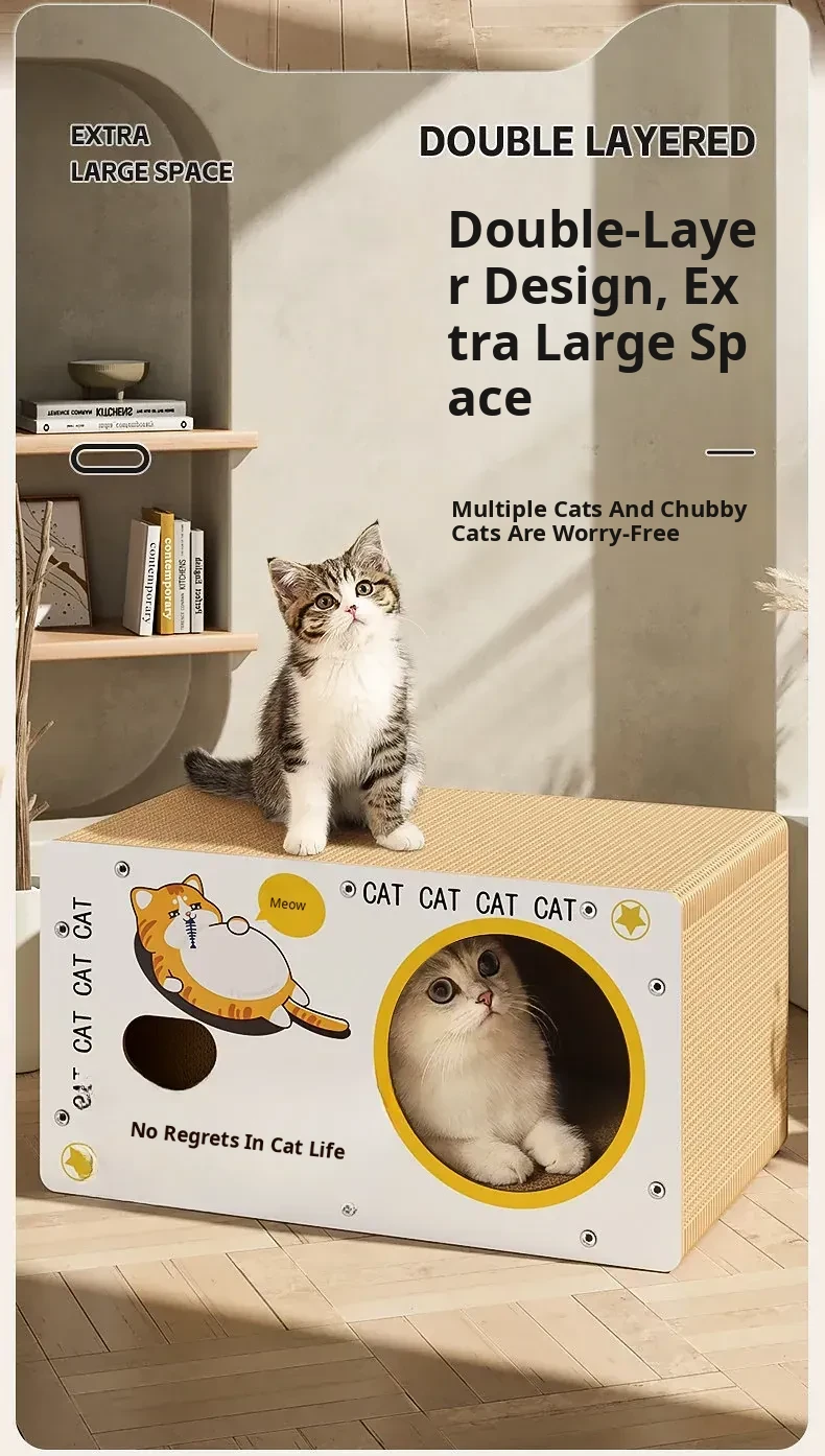 Durable Double-Layer Cardboard Cat House and Scratching Board - Large Cat Scratching Post and Cozy Bed Combo for Your Feline Friend, No Shedding, Perfect for Play and Rest!