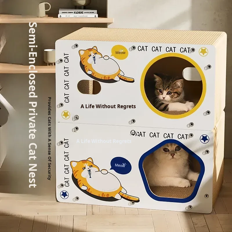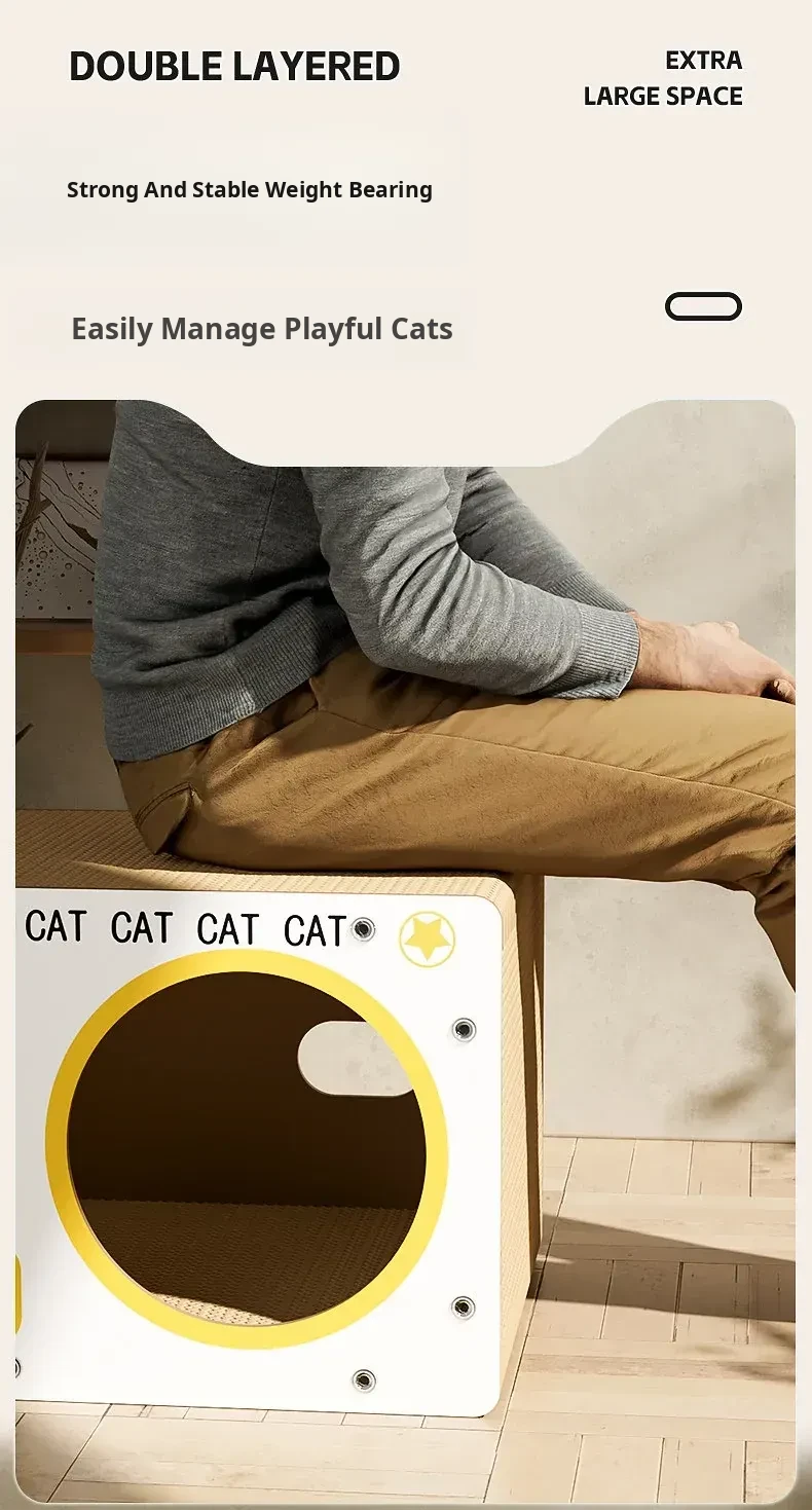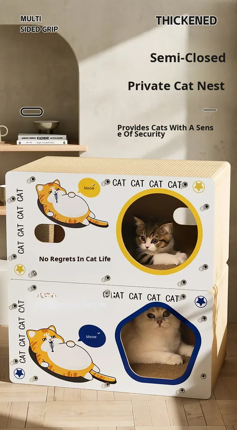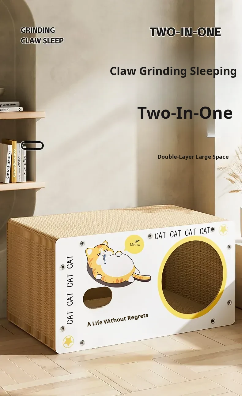 Durable Double-Layer Cardboard Cat House and Scratching Board - Large Cat Scratching Post and Cozy Bed Combo for Your Feline Friend, No Shedding, Perfect for Play and Rest!