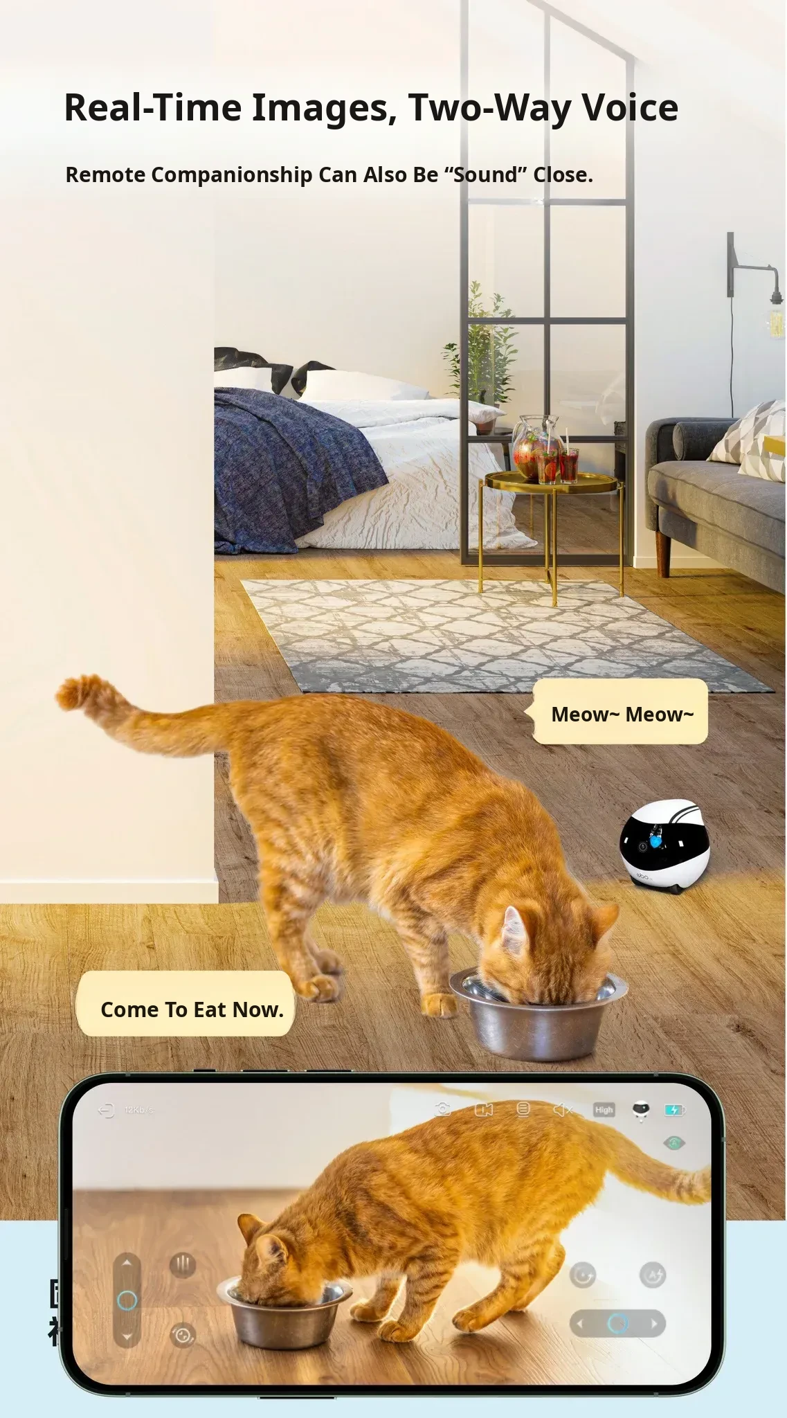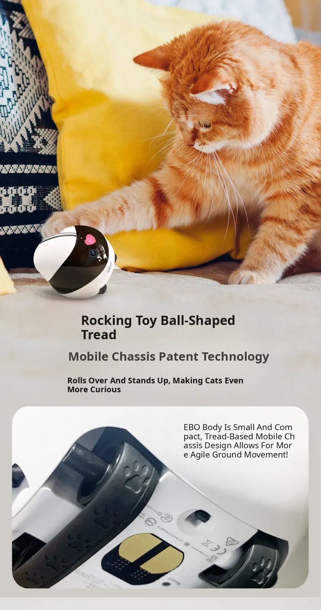 Ebo Smart Home Wireless Pet Companion Robot - Interactive Cat Toy with Remote Control for Endless Fun and Safe Monitoring