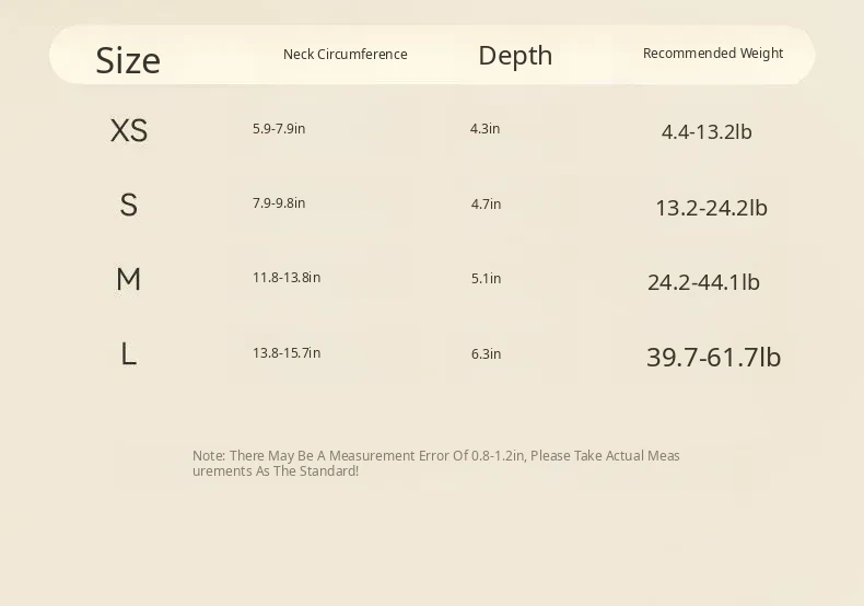 Xs-Neck Circumference: 5.91in-7.87in Depth: 4.33in (Recoinended 1.0-3kg) Single Breasted